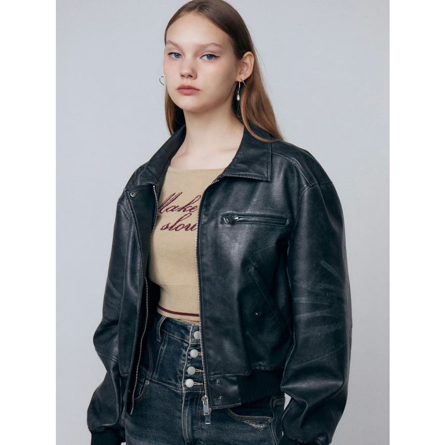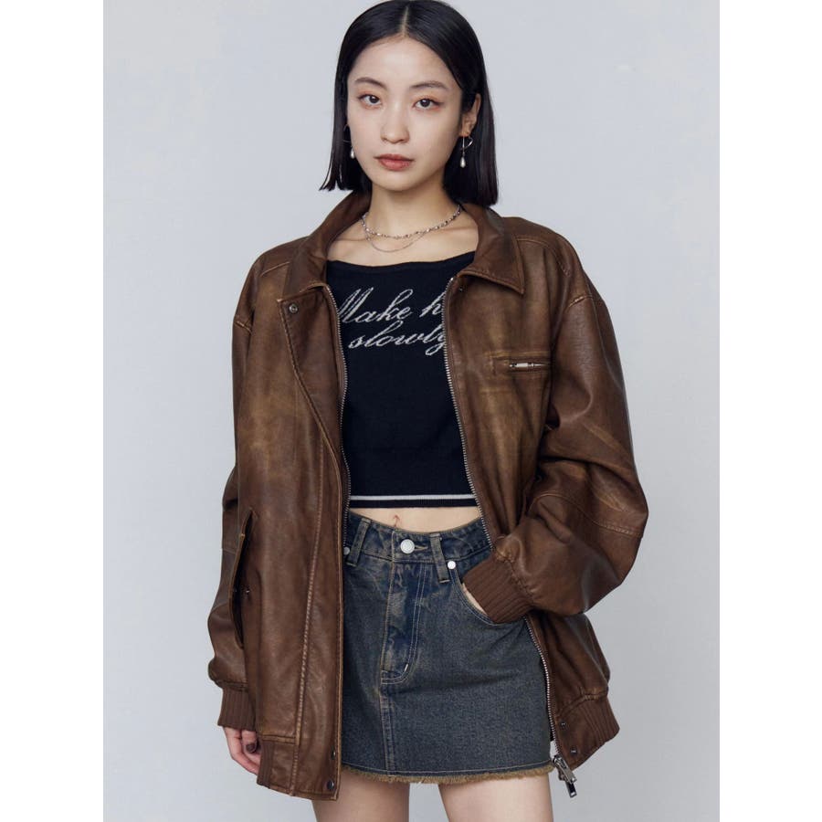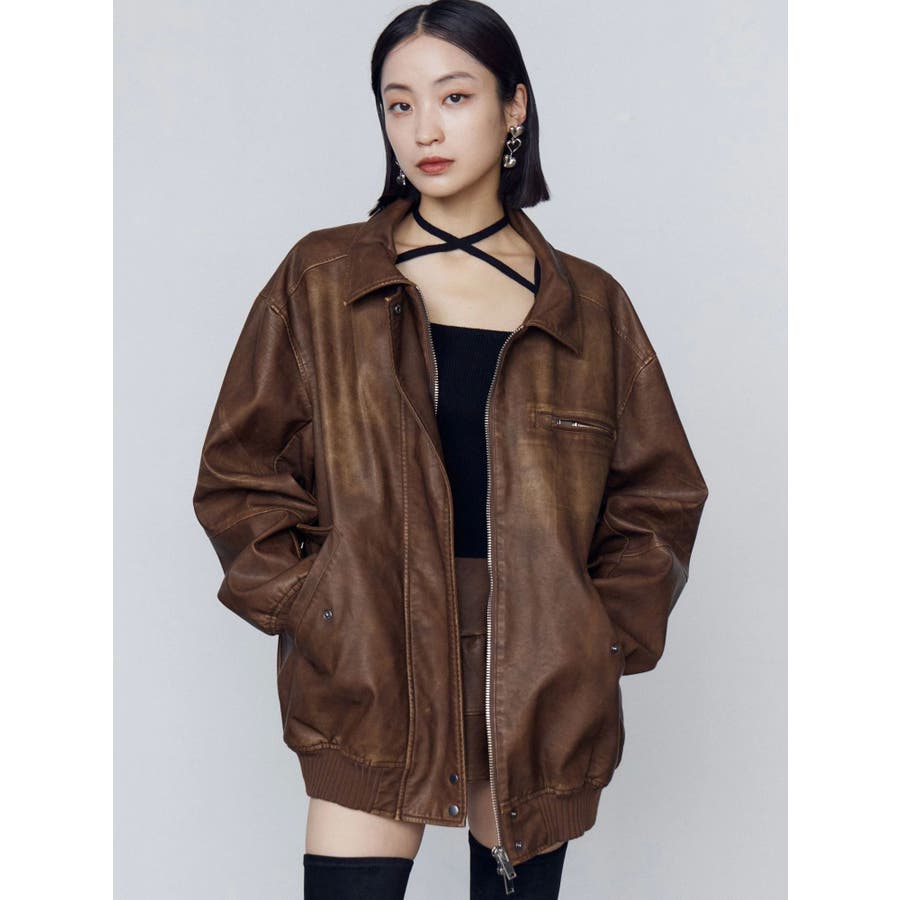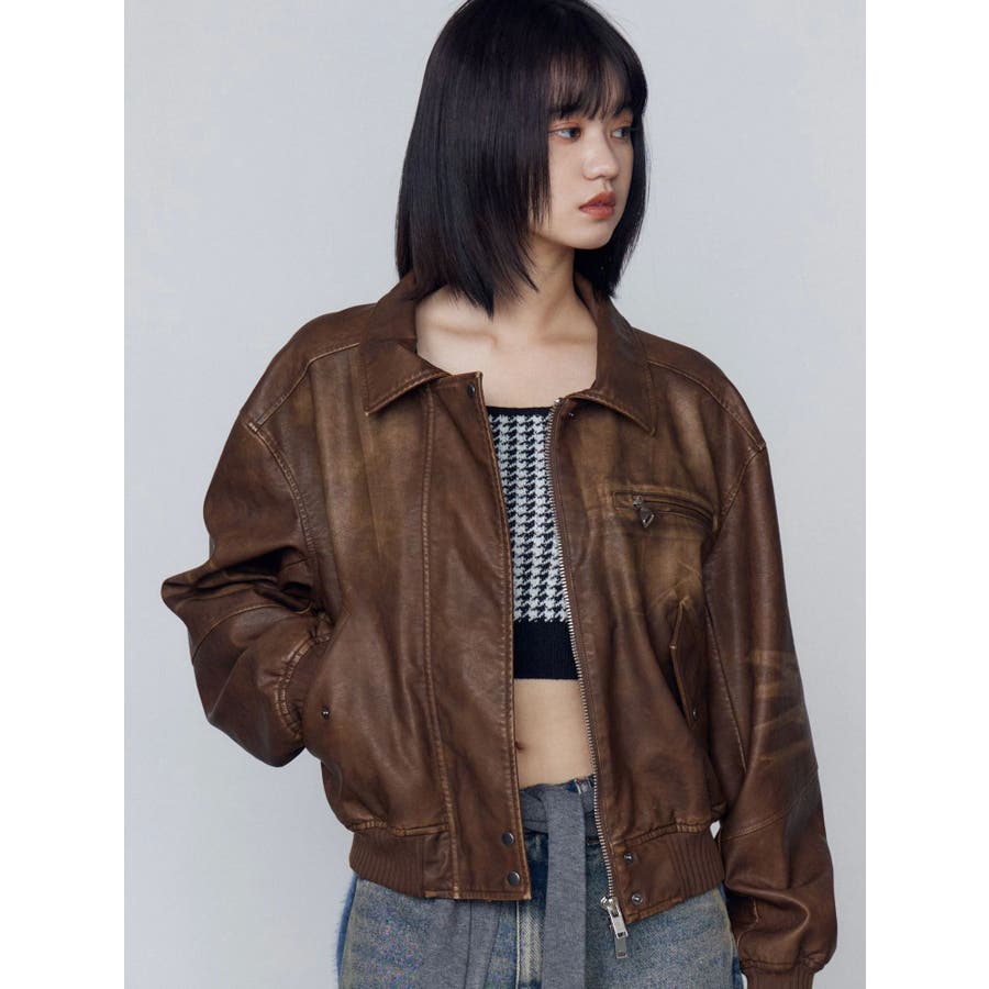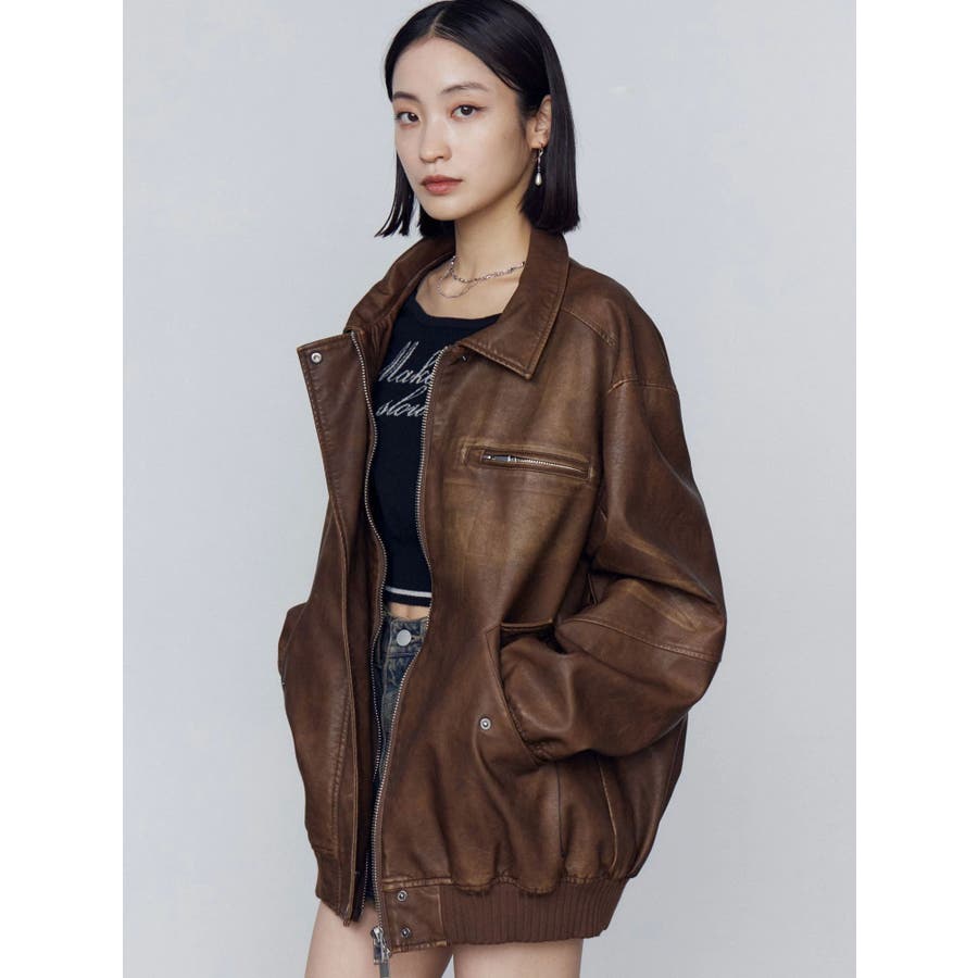 ヴィンテージフェイクレザーブルゾン