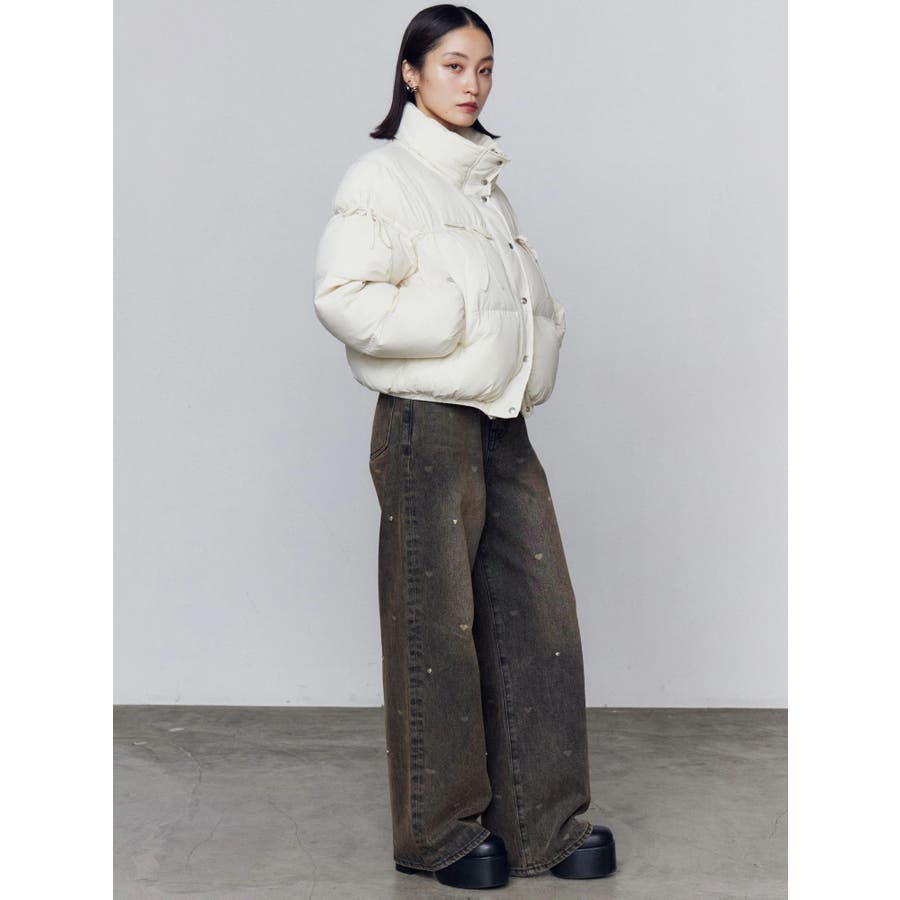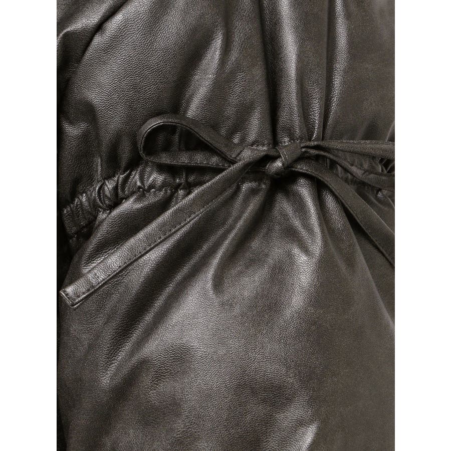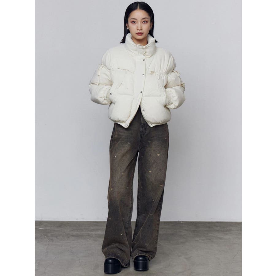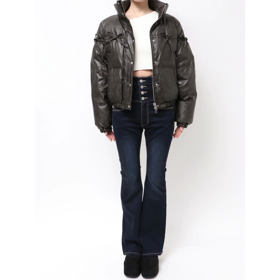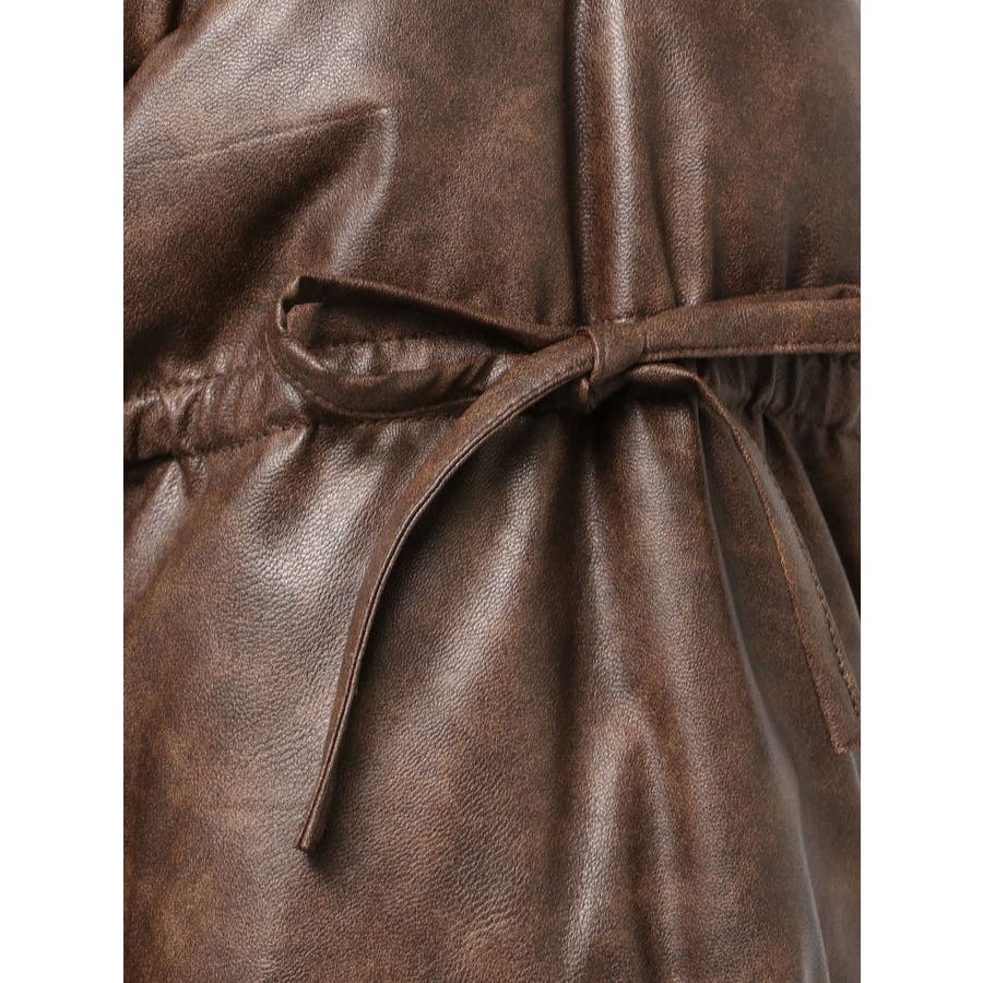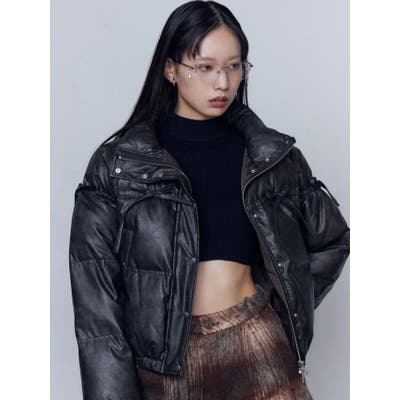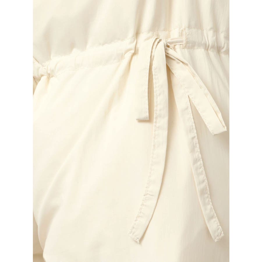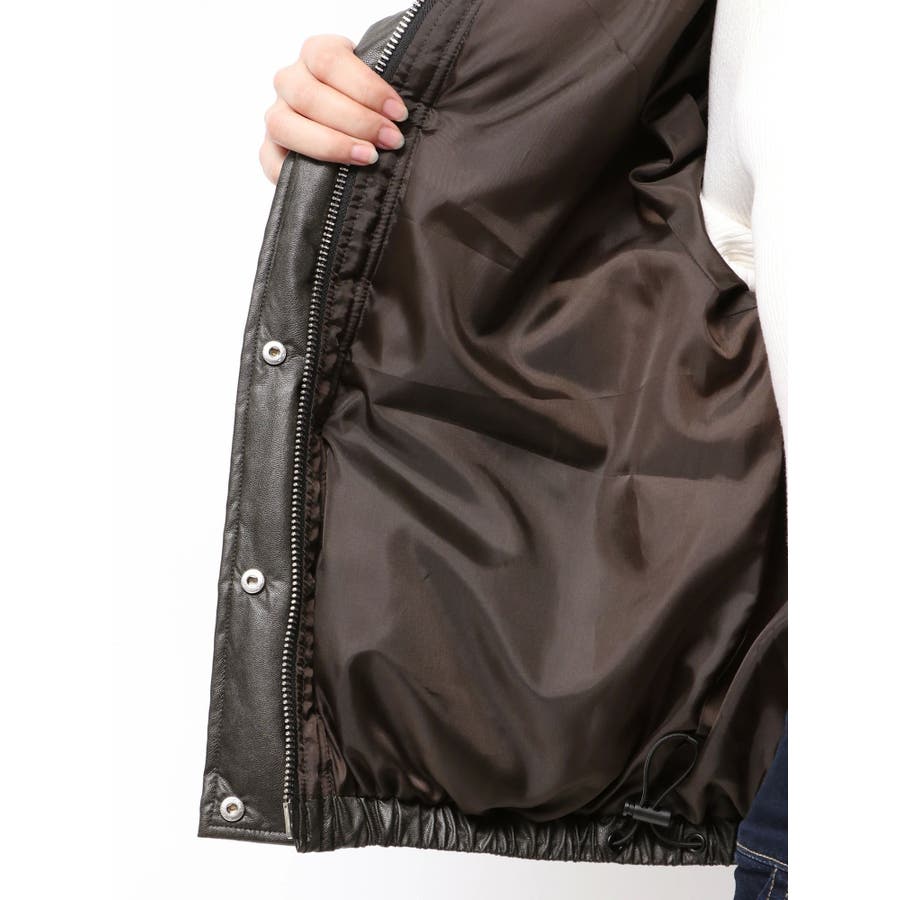 リボンストリングがポイントのダウンブルゾン■デザインリボンは絞ることが出来るので少しギャザーを加えたバランスで着用するのがおすすめです。シルキーな風合いのナイロン素材と、柔らかい風合いのフェイクレザーの展開になります。ダウンならではのボリュームと程よい丸みのあるシルエットが特徴です。ハイネックなので、防寒効果も抜群。■スタイリング骨盤にかかる位の丈なので、ボトムはミニ丈からフルレングスまで幅広く合わせていただけます。今季はティアードショートパンツと合わせるスタイリングがイチオシです。※着用画像はフラッシュの加減で実際の製品と色味等が異なる場合がございますので、生地のズームアップ画像をご確認ください。※ご利用の端末画面の設定により実際の商品と色味が異なる場合がございます。【商品特徴】透け感:なし伸縮性:なし生地の厚さ:普通サイズ感:普通裏地:なしポケット:あり