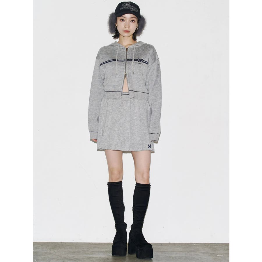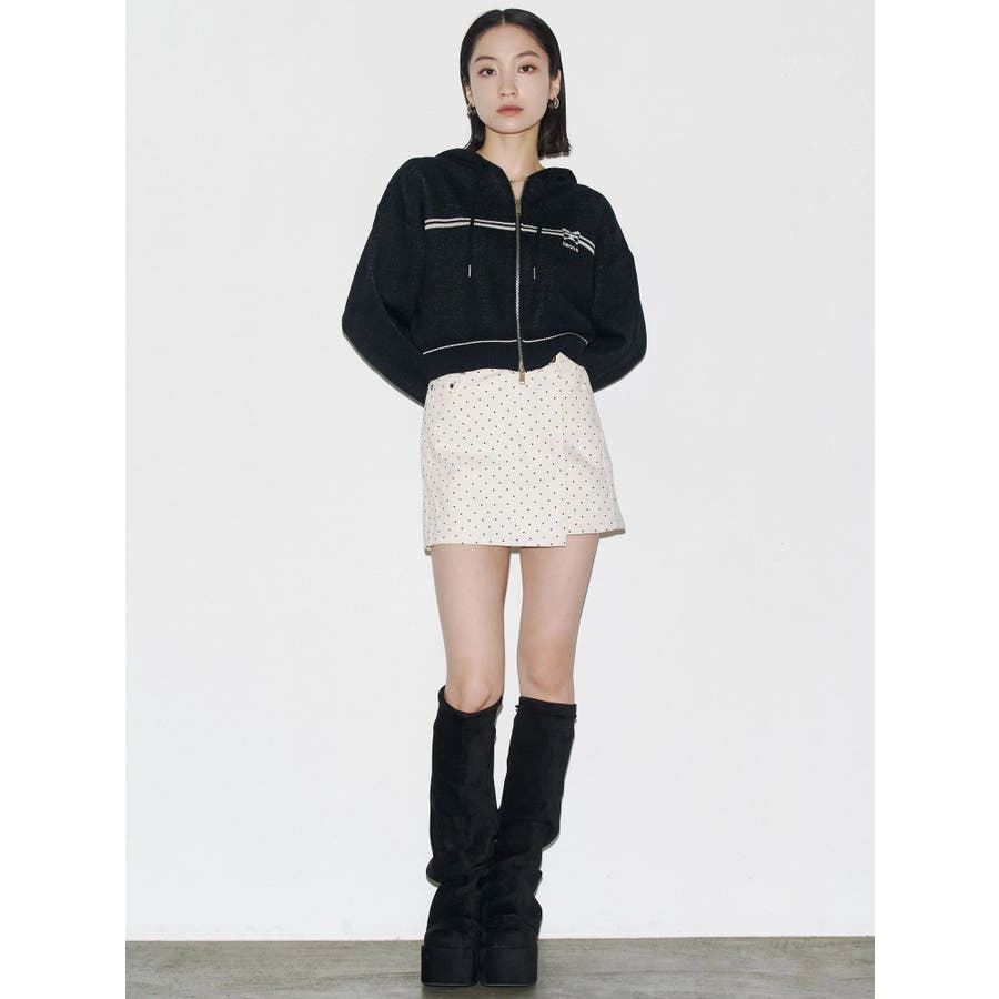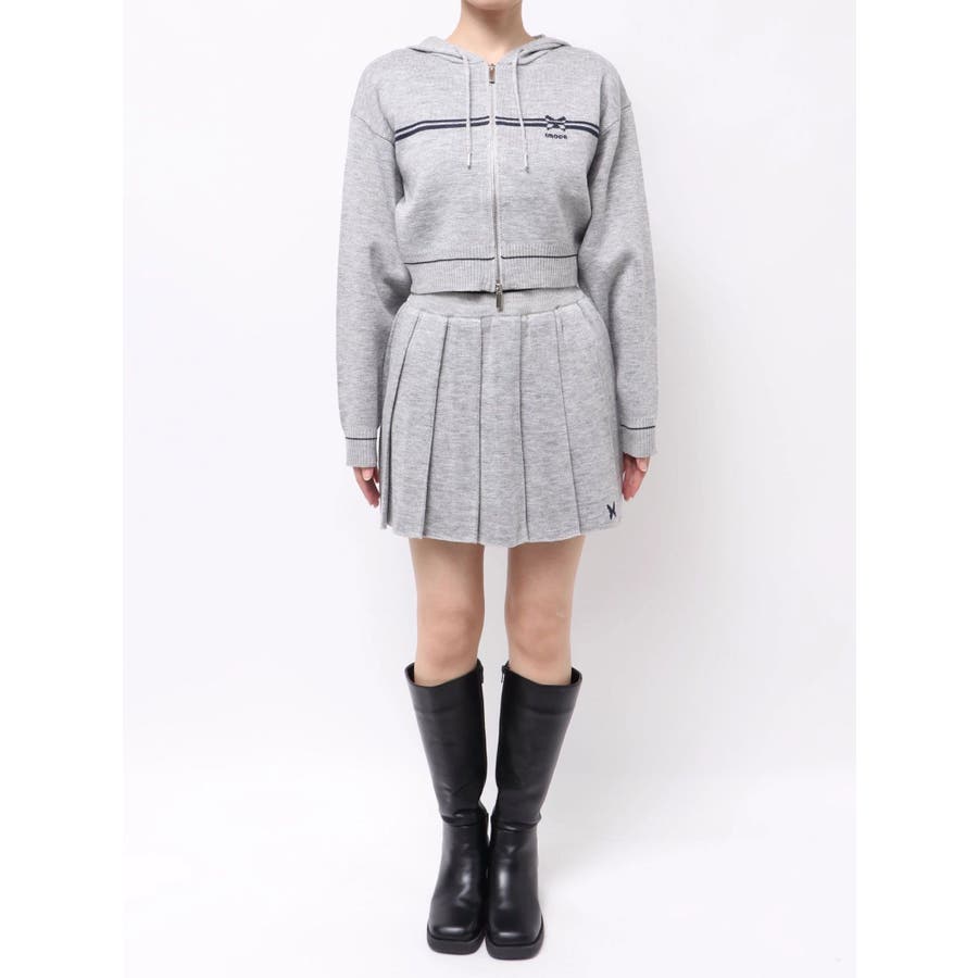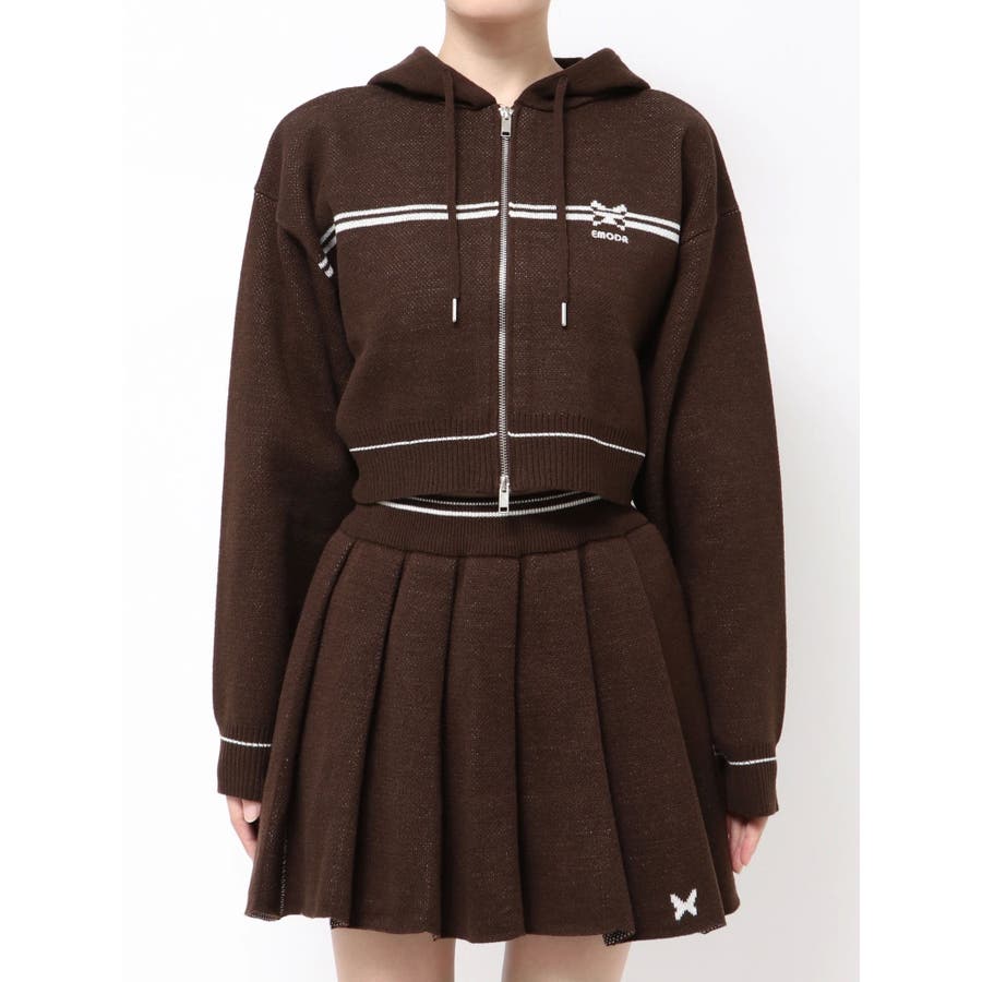 プリーツニットミニスカートと共通デザインシリーズセットアップで着用可能セットアップアイテム↓プリーツニットミニスカート(042560850601)■デザイン無地と柄の展開。無地はラインデザインとフロントのリボンモチーフでキャッチーに。柄は今季トレンドの小花柄を全体的にジャガードで表現。柄を主役にモチーフは付けず、袖口と裾のラインをポイントにしています。ジャスト丈で程よくゆとりのあるシルエットで作成しているので着やすいボディです。ファスナーのメタル感でクールさをプラスしています。目の詰まった編地でしっかりとした肉感があるので暖かいのも嬉しいポイント。■スタイリングチューズプリーツニットミニスカートとのセットアップがイチオシ。もちろん単品でもデイリー使いしやすいので、リボンポケットハイウエストパギンスやハートドットルーズジーンズのようなデニムから秋冬らしい素材のフェイクレザーラップスカートとの合わせもおすすめです。※着用画像はフラッシュの加減で実際の製品と色味等が異なる場合がございますので、生地のズームアップ画像をご確認ください。※ご利用の端末画面の設定により実際の商品と色味が異なる場合がございます。【商品特徴】透け感:なし伸縮性:なし生地の厚さ:普通サイズ感:普通裏地:なしポケット:なし
