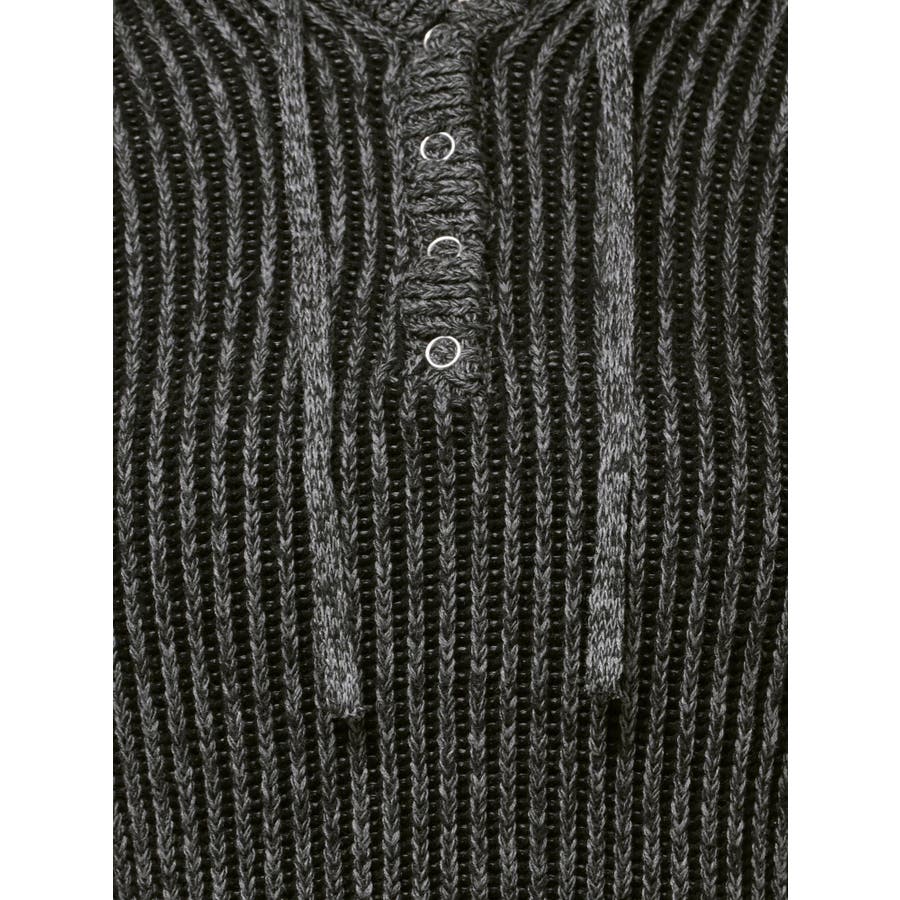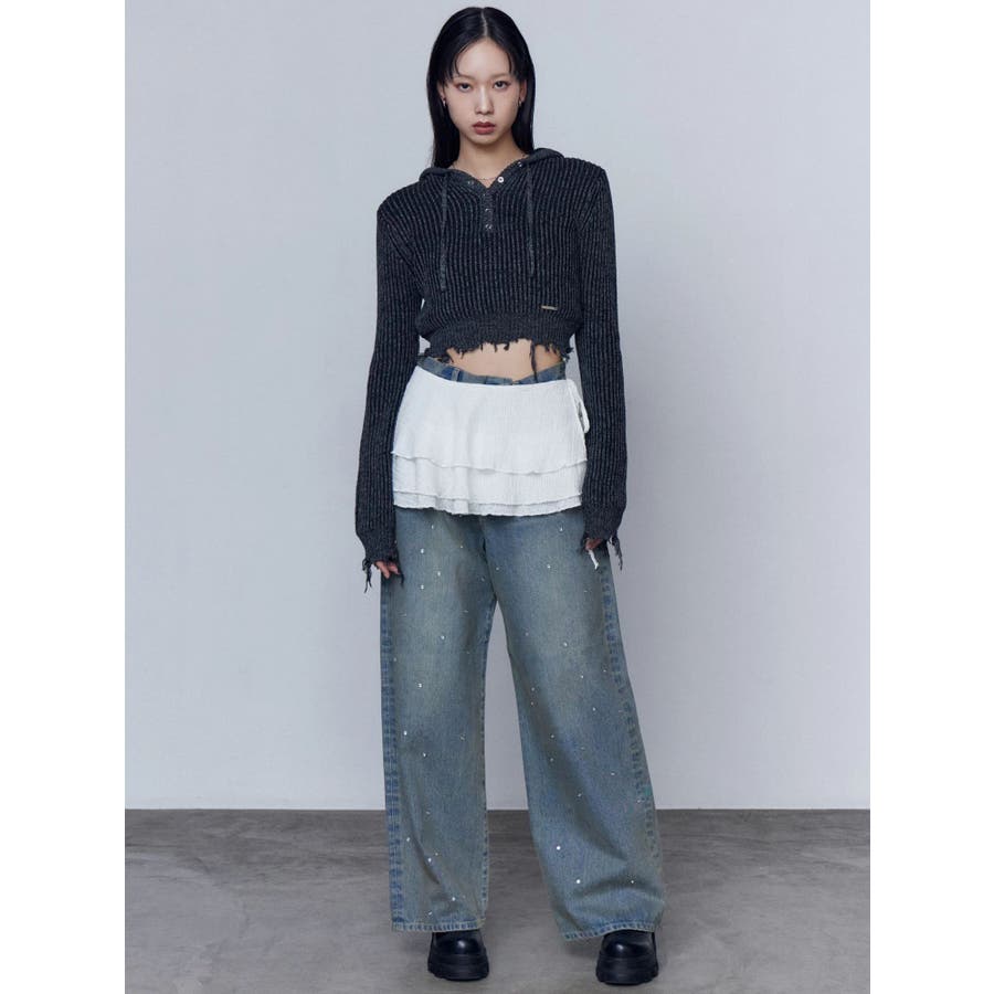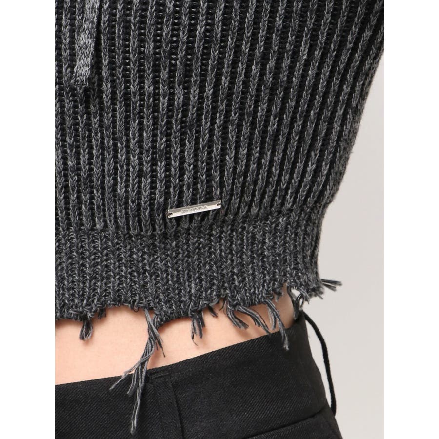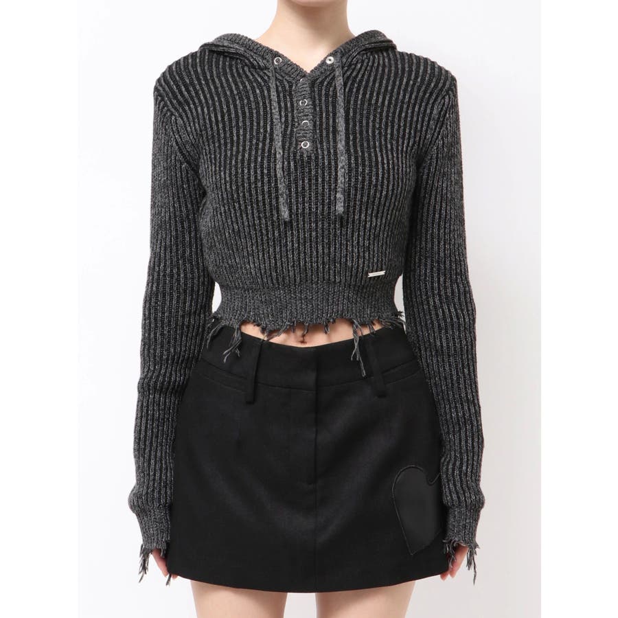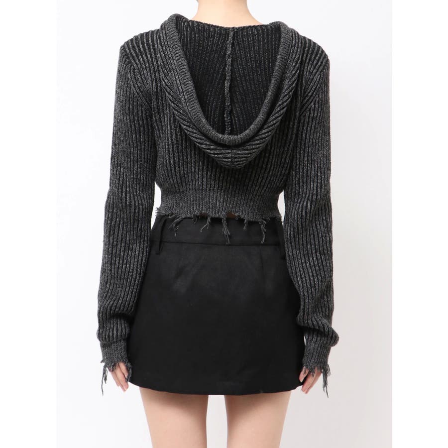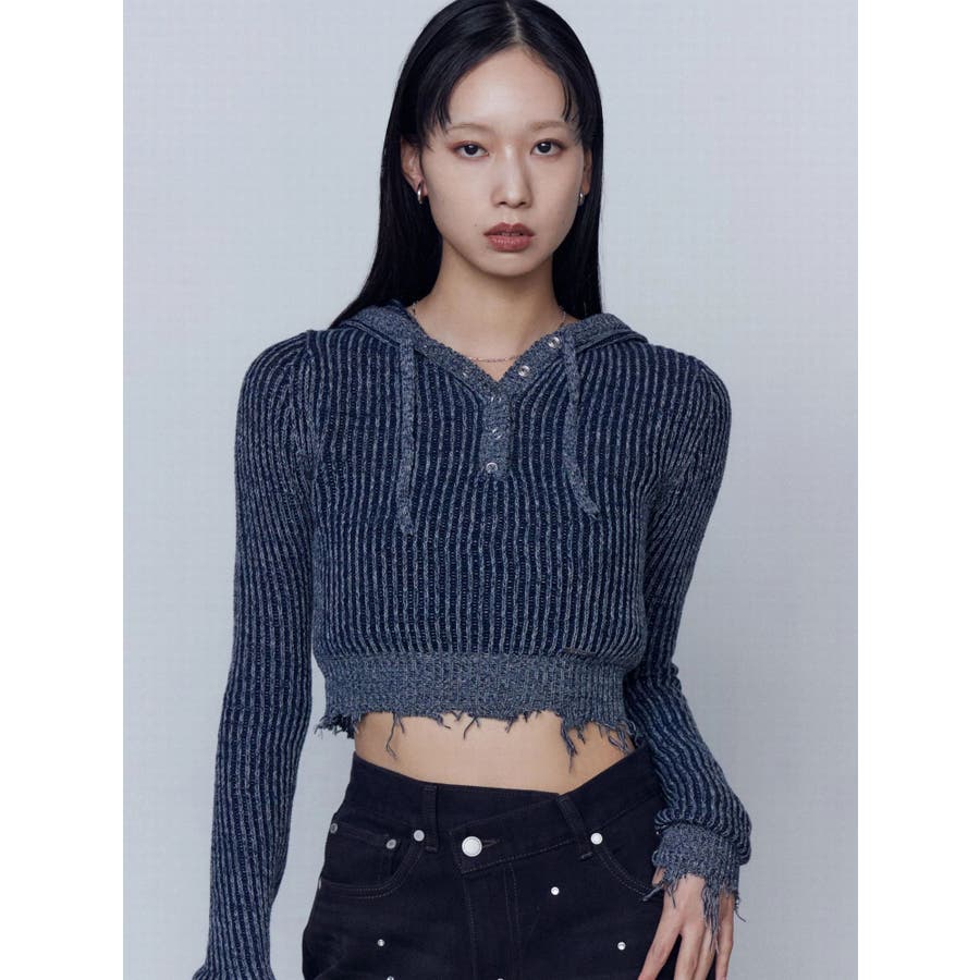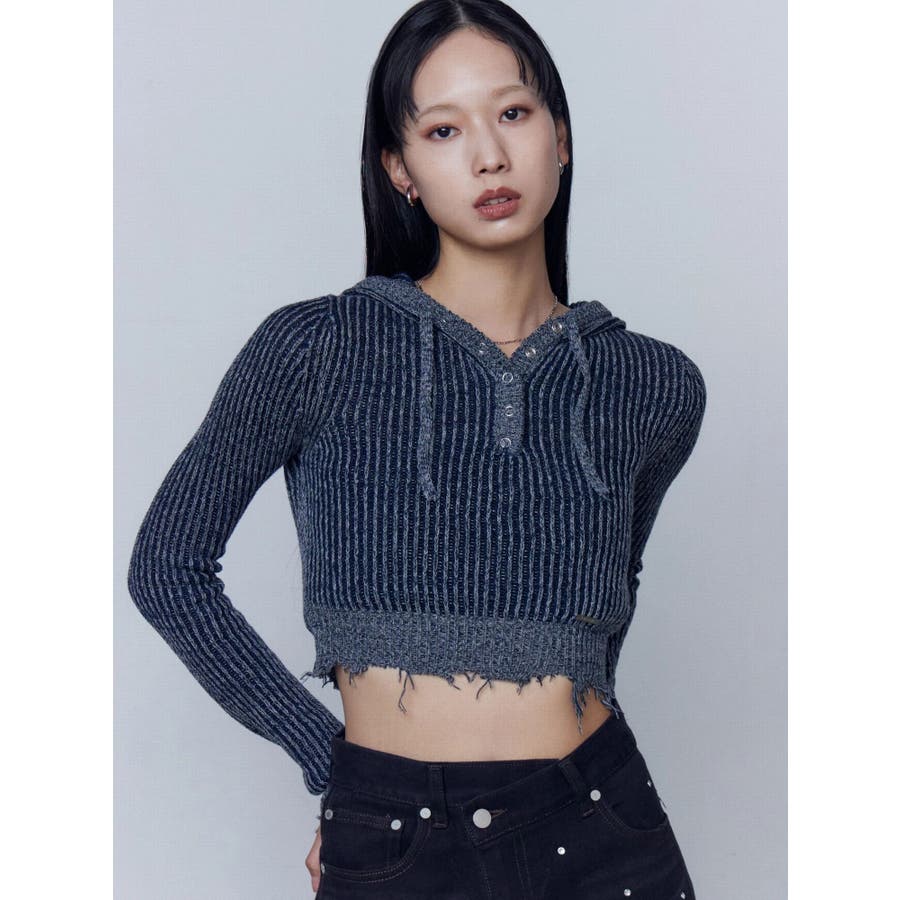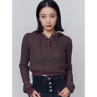 プルオーバータイプのニットパーカー■デザイン袖口と裾はダメージ加工を施しカジュアルな雰囲気に。フロントにはリングボタンとプレートを付けてクールさをプラス。プレーティング編みにしているのでミックスされた糸の色がさりげなくおしゃれな印象に見せてくれます。ボディはコンパクトですが片畦編みでルーズに仕上げているのでどんな方でも着やすいサイズ感です。■スタイリング一枚着はもちろん、シャギージャケットコートのようなアウターのインナーに使用しフードを出す着こなしもおすすめです。ワイドパンツ合わせでメリハリのあるバランスで着用するのがイチオシです。※着用画像はフラッシュの加減で実際の製品と色味等が異なる場合がございますので、生地のズームアップ画像をご確認ください。※ご利用の端末画面の設定により実際の商品と色味が異なる場合がございます。【商品特徴】透け感:なし伸縮性:ややあり生地の厚さ:普通サイズ感:普通裏地:なしポケット:なし