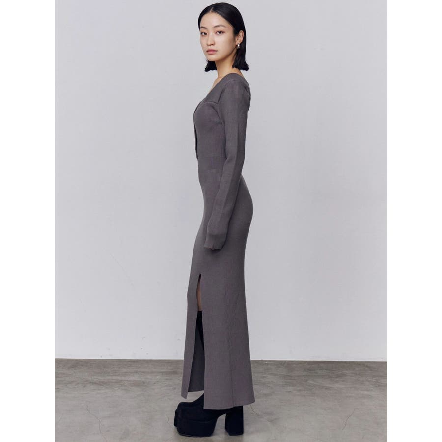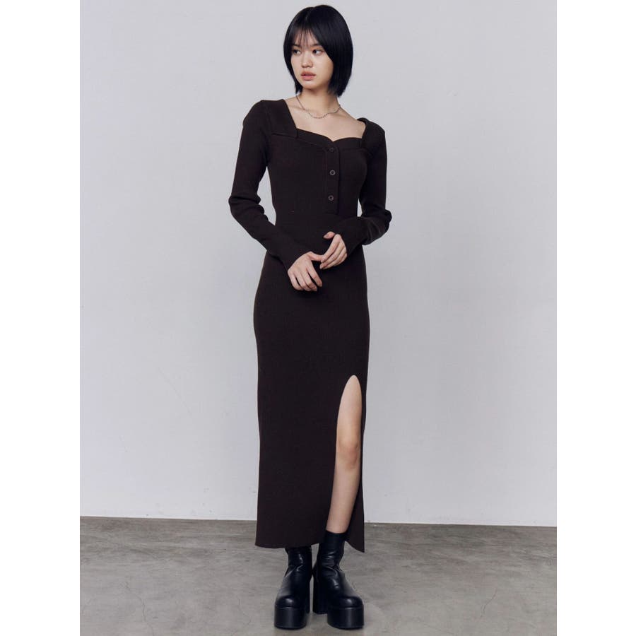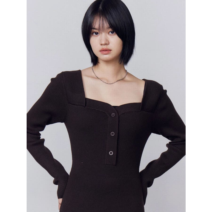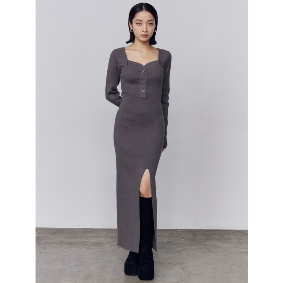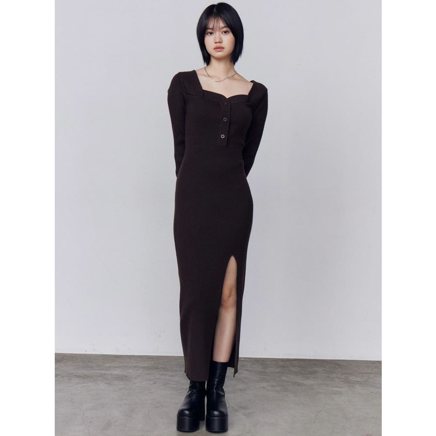 フロントボタンリブニットワンピース