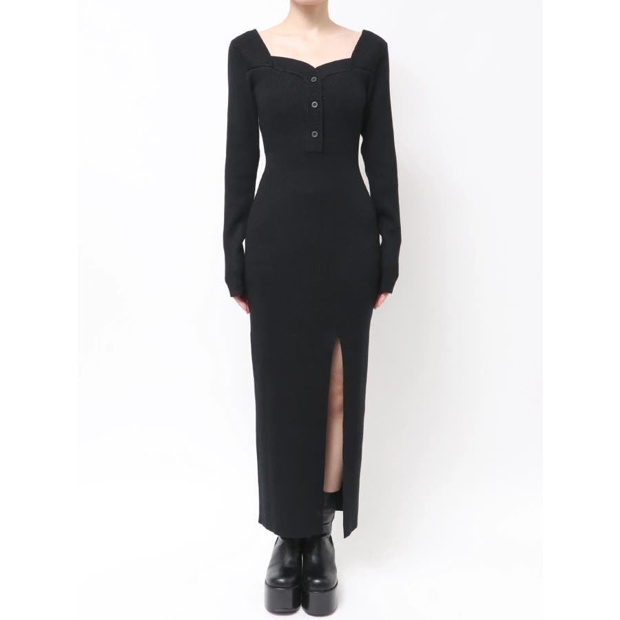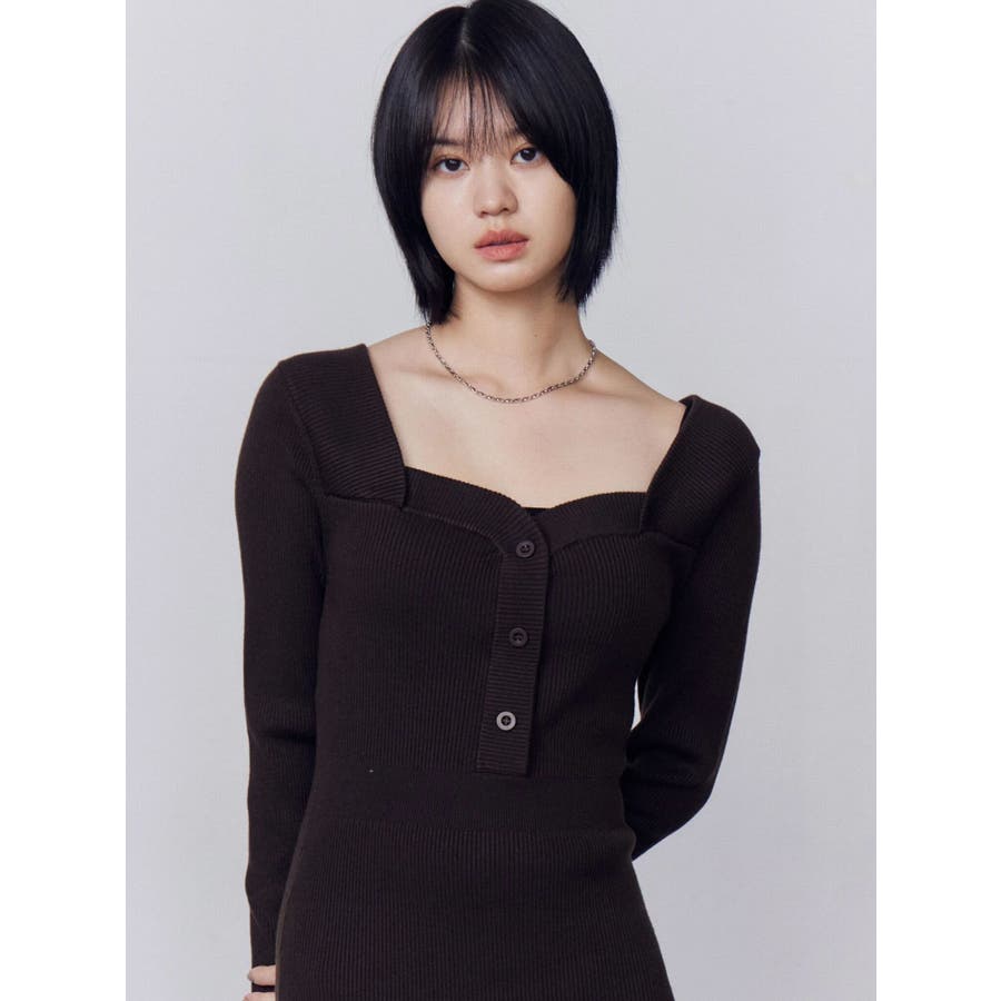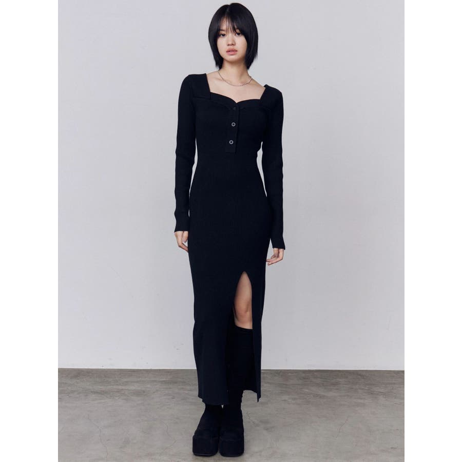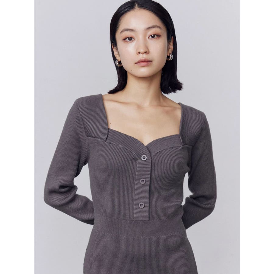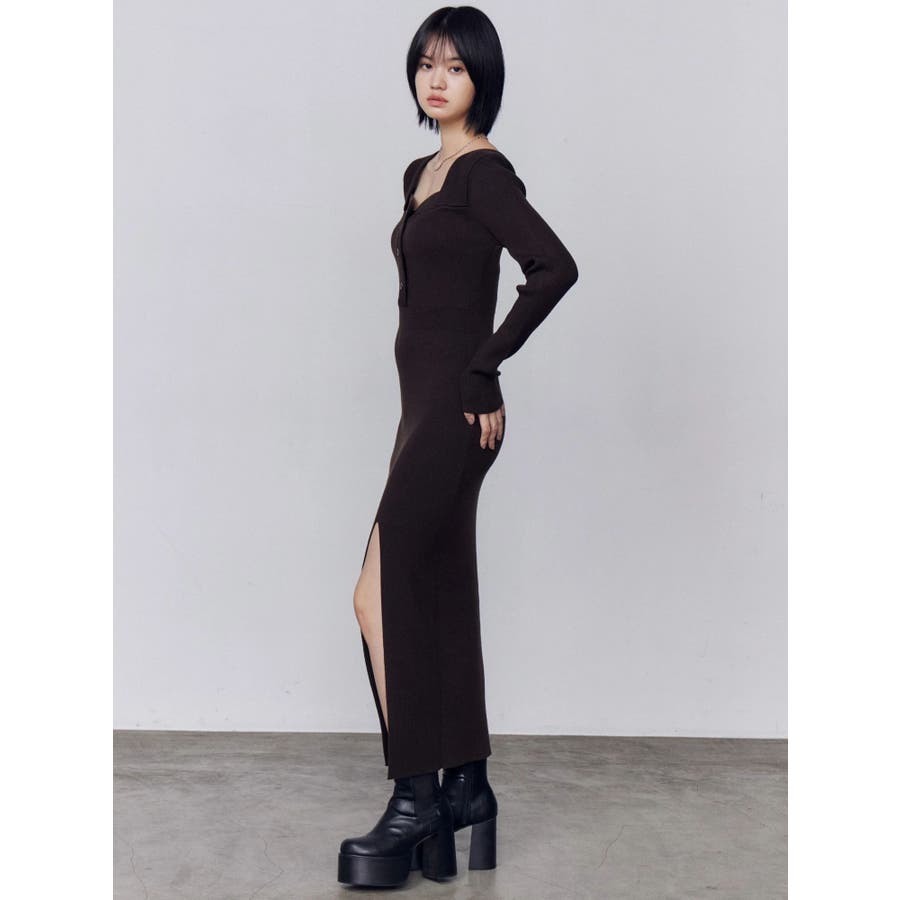 フロントボタンリブニットワンピース