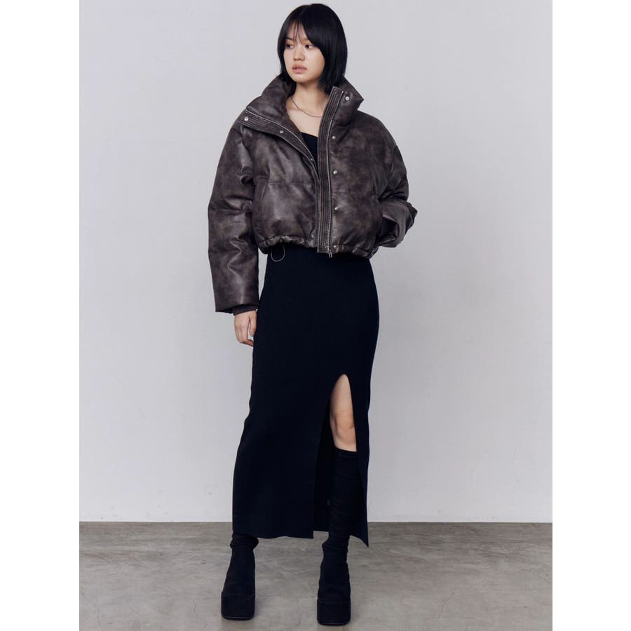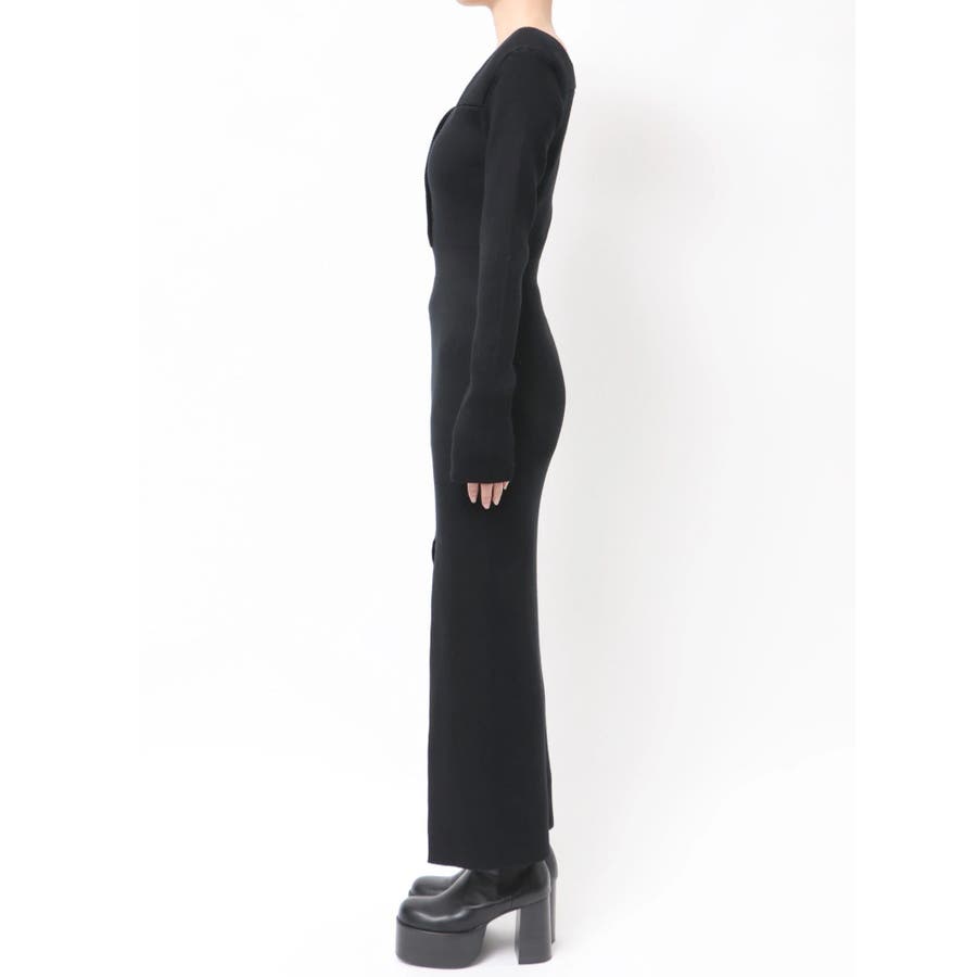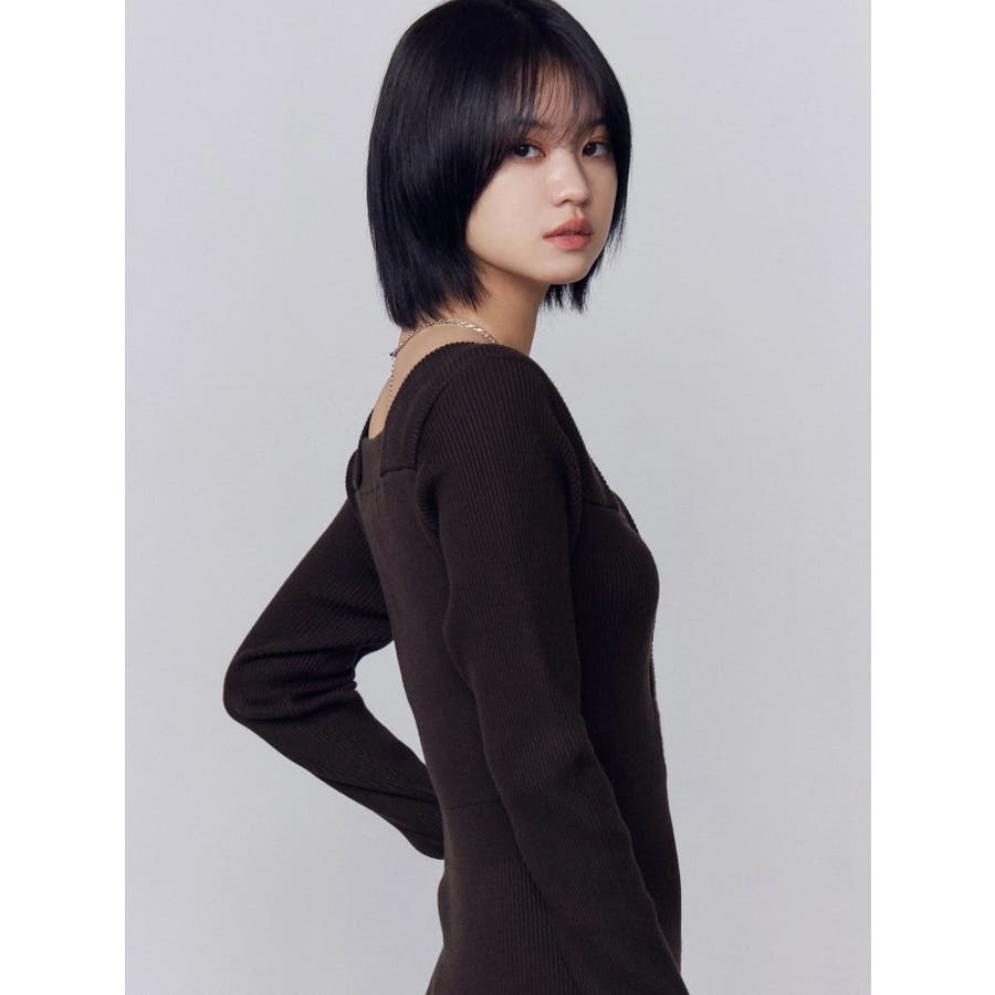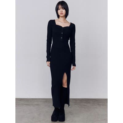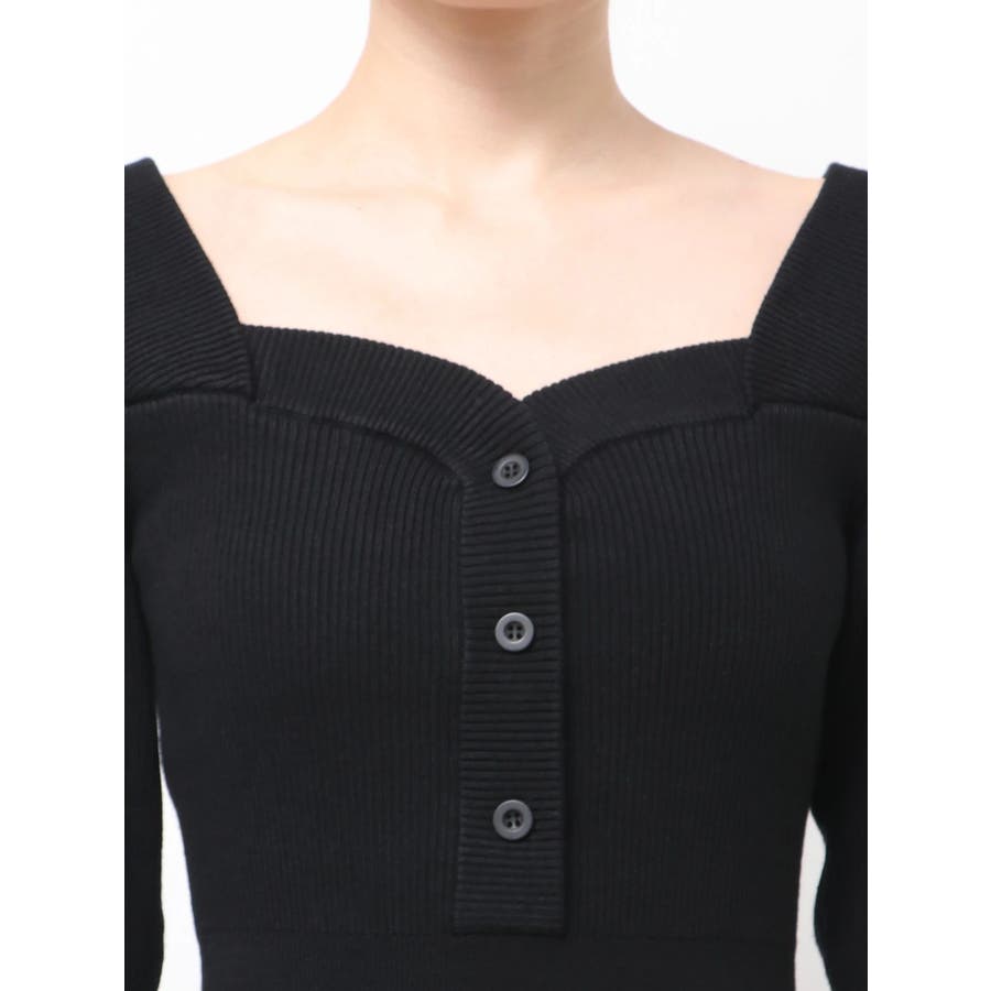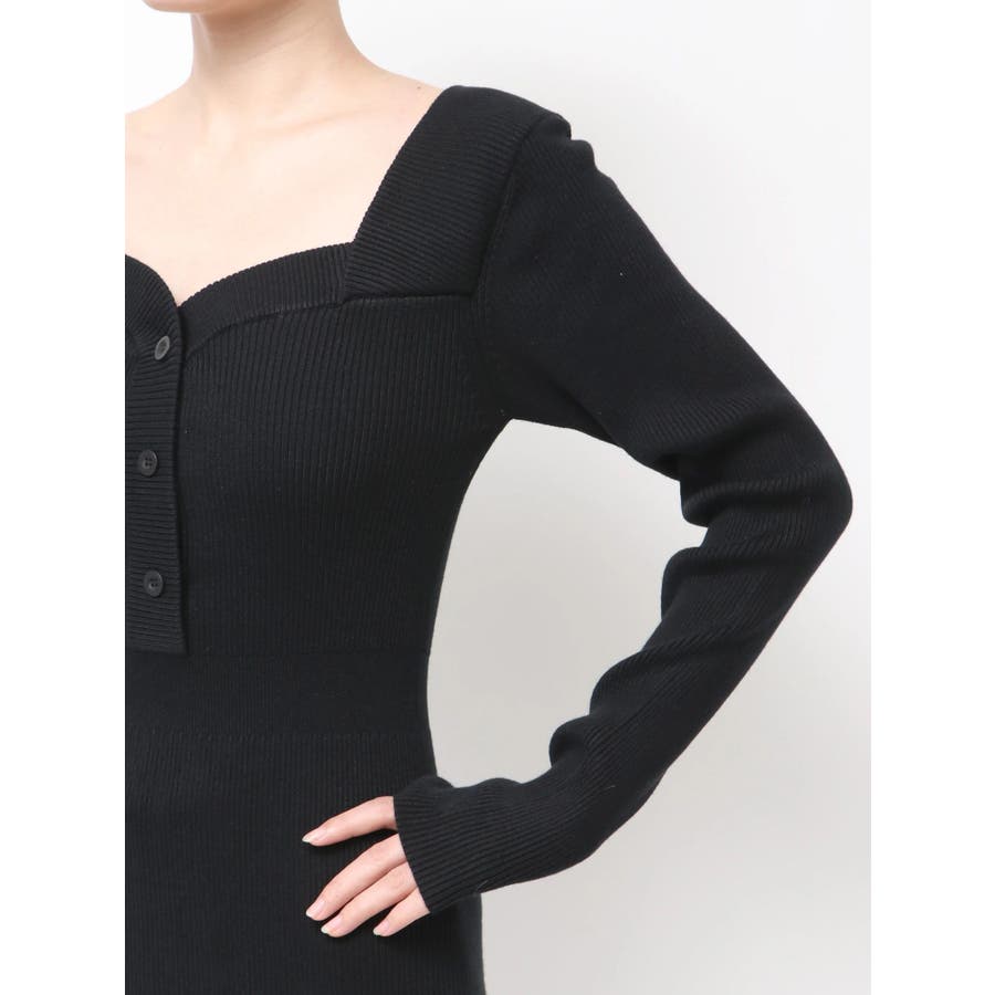 フロントボタンリブニットワンピース