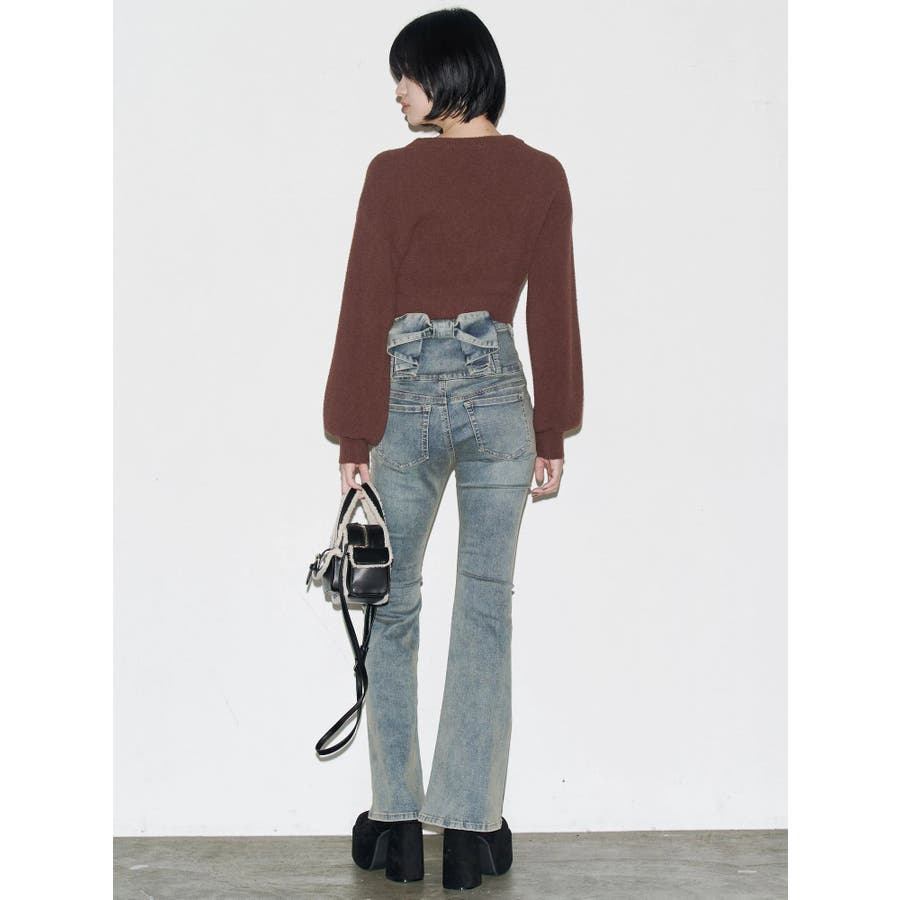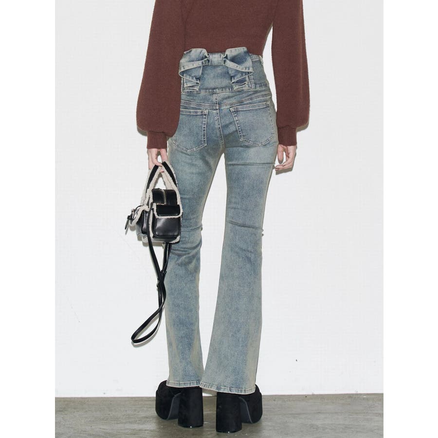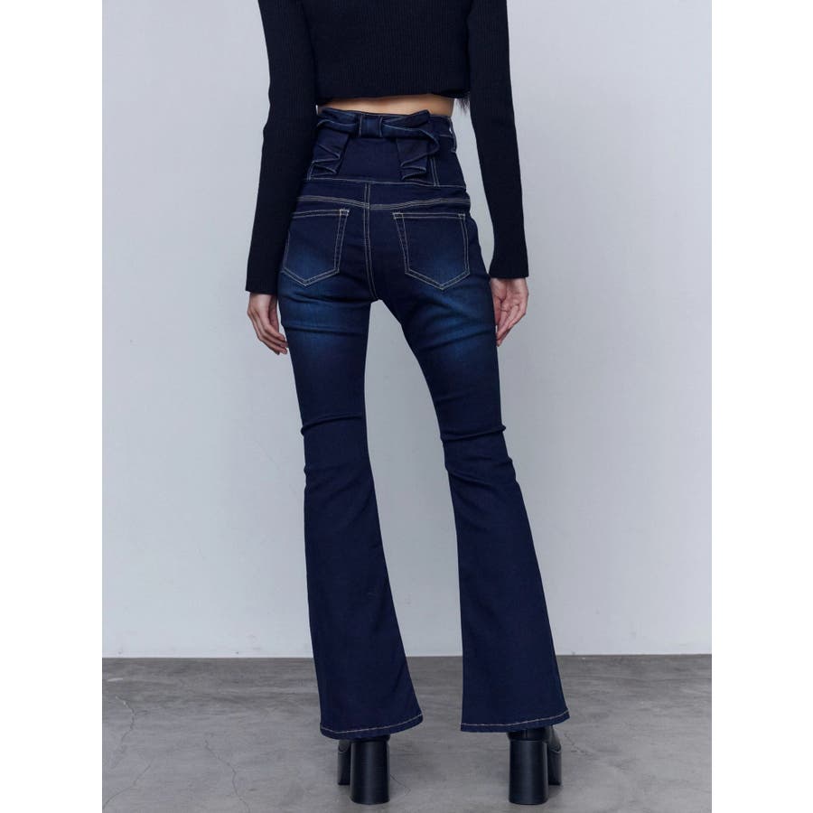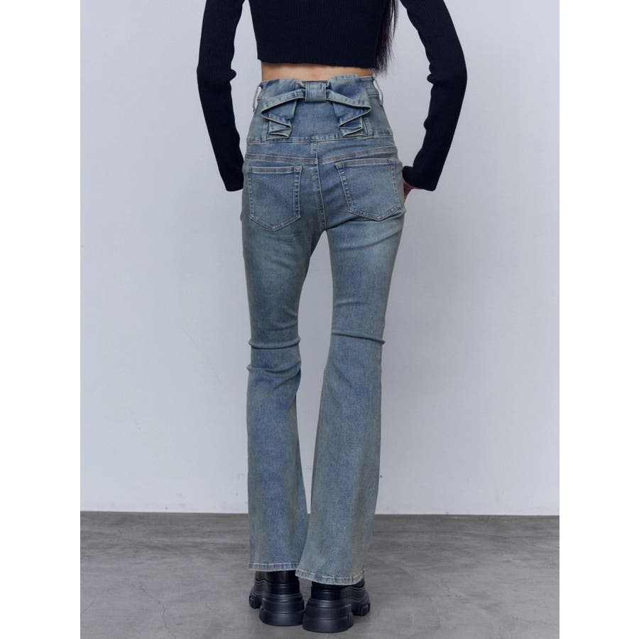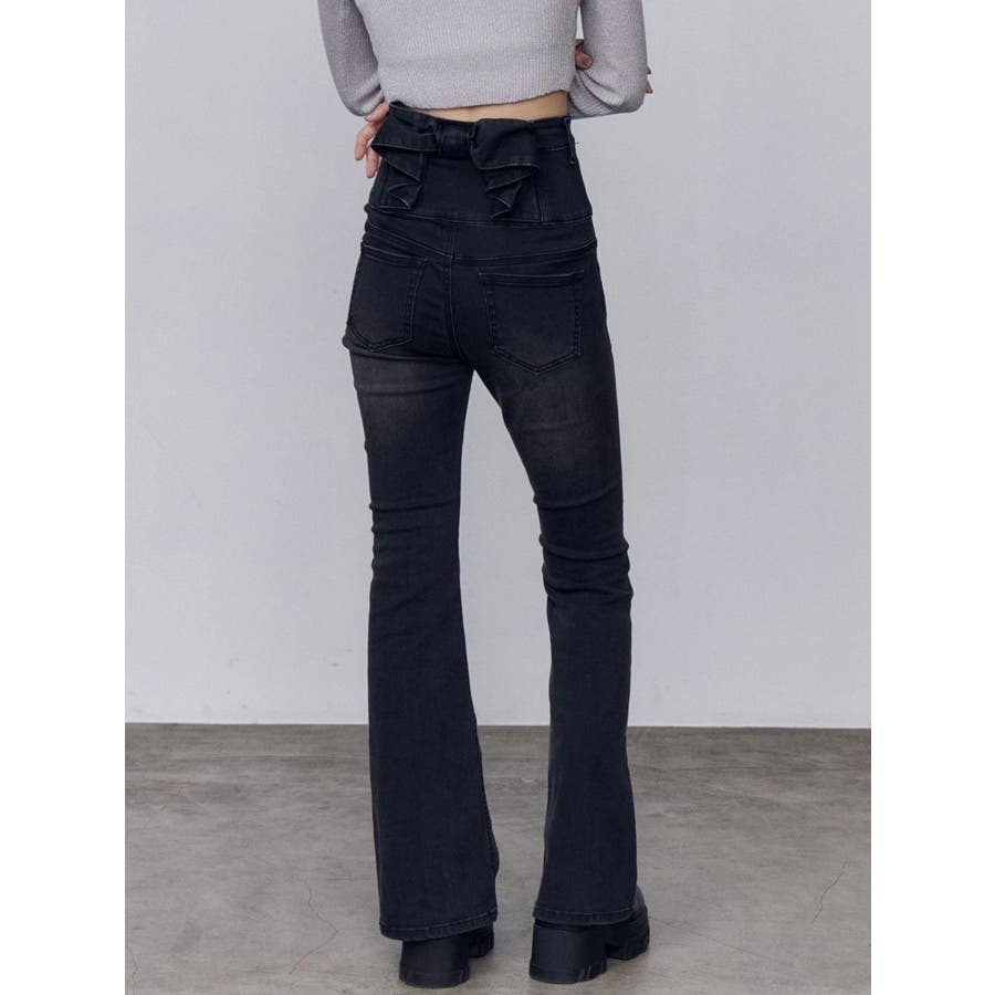 バックリボンフレアハイウエストパギンス