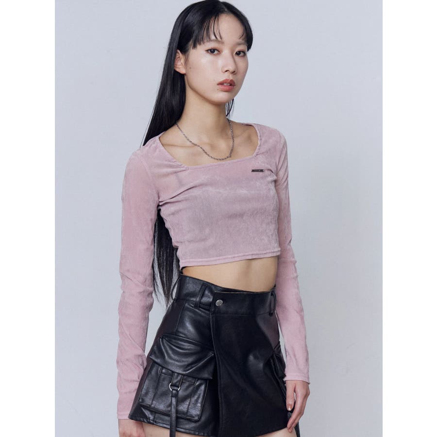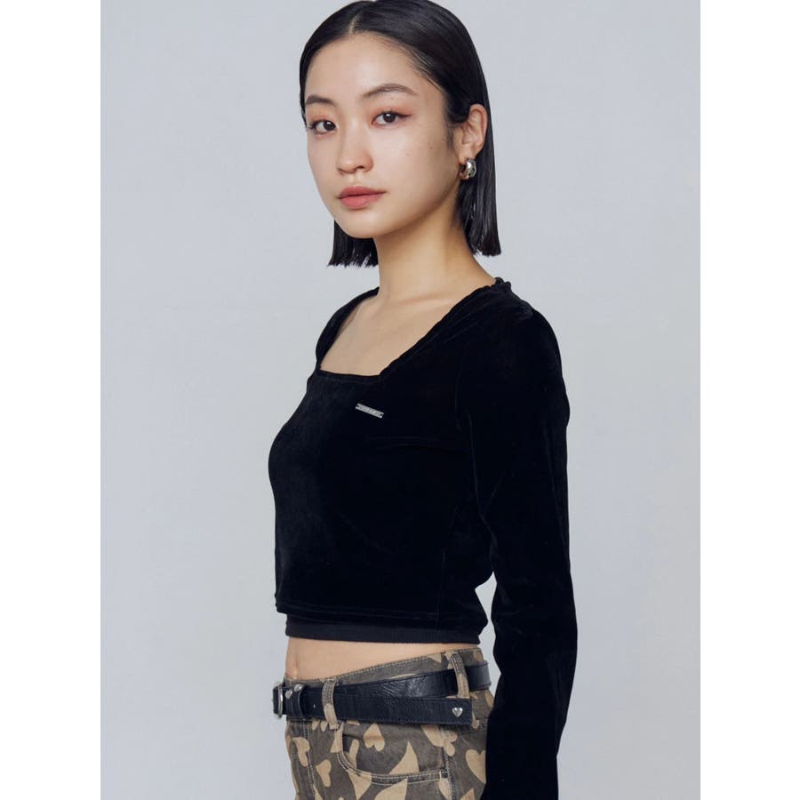 シアーベロアプレートクロップトップ