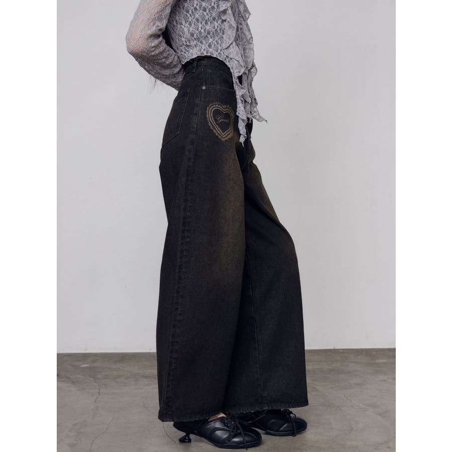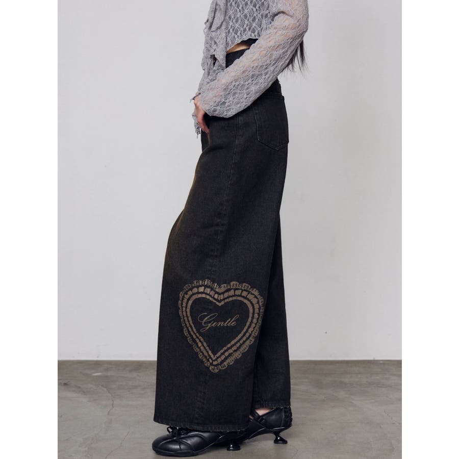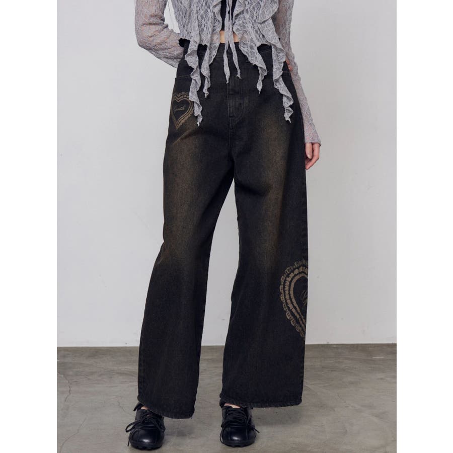 レースグラフィックルーズデニム