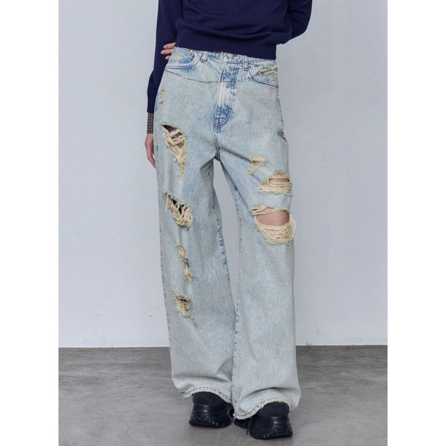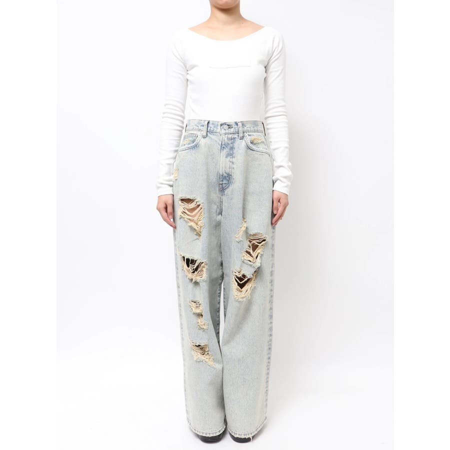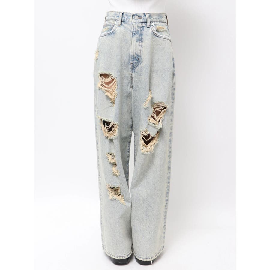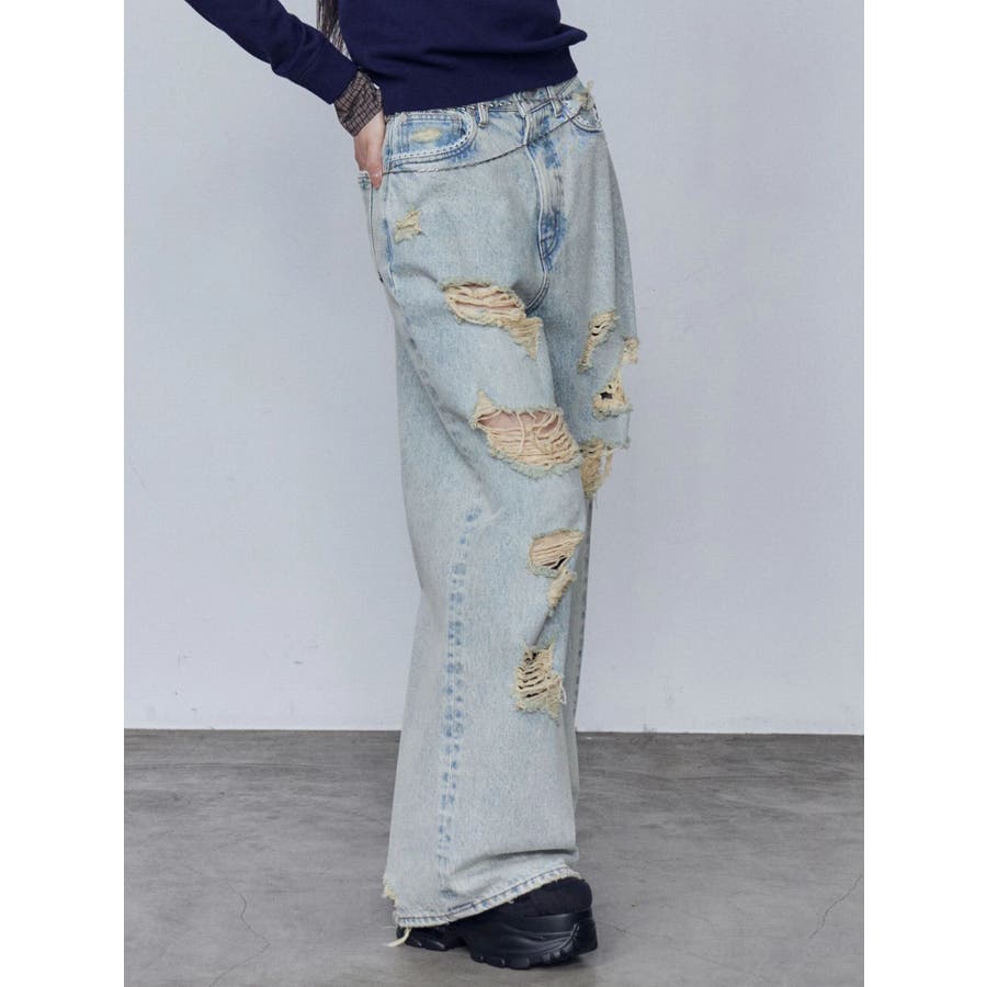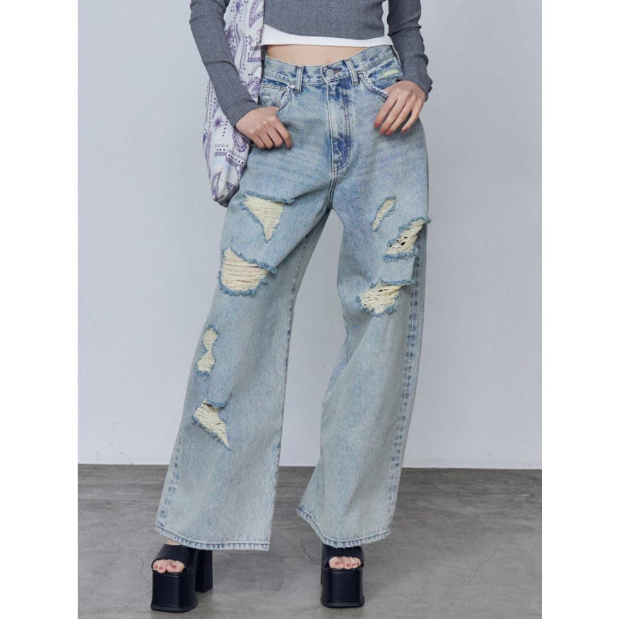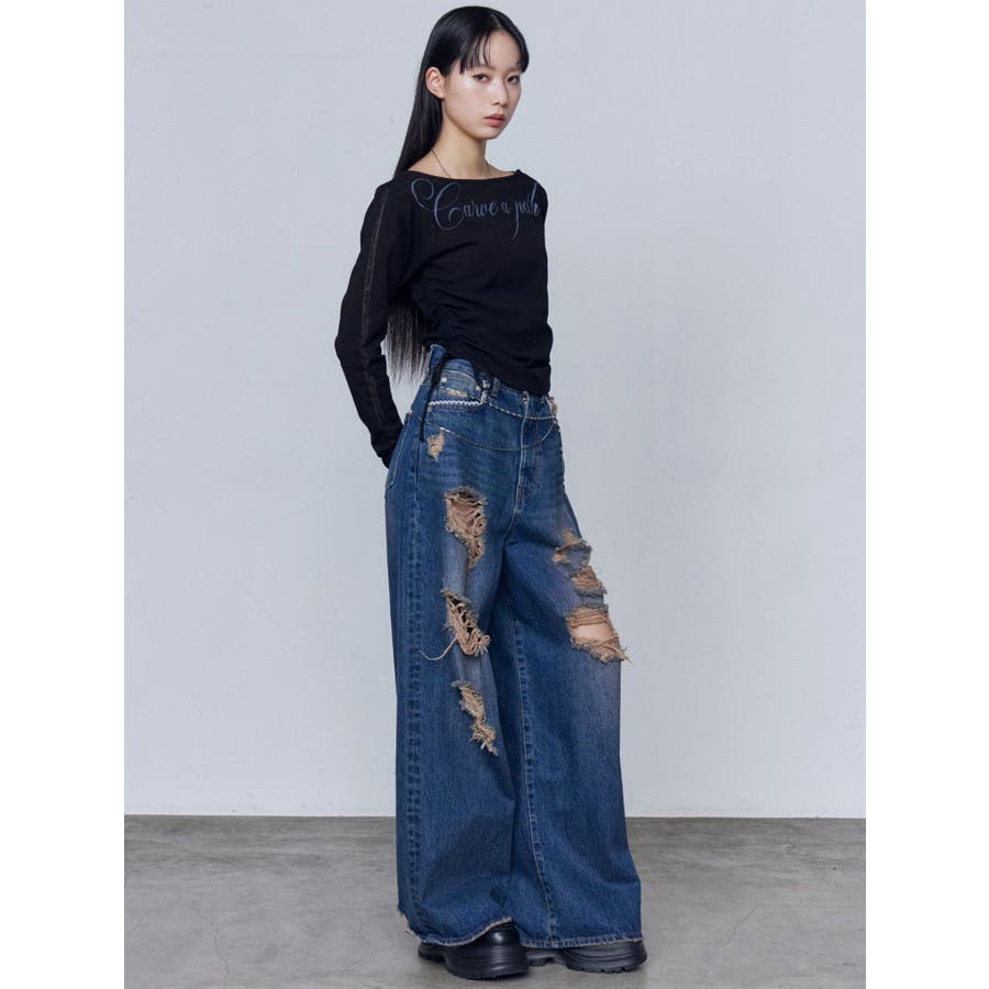 バルキーワイドハイウエストクラッシュジーンズ