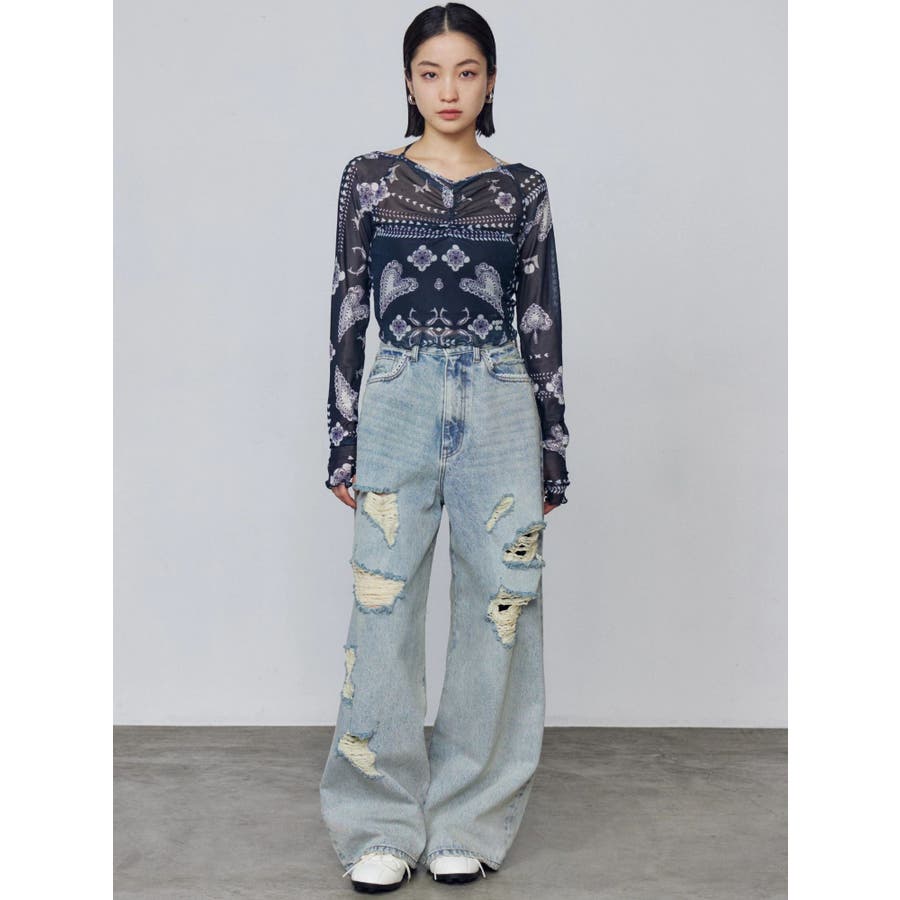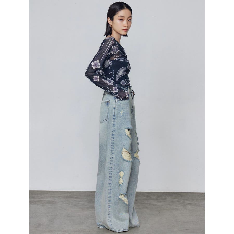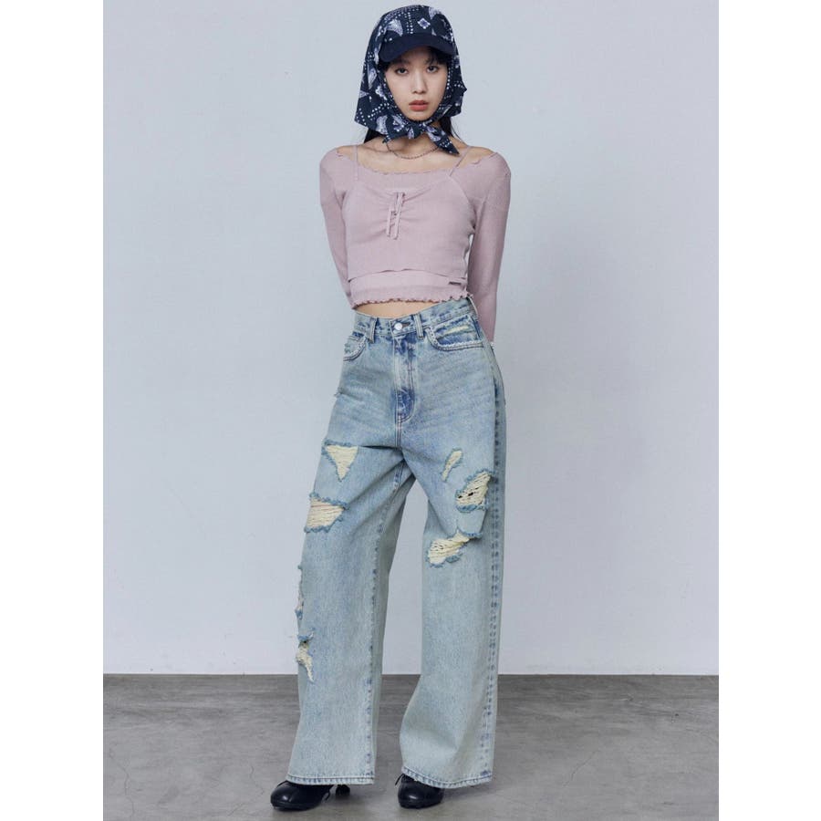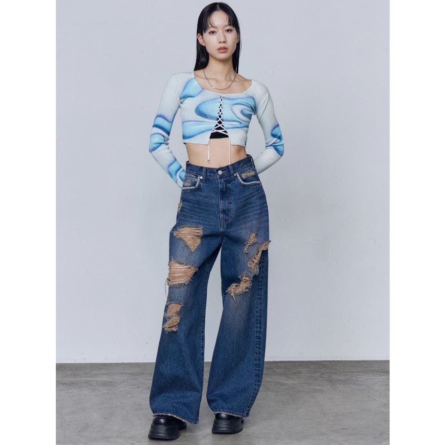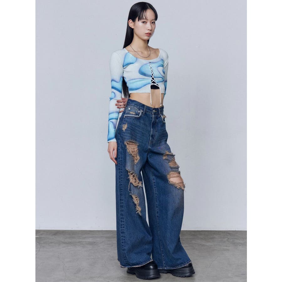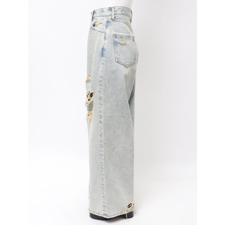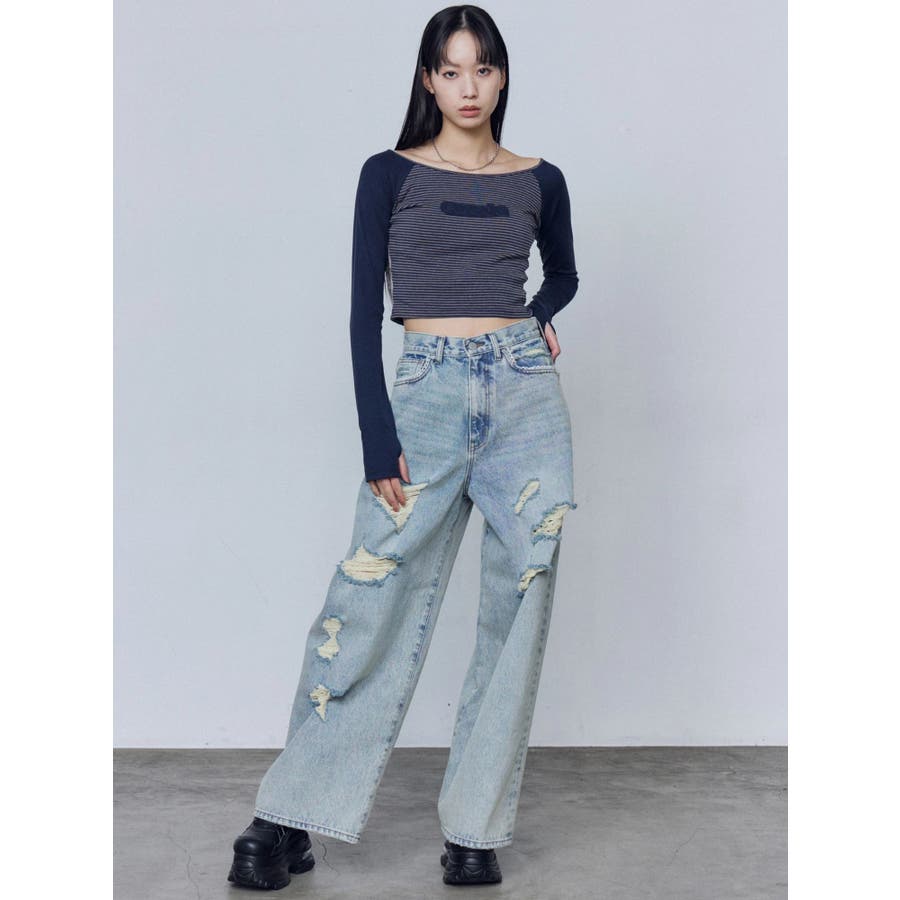 バルキーワイドハイウエストクラッシュジーンズ