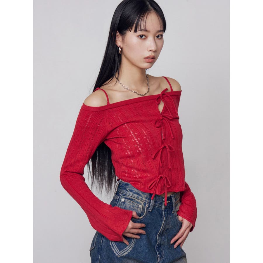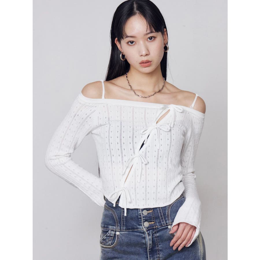 ホールリボン2WAYニット
