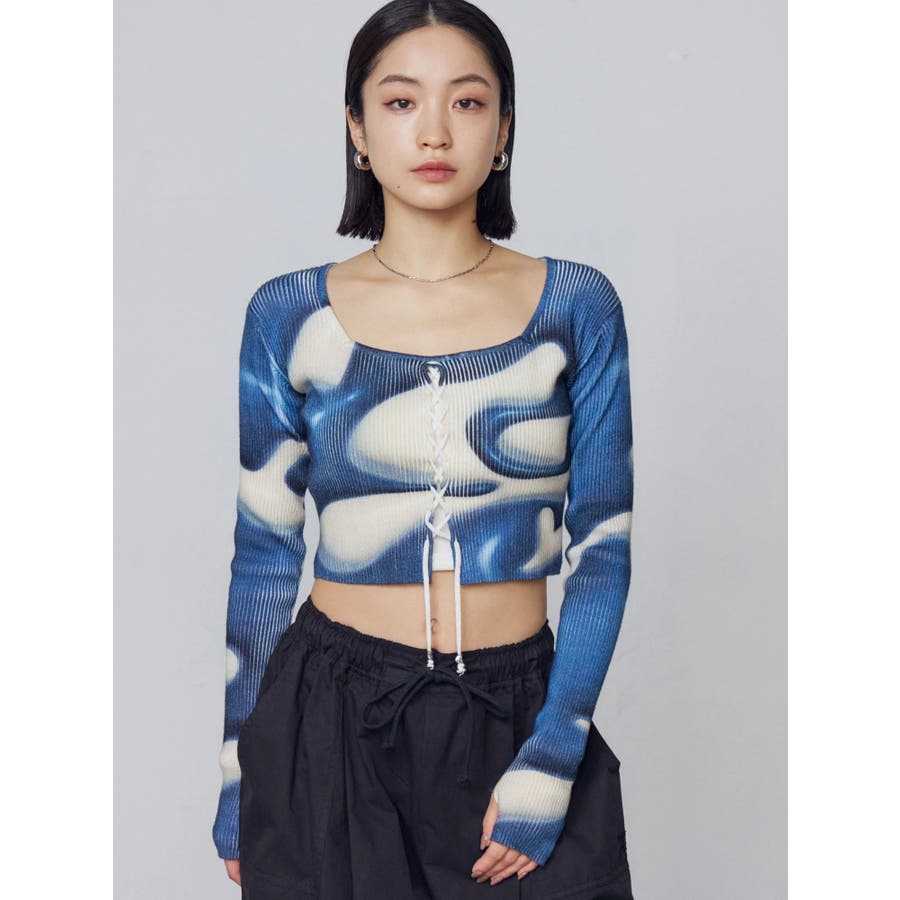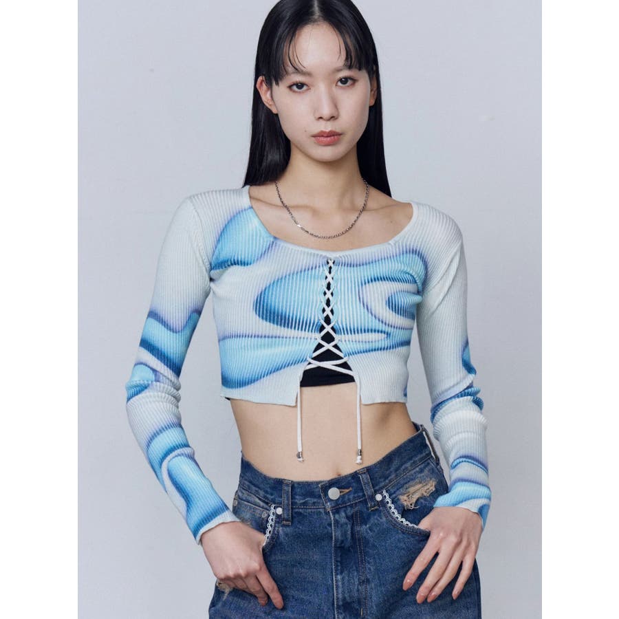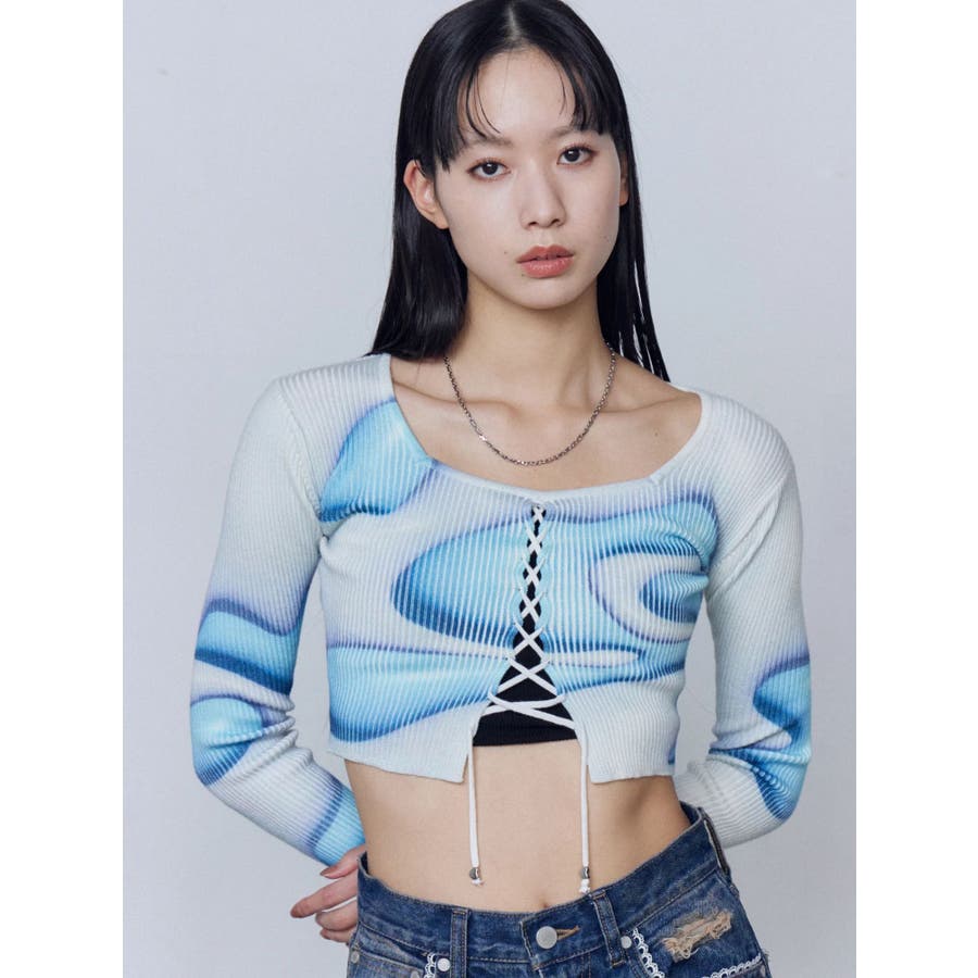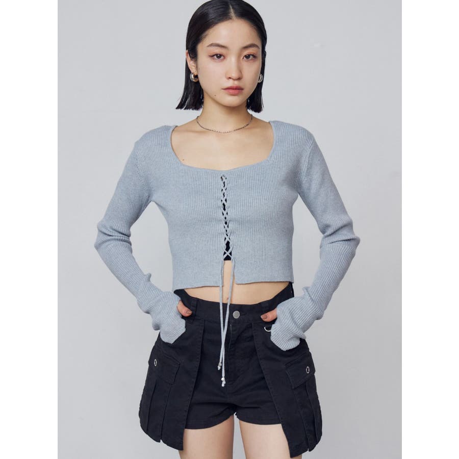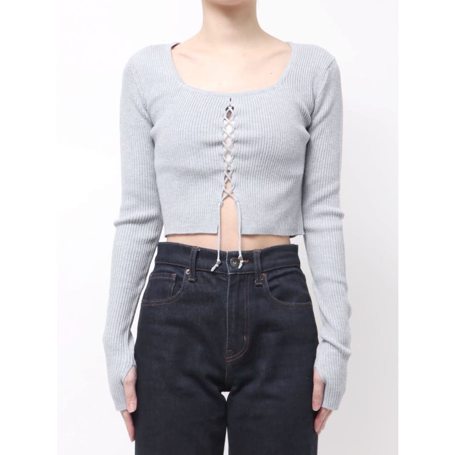フロントレースアップフィットニット