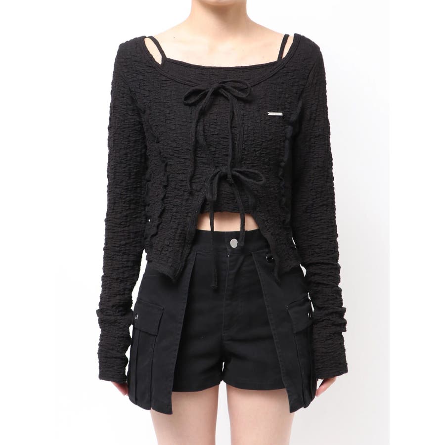 F: バストインナー:78、カーディガン:(GRY,NVY)76(WHT,BLK,MNT)78cm/着丈インナー:27、カーディガン:(GRY,NVY)34(WHT,BLK,MNT)34cm/袖丈カーディガン:(GRY,NVY)64(WHT,BLK,MNT)64cm/肩幅(36、36)cm/裾幅カーディガン:(GRY,NVY)36(WHT,BLK,MNT)36cm/袖ぐりカーディガン:(GRY,NVY)29(WHT,BLK,MNT)31cm
