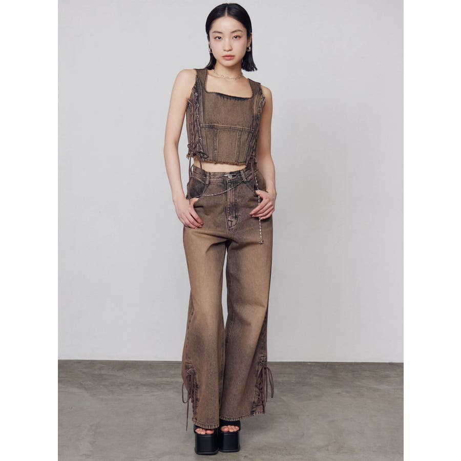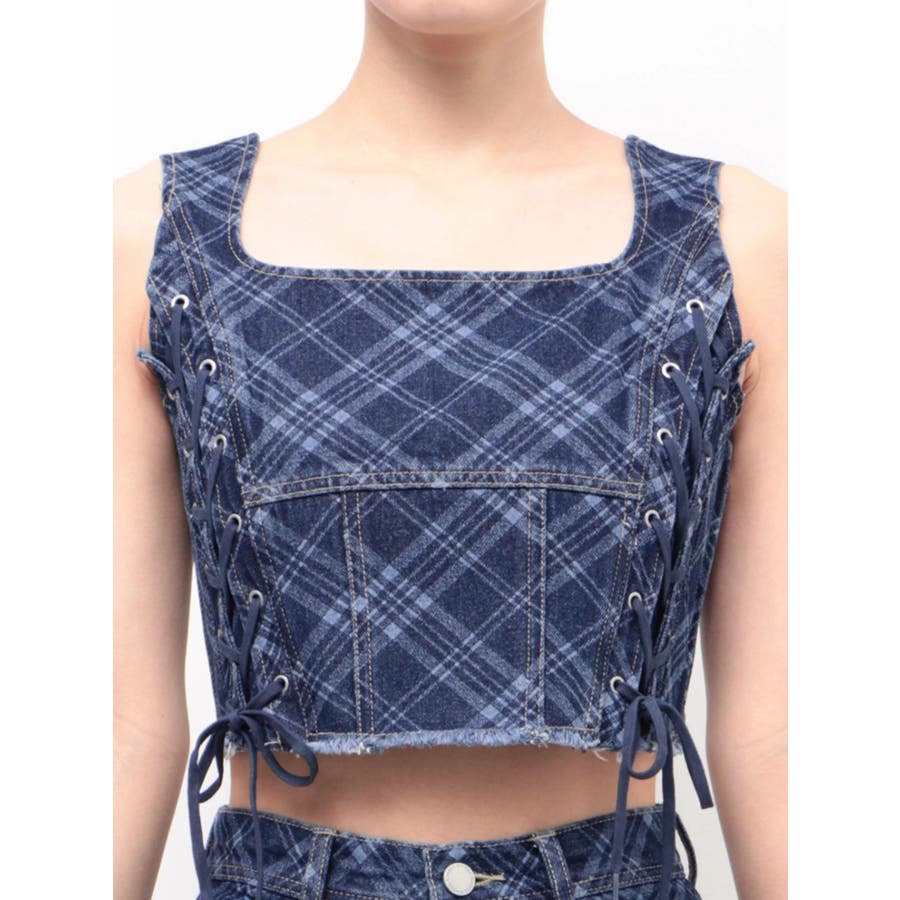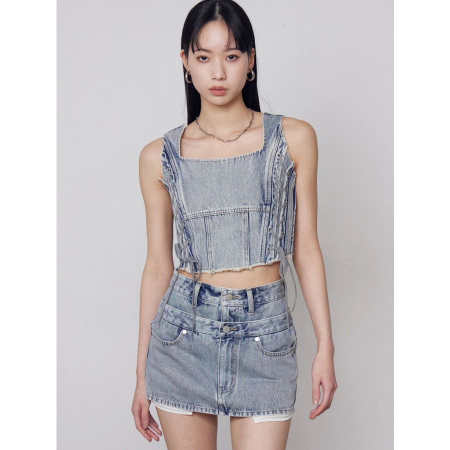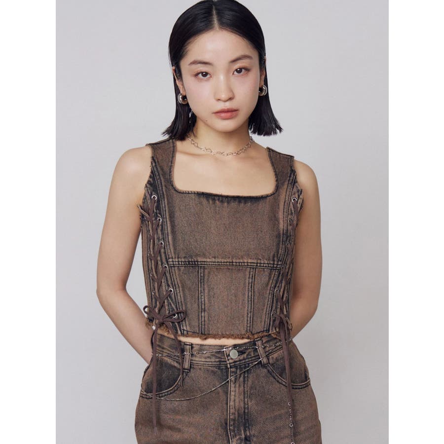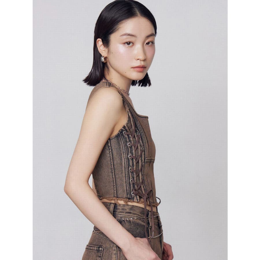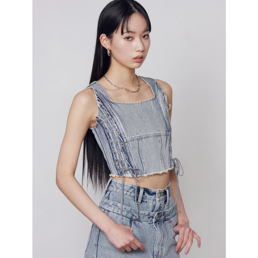 サイドレースアップデニムビスチェ