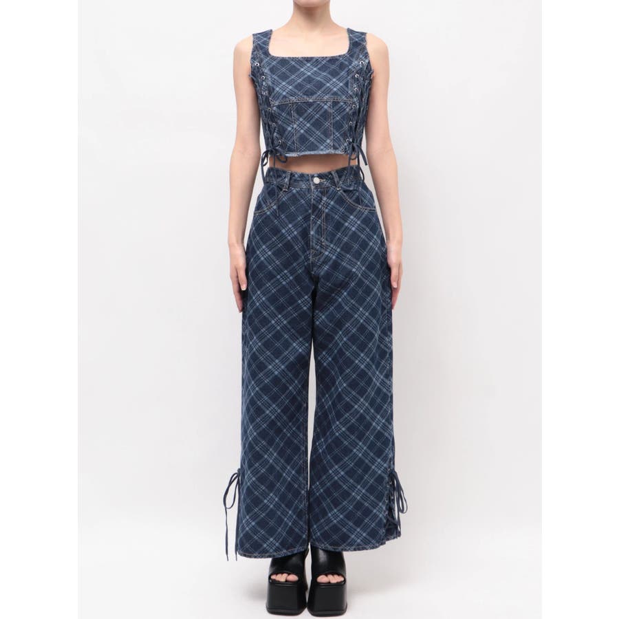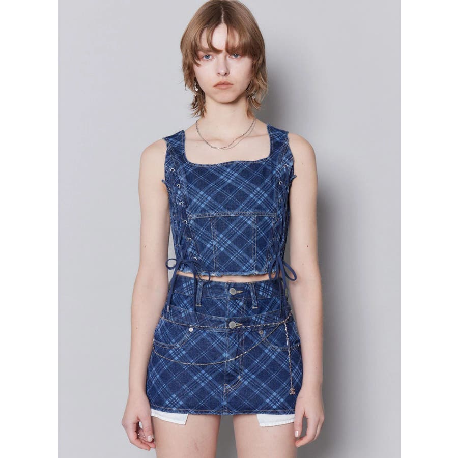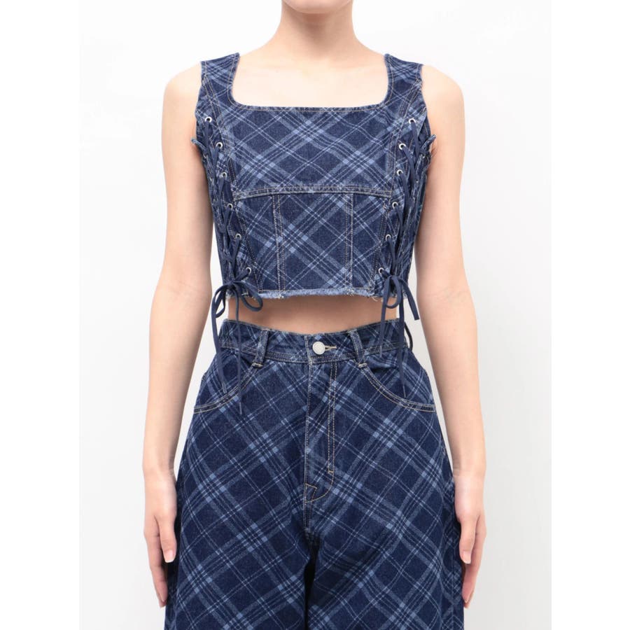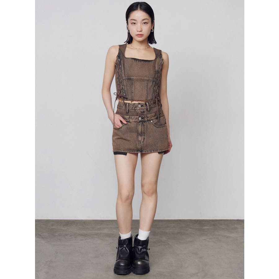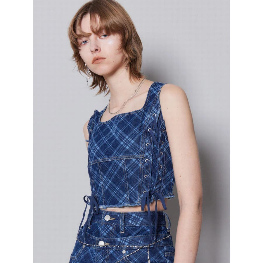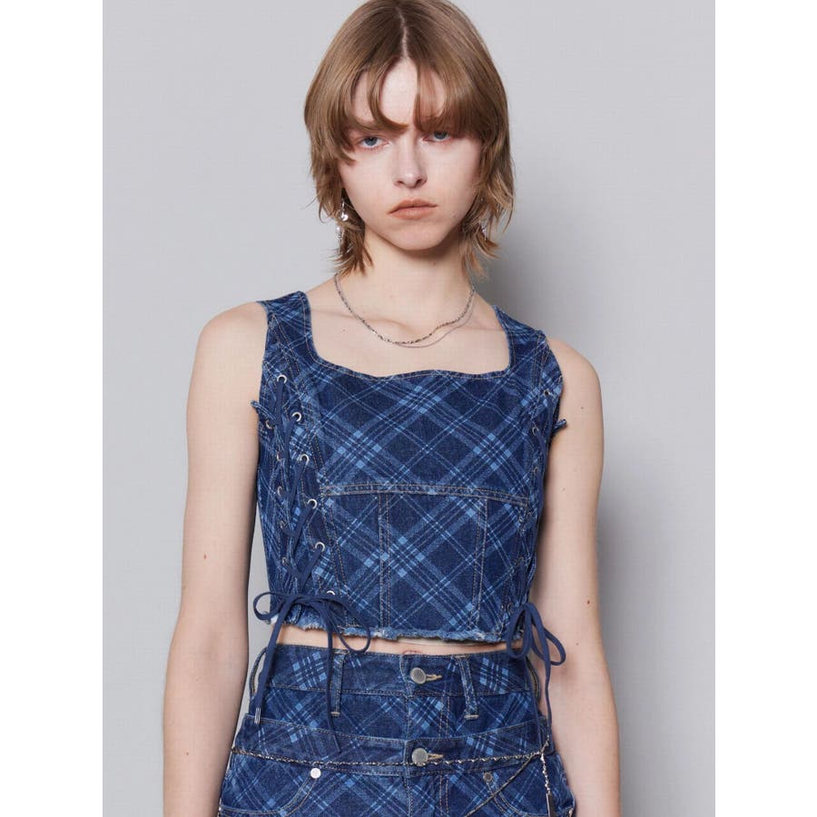 サイドレースアップデニムビスチェ