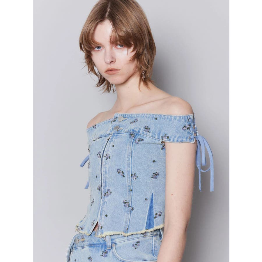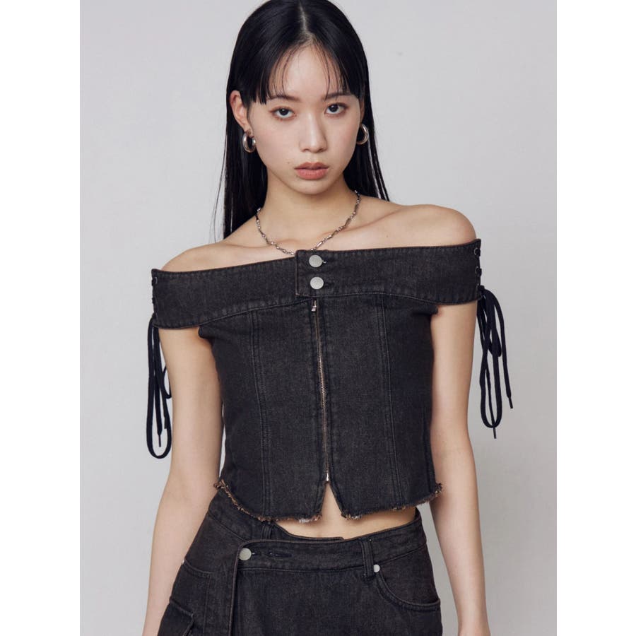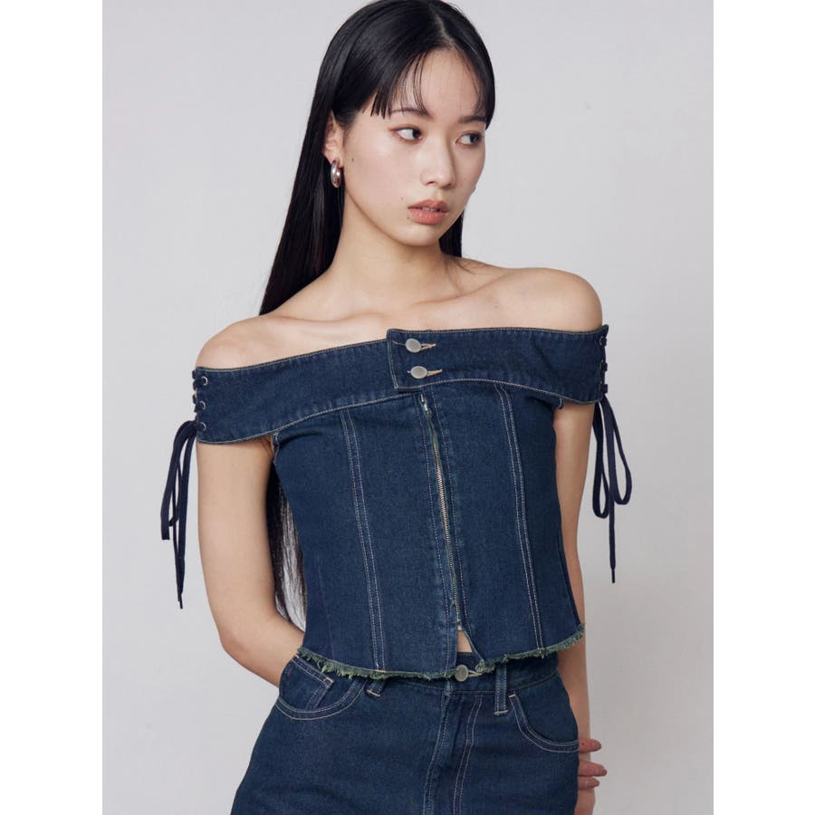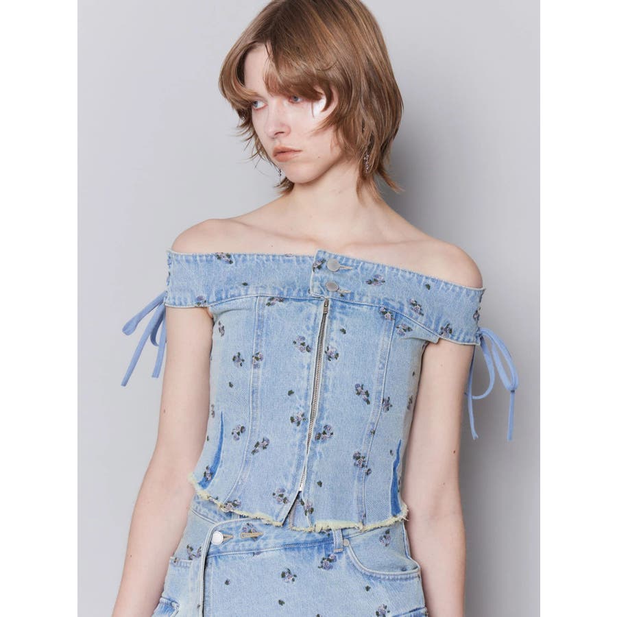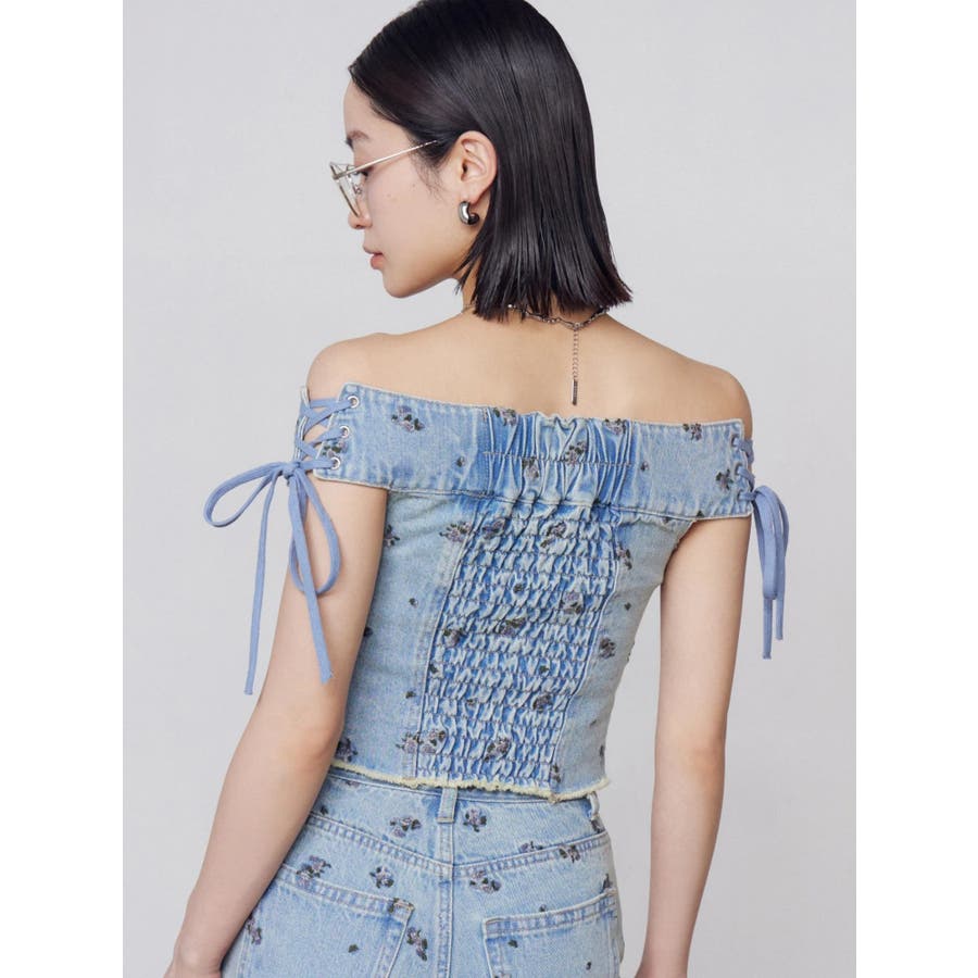 デニムオフショルダートップ