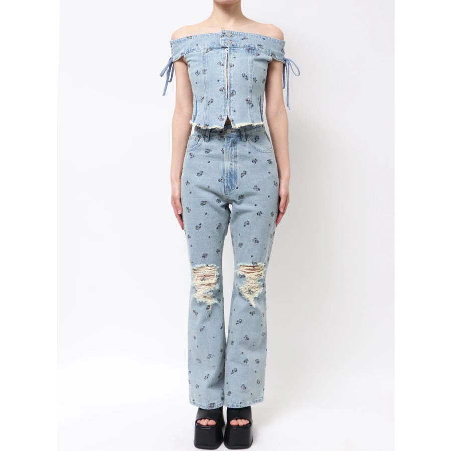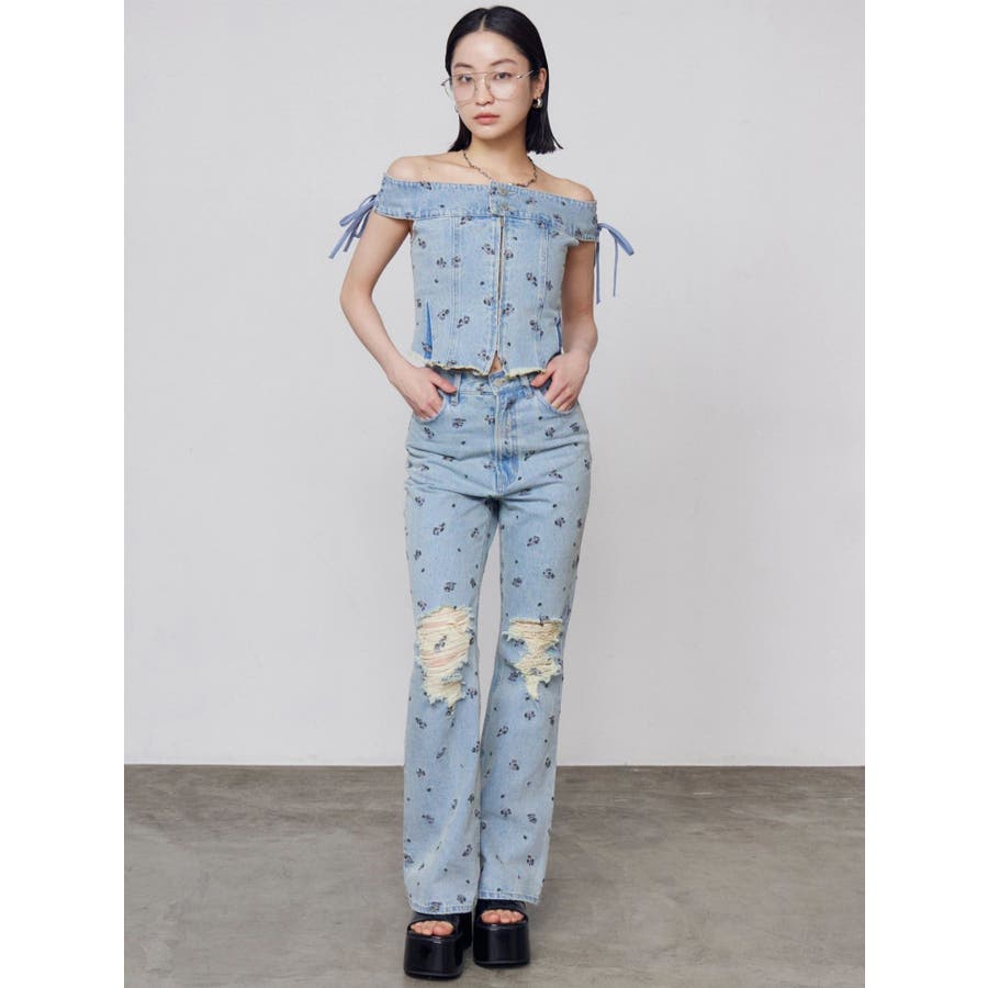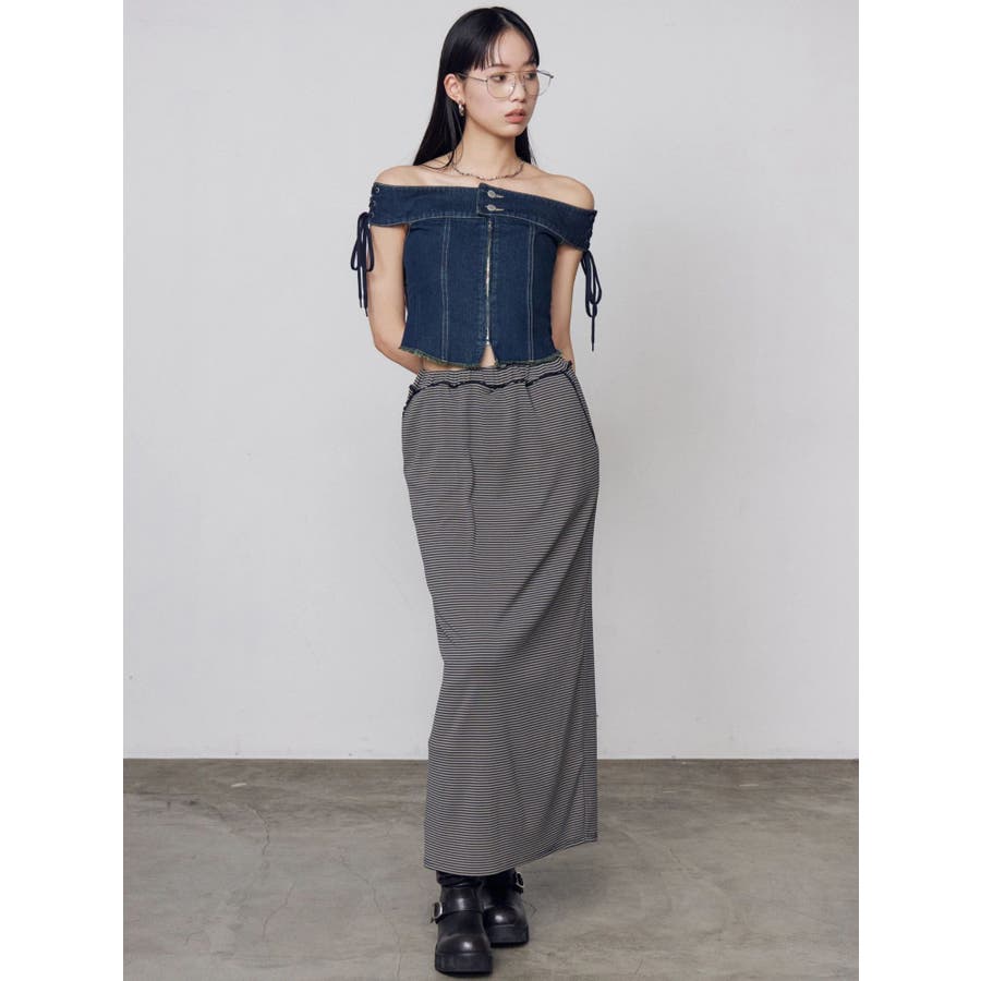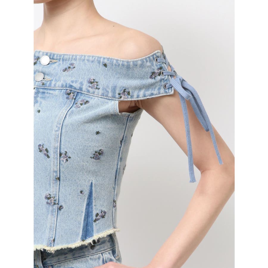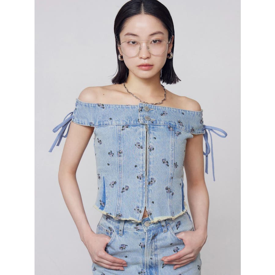 デニムオフショルダートップ