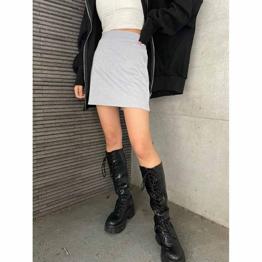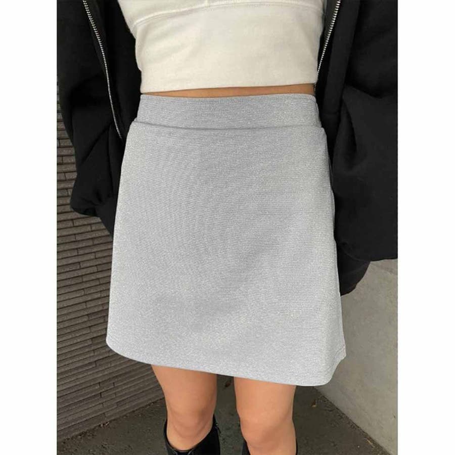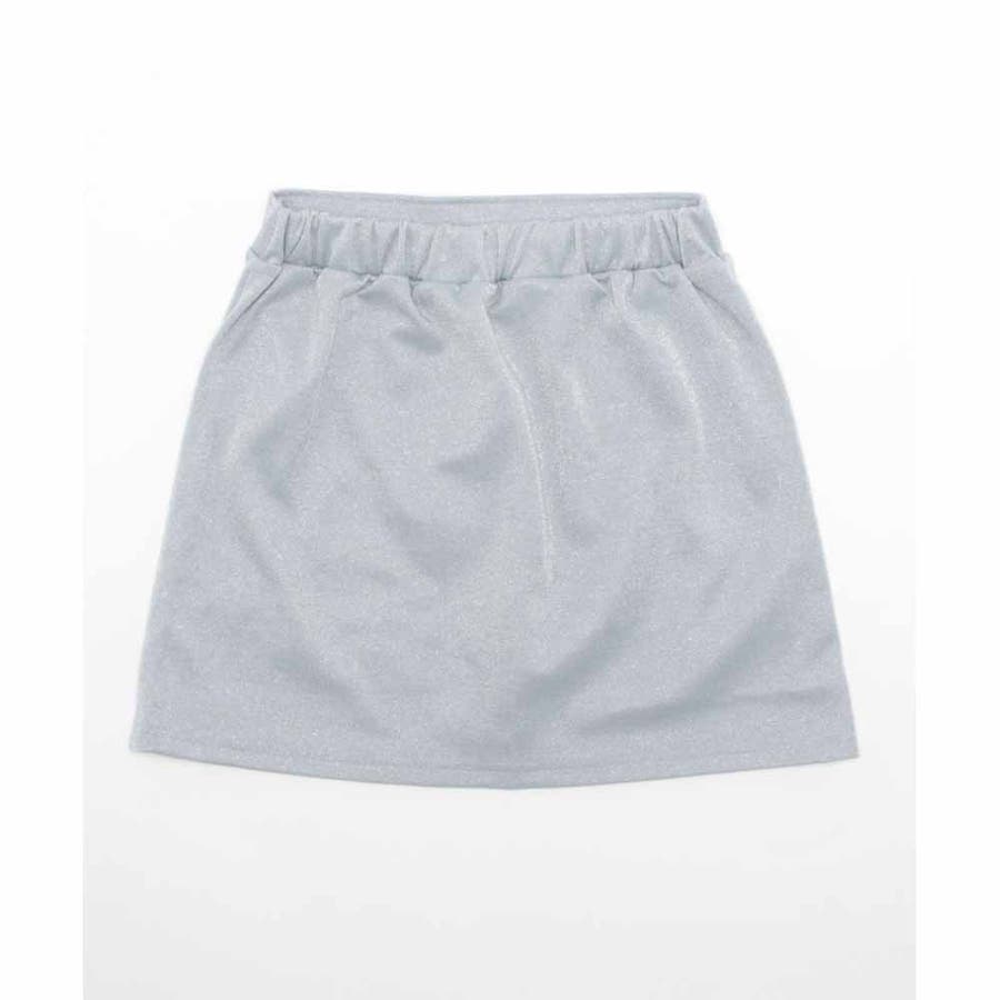 コーデに取り入れるだけで一気にトレンド感の出るラメスカート。ウエストはゴム仕様でカットソー生地なのでストレスなく履きやすいスカートです。台形シルエットなので太もも周りがスッキリ見えるのもポイント。パーカーの裾からちらっと見せるスタイリングがさりげなくアクセントになりおすすめです。