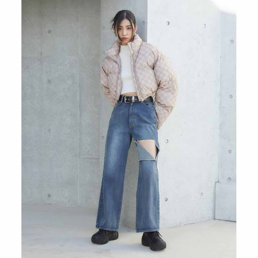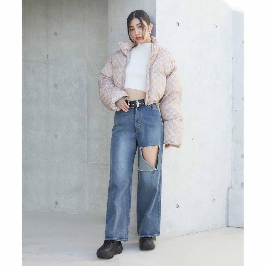 ショート丈なのでルーズデニムでカジュアルに着こなすのもgood!
