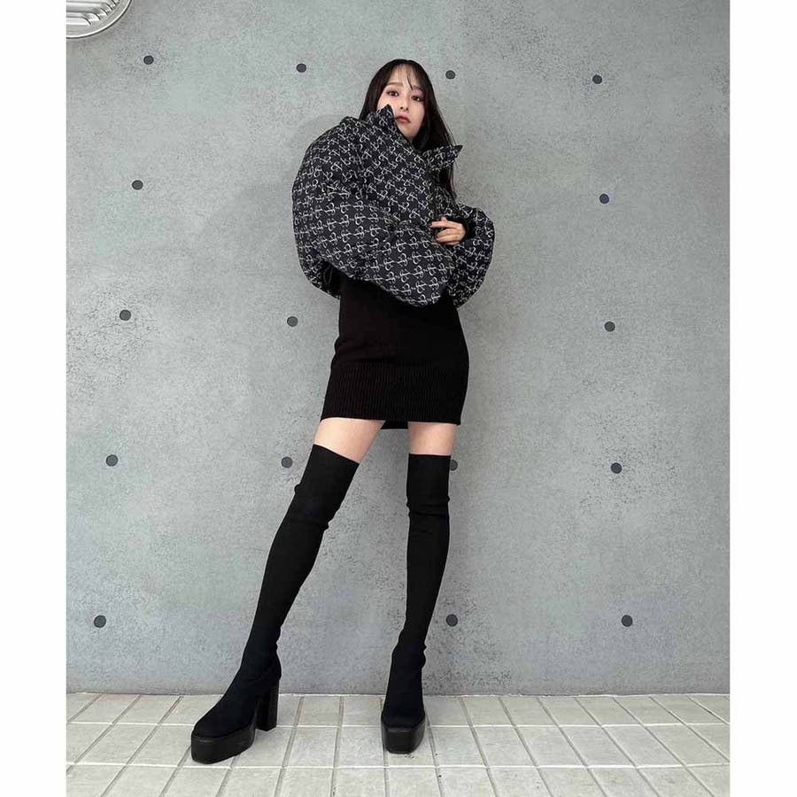 ミニボトムやタイトワンピースなどのタイトシルエットなものに合わせると