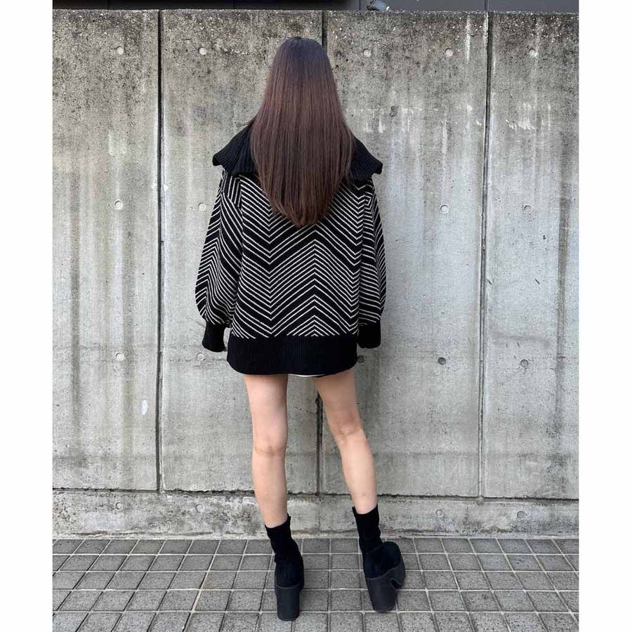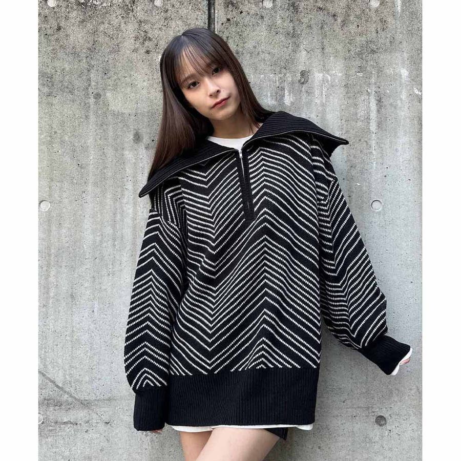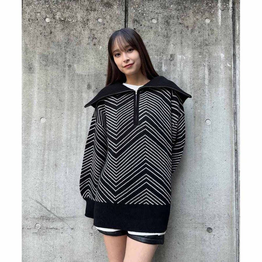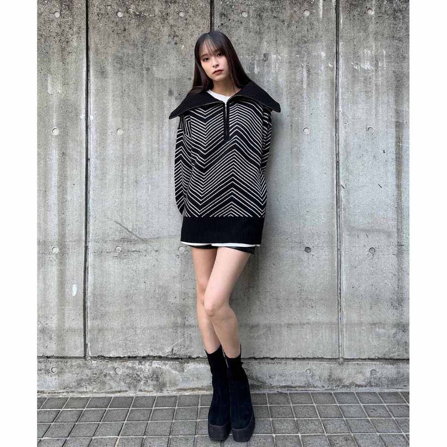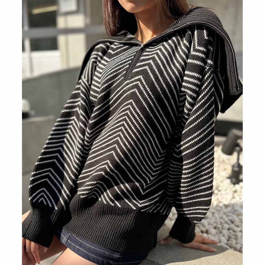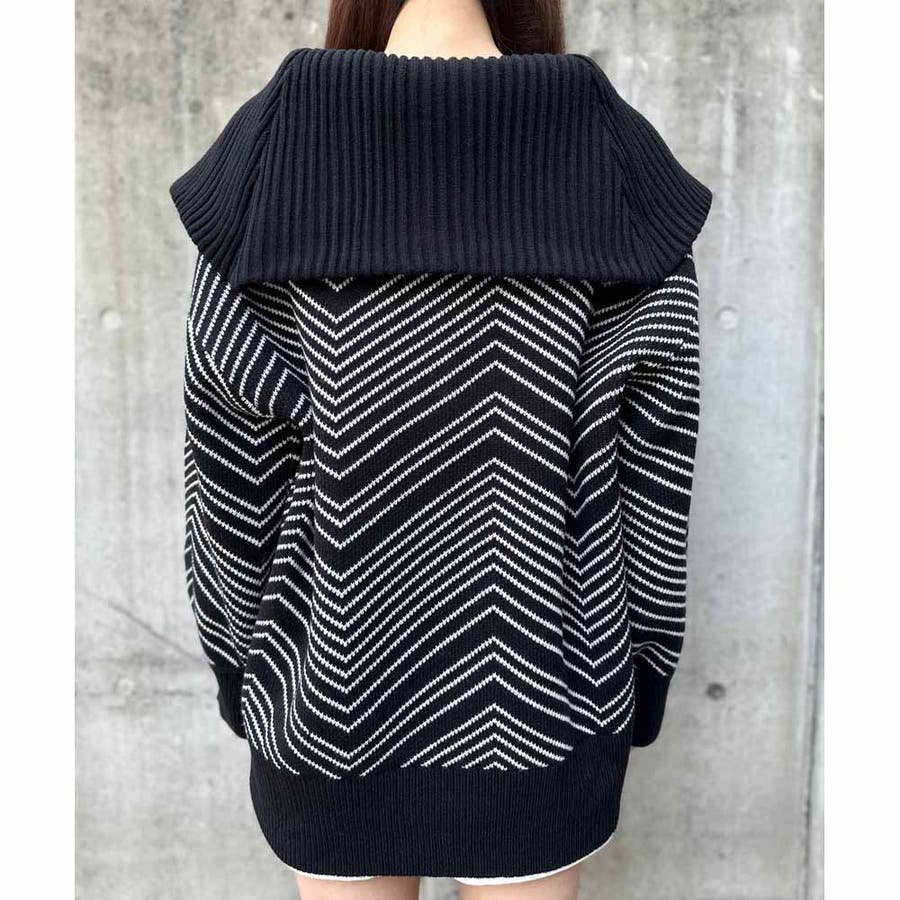 大胆なヘリンボーン柄がアクセントになるチュニック丈ニット♪