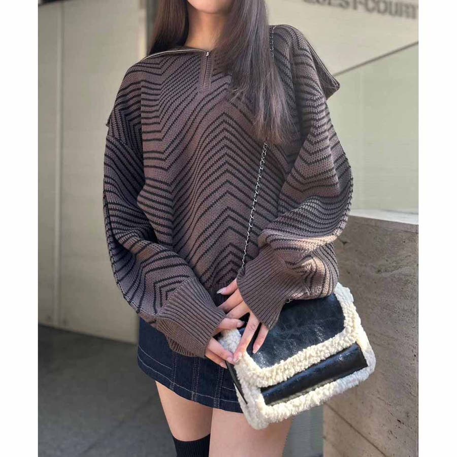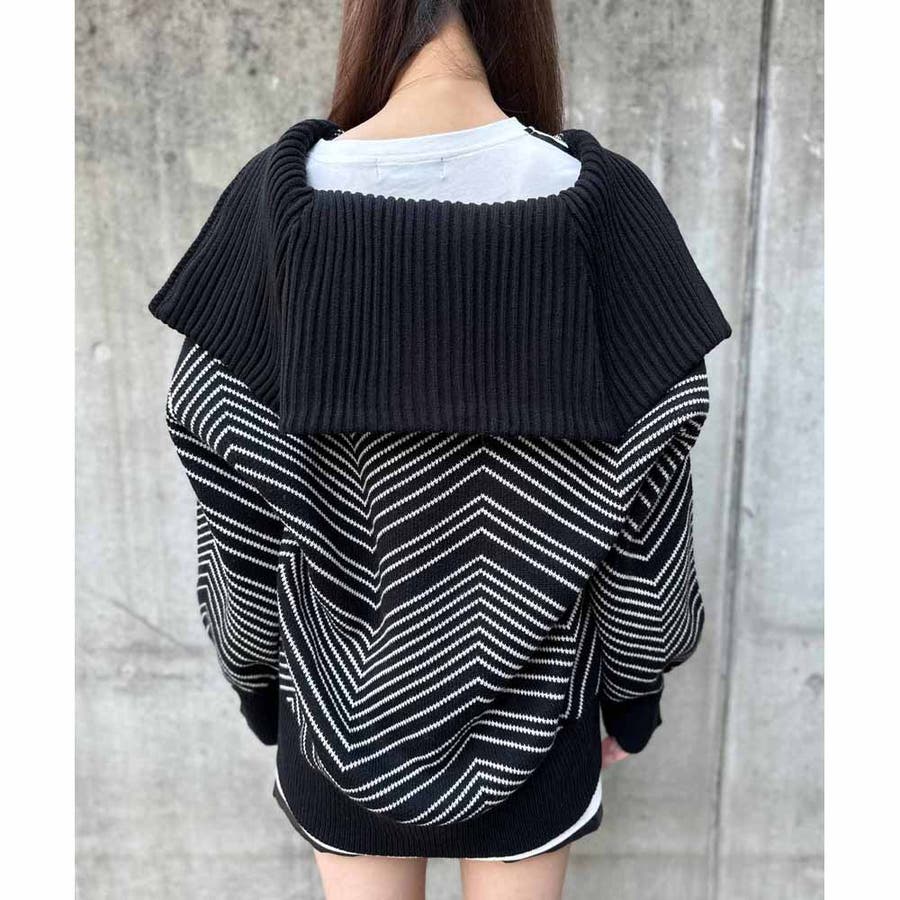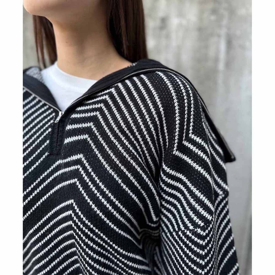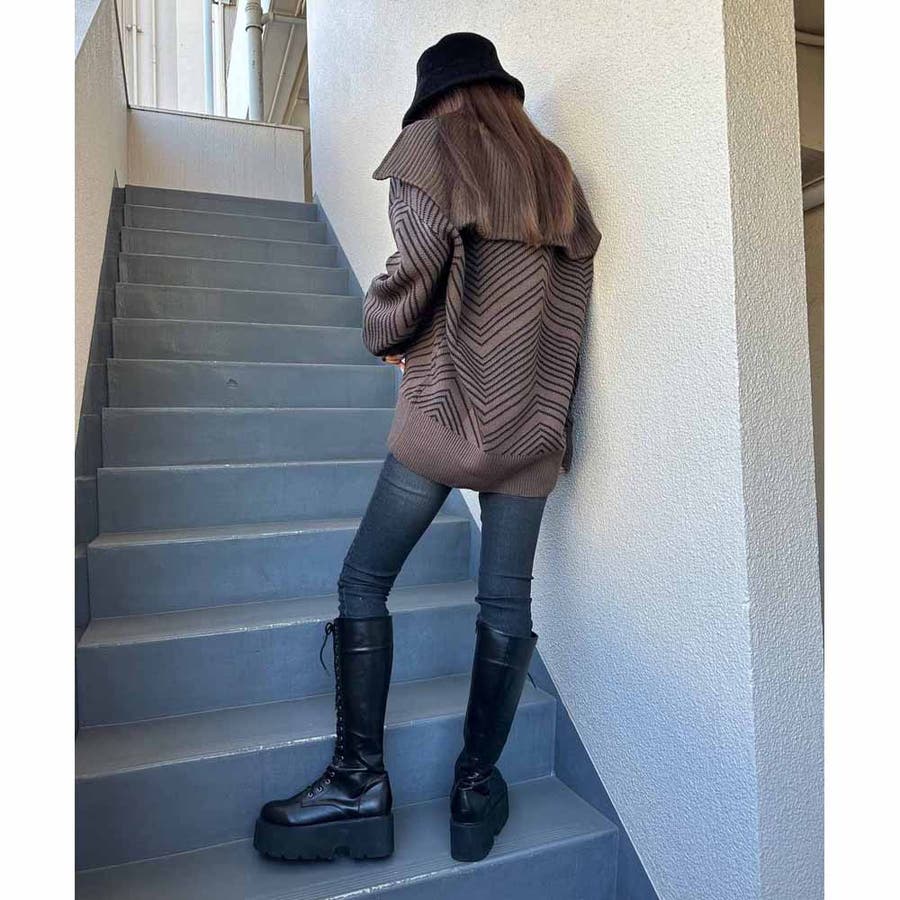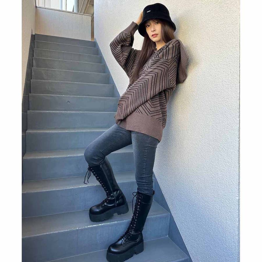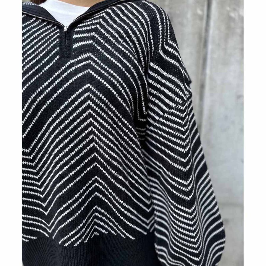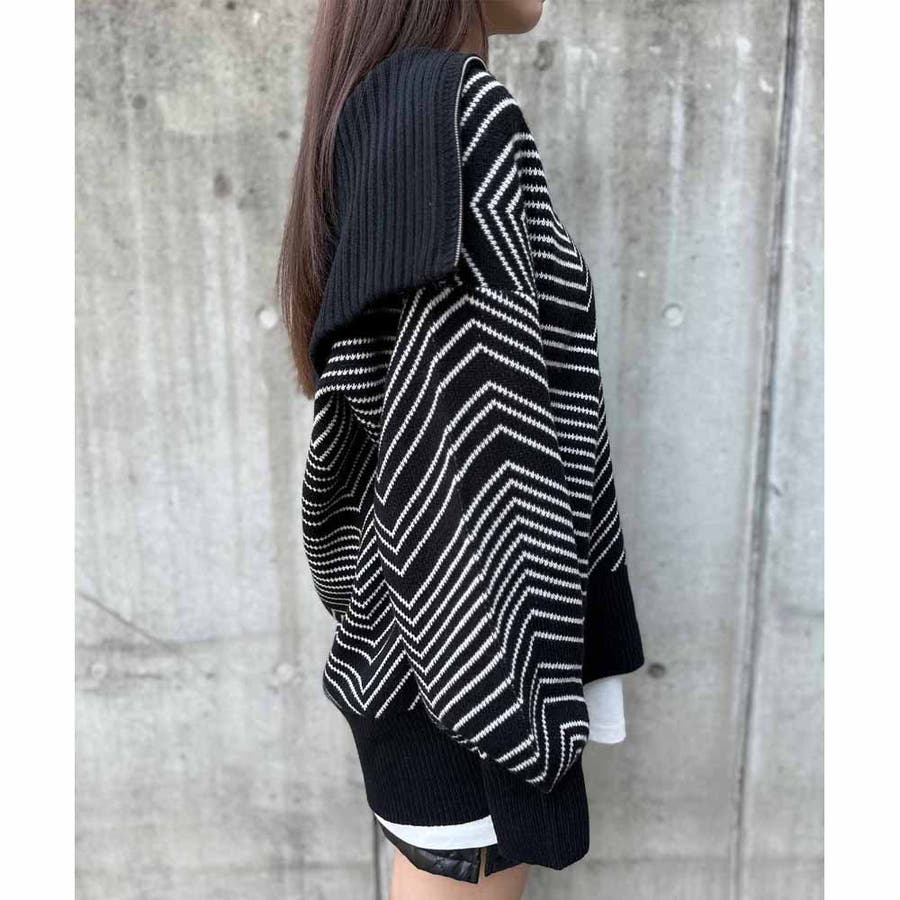 大胆なヘリンボーン柄がアクセントになるチュニック丈ニット♪