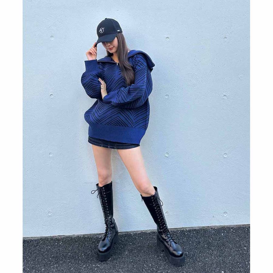 ミニボトムを合わせてワンピース風な着こなしが◎