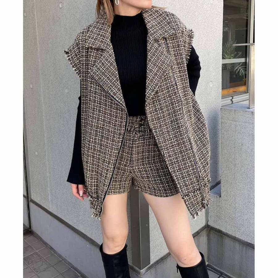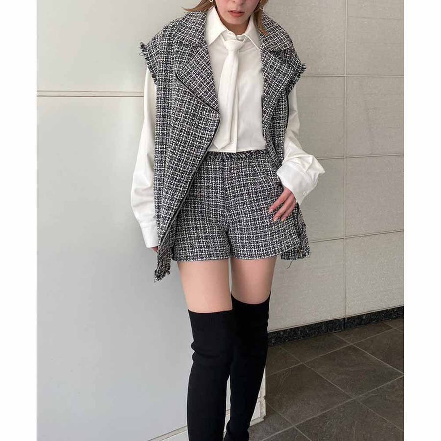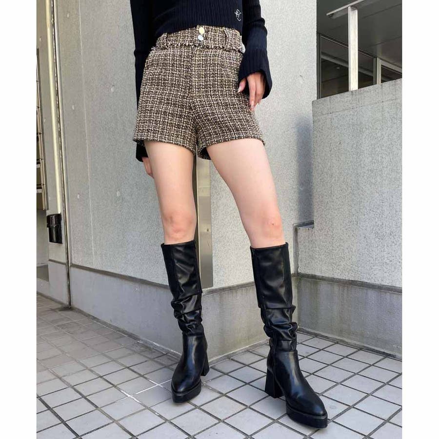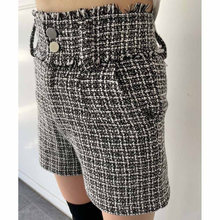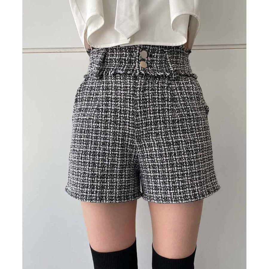 トレンドのツイード生地を使用したハイウエストショーパン!