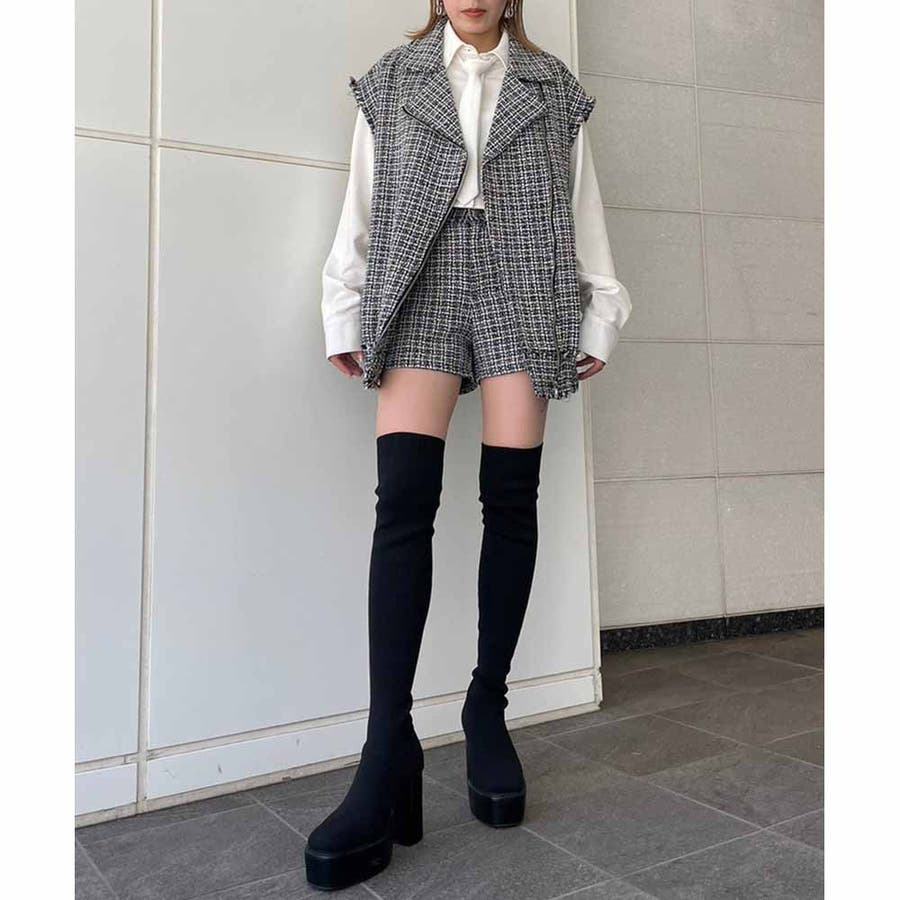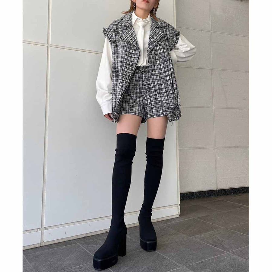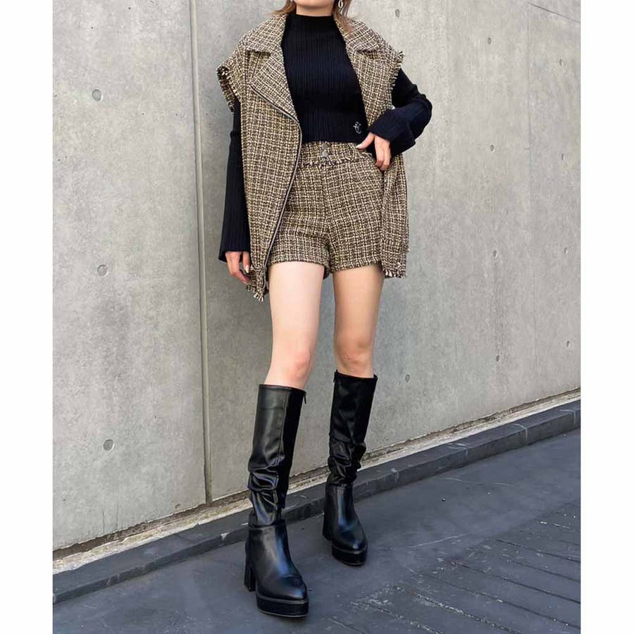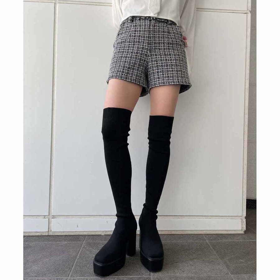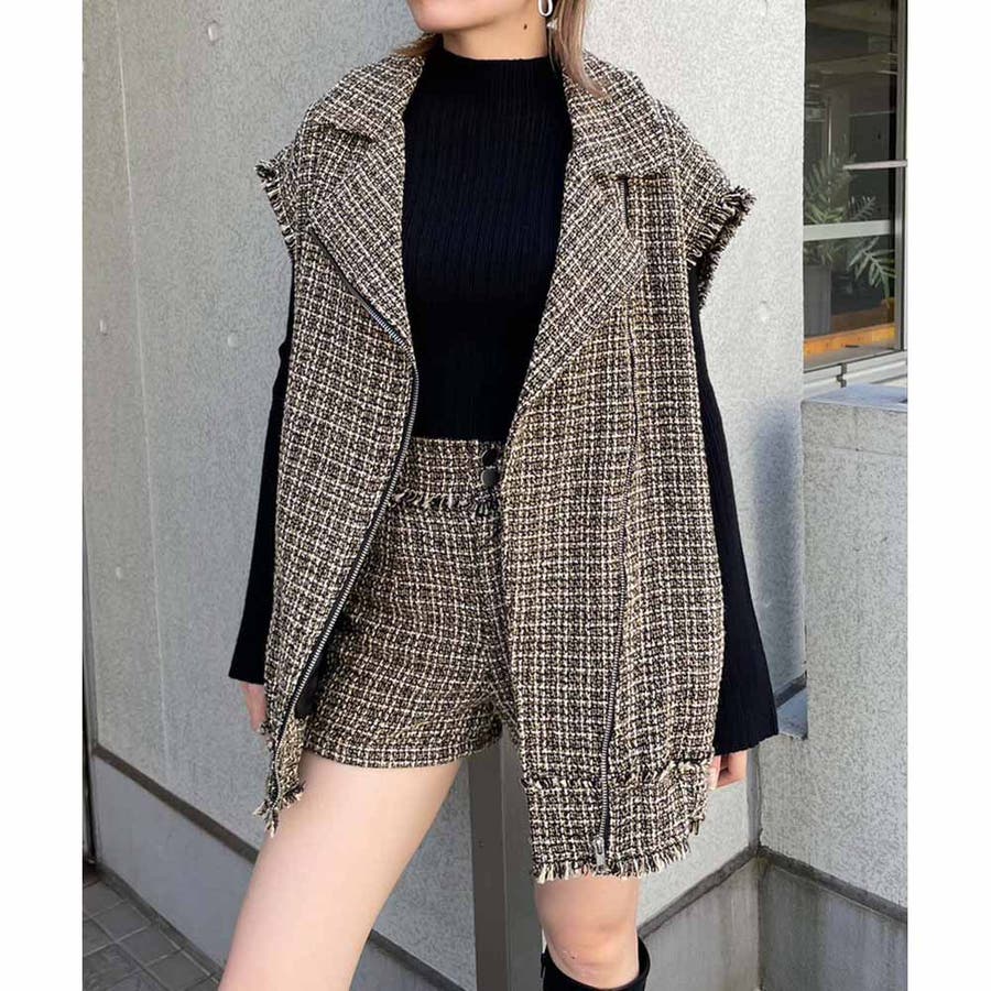 トレンドのツイード生地を使用したハイウエストショーパン!