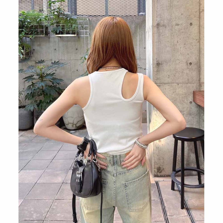 肩にカットデザインを入れたエッジの効いたアイテム。