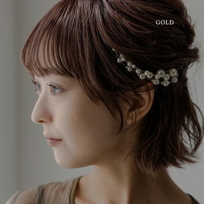小ぶりながらも、きらりと光るパールが、ヘアスタイルにさりげない華やかさをプラス。