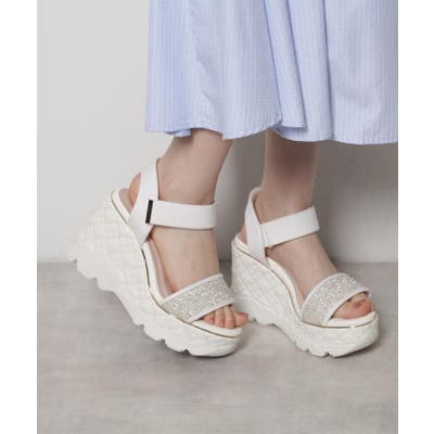 ヒールにぷっくりとしたキルティングを使用しアッパーのグリッターラメはキラキラ過ぎないので上品な大人フェミニンな印象に!