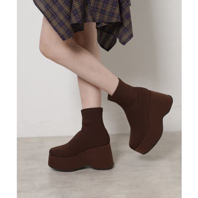 スタイルぐんっとアップ!厚底ニットショートブーツ