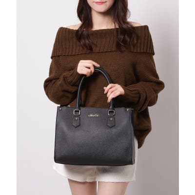 3層仕様の仕切りポケットとなったゴールドの金具プレートがワンポイントのシンプルトートバッグです