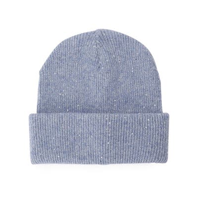 小さなスパンコールが散りばめられた、ラメ入り糸を使用したニット帽。