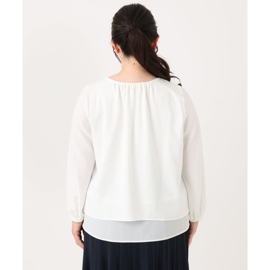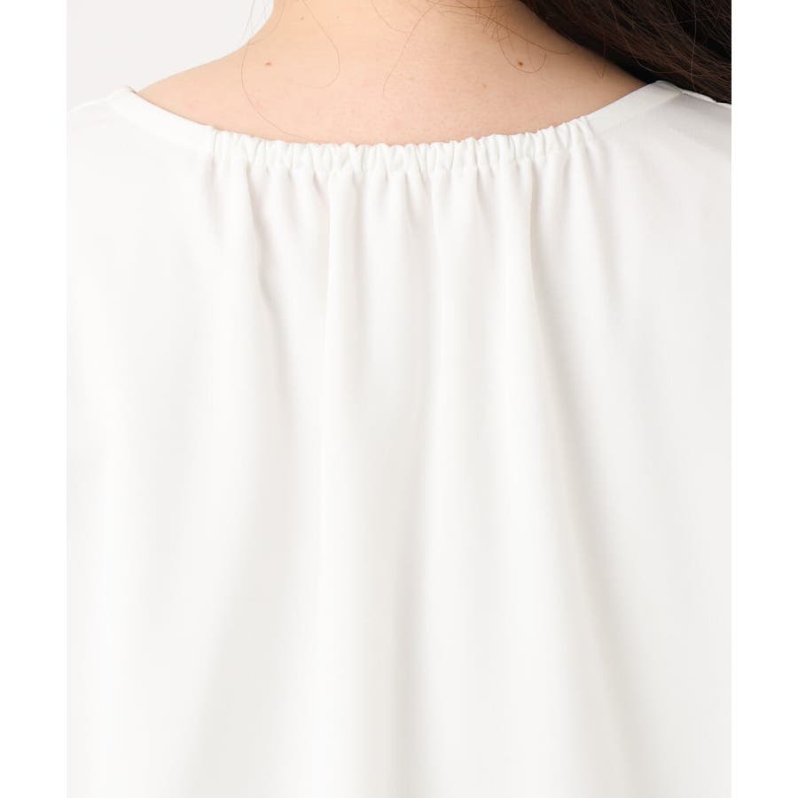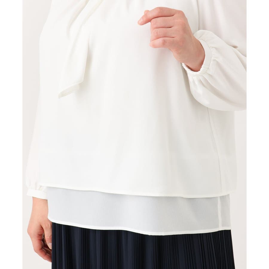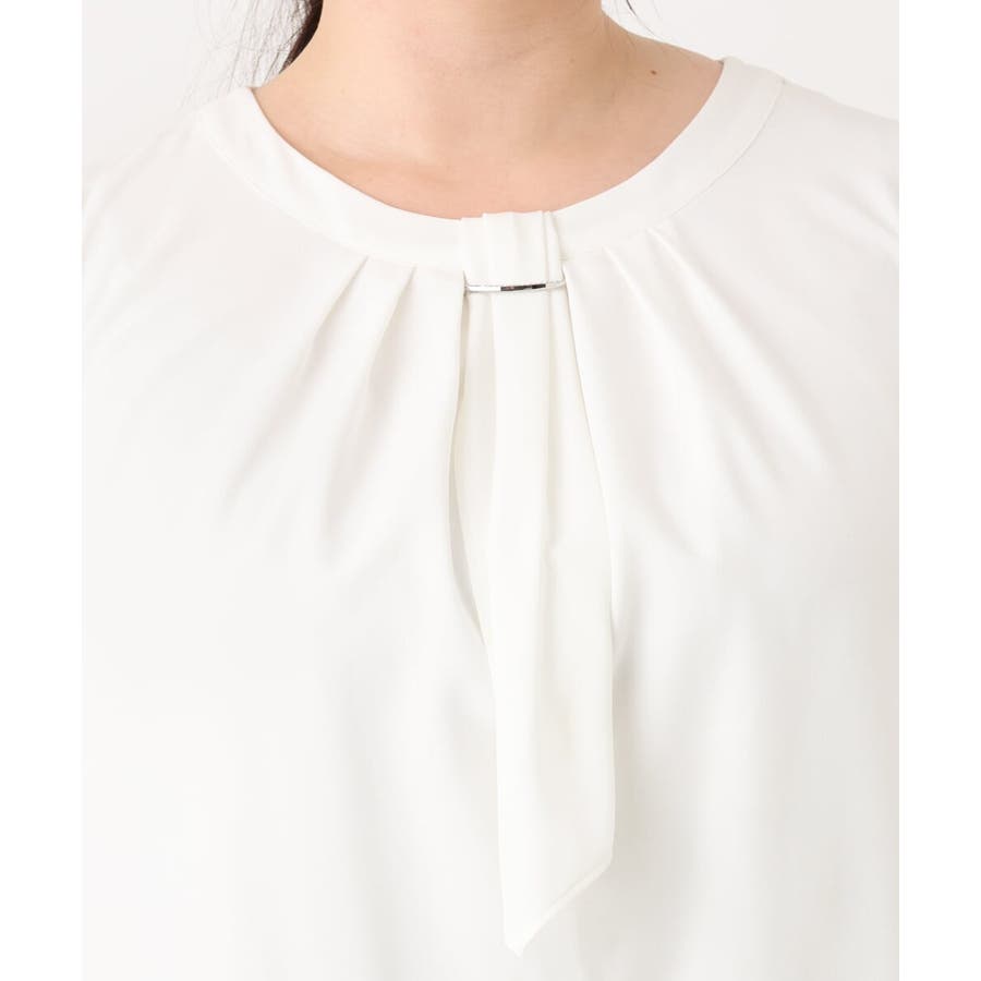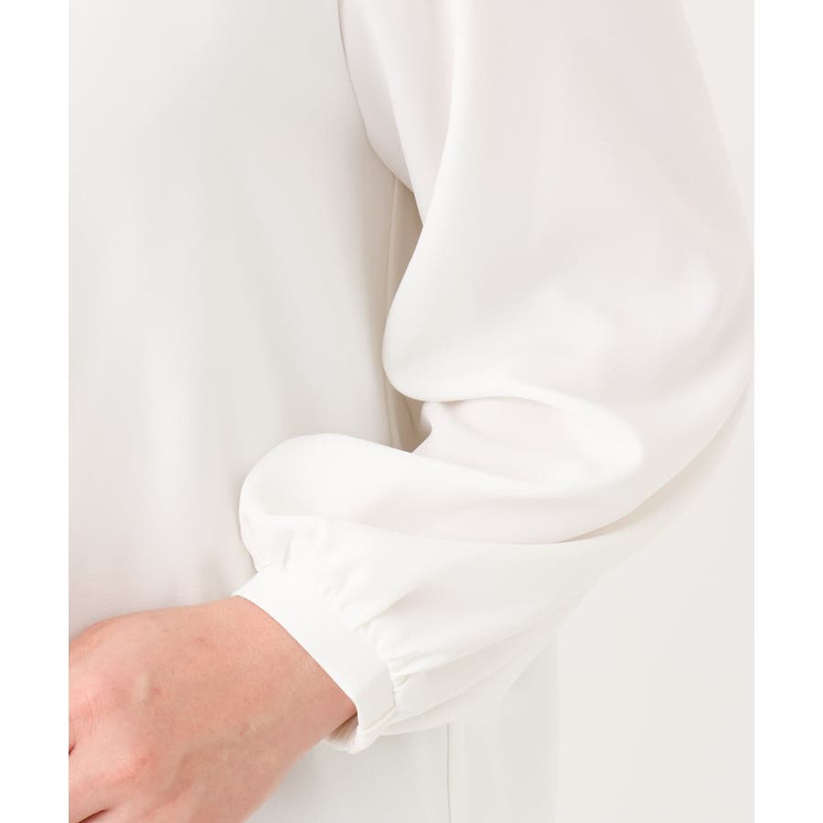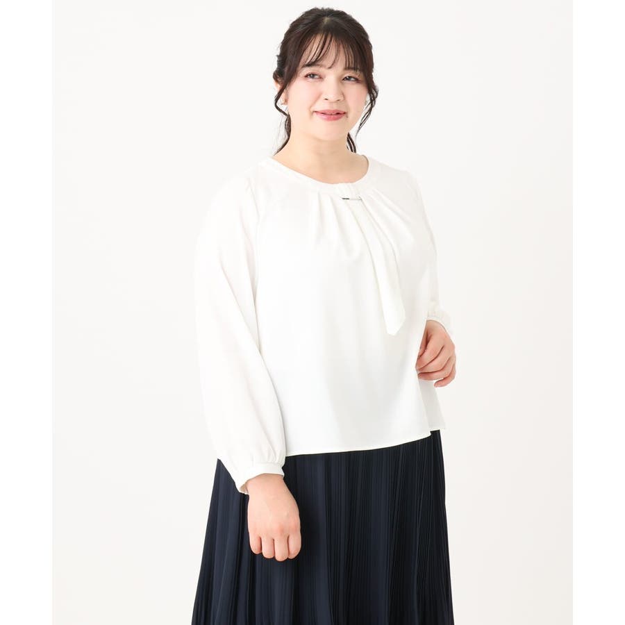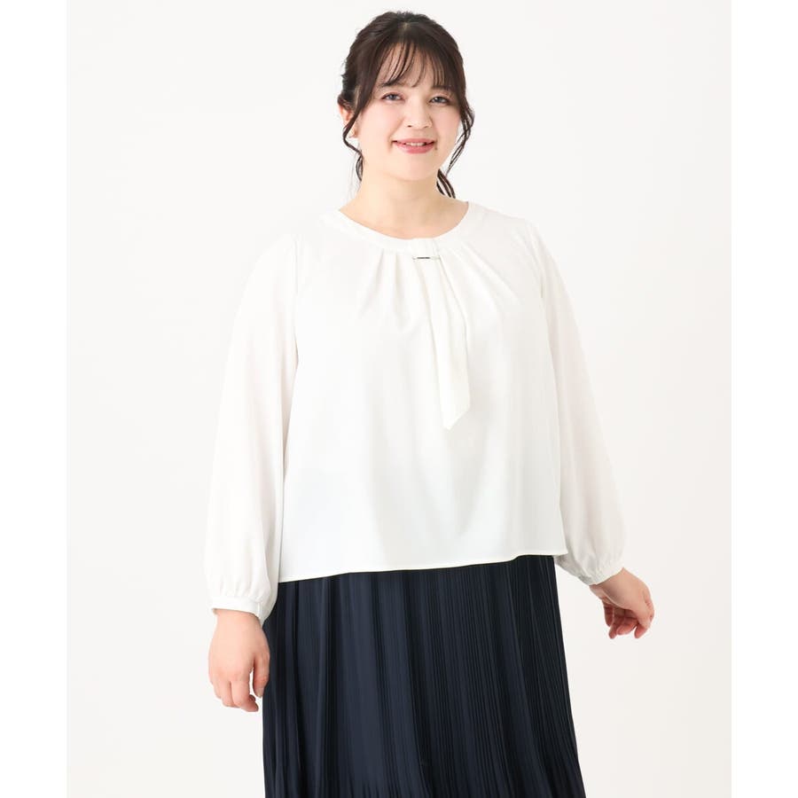 ボウタイ風のネックが胸元をすっきり見せるブラウス。