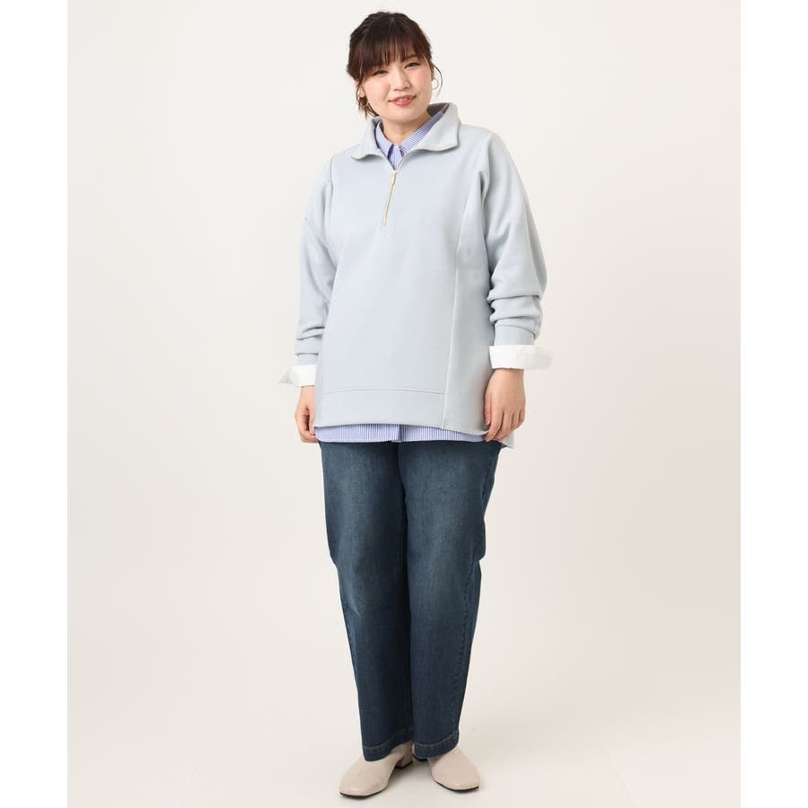 スカート、パンツどちらにも合わせやすく、程よい着丈はさり気なく腰回りもカバーします。
