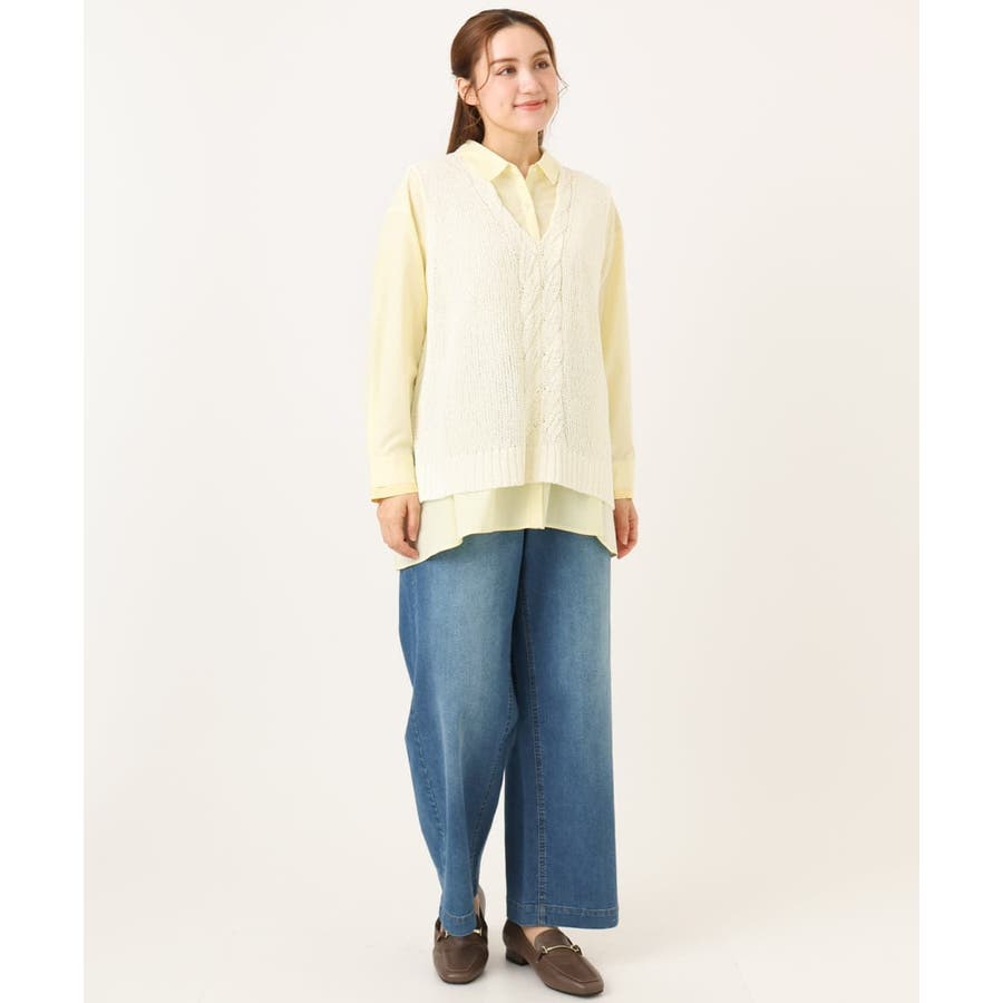 テープヤーンニットベスト(品番OLFCD02089)を合わせたスタイリングがおすすめ。