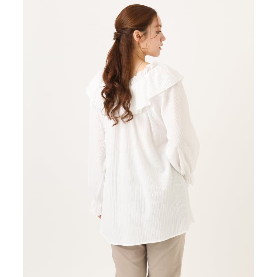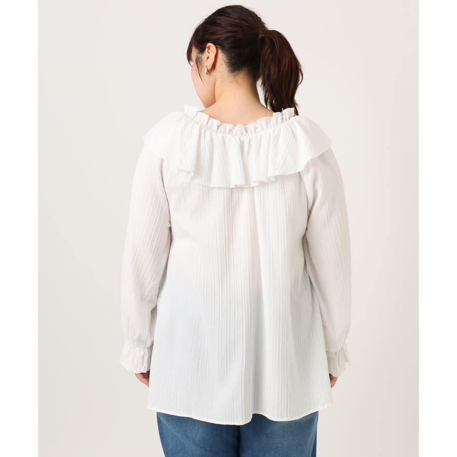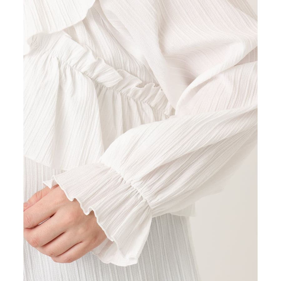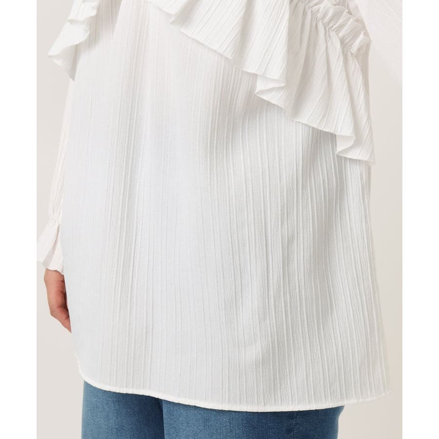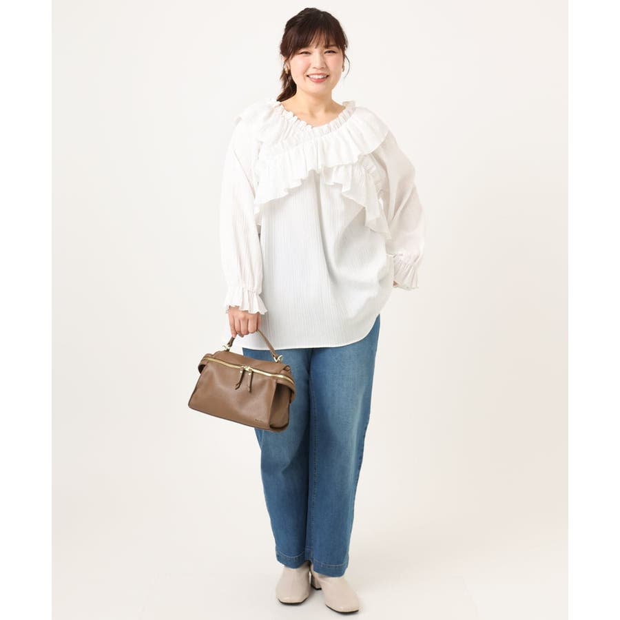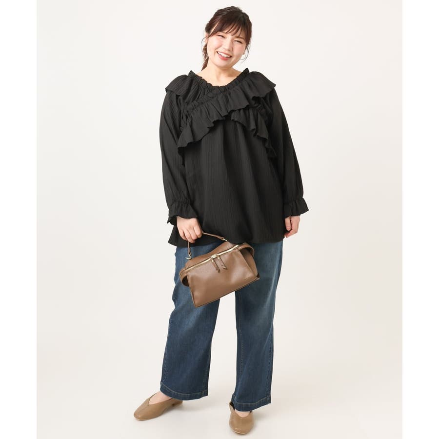 程よいボリューム感のフリルがフェミニンな印象のフリルブラウス。