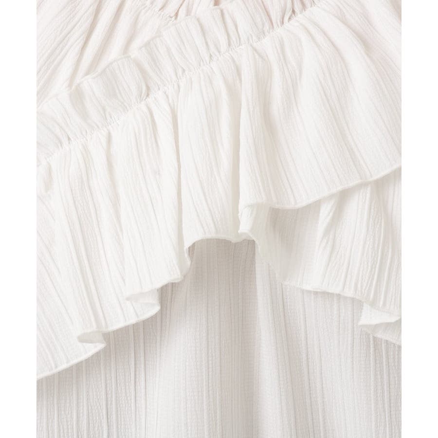 フリル部分はゴムギャザー仕様のため、トレンド感のある片側オフショルダーとしても着用可能です。