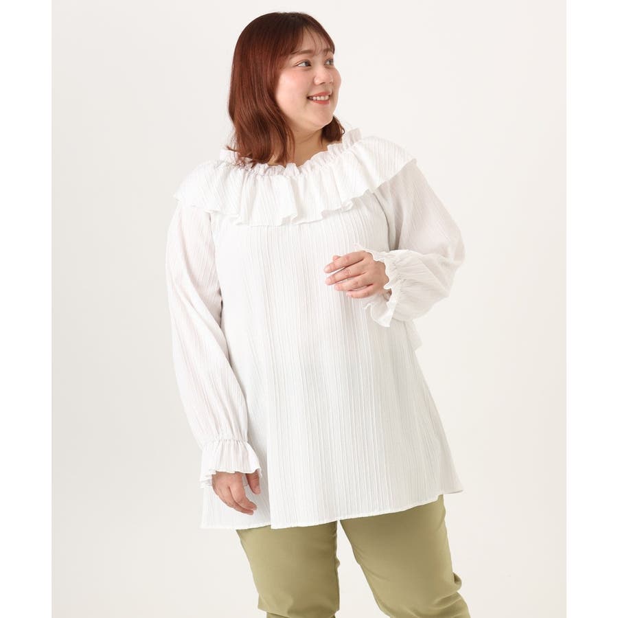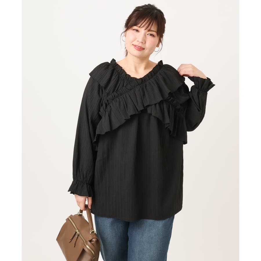 【大きいサイズ】2WAYフリルギャザーブラウス