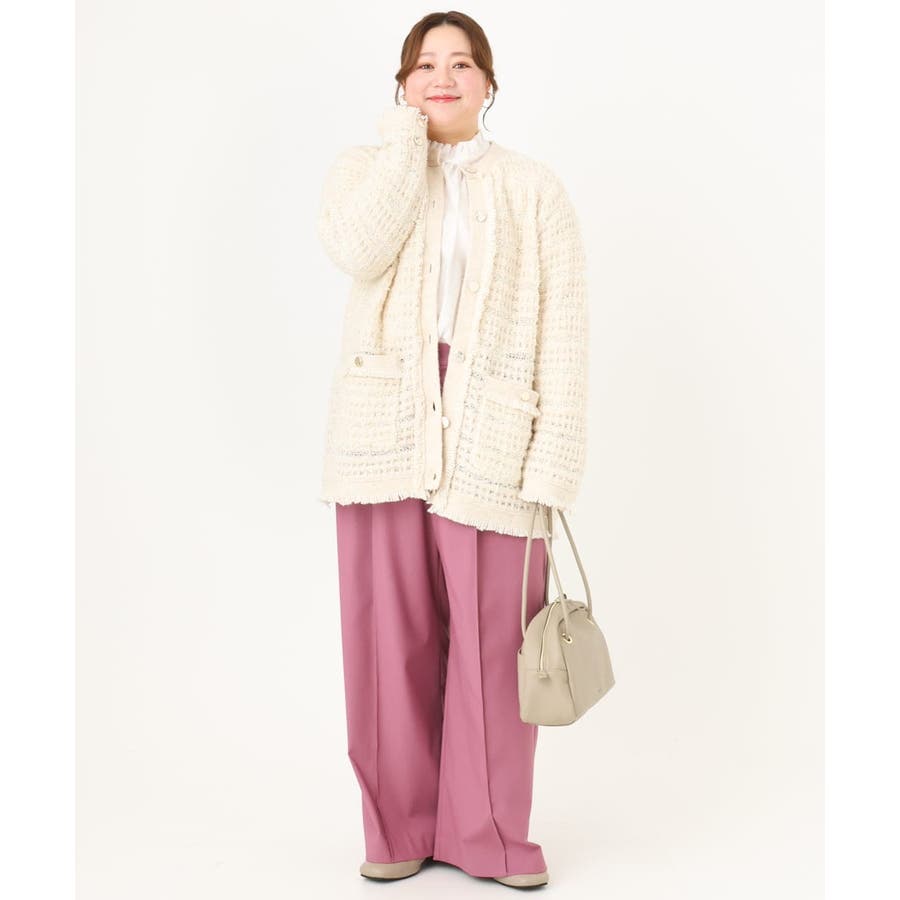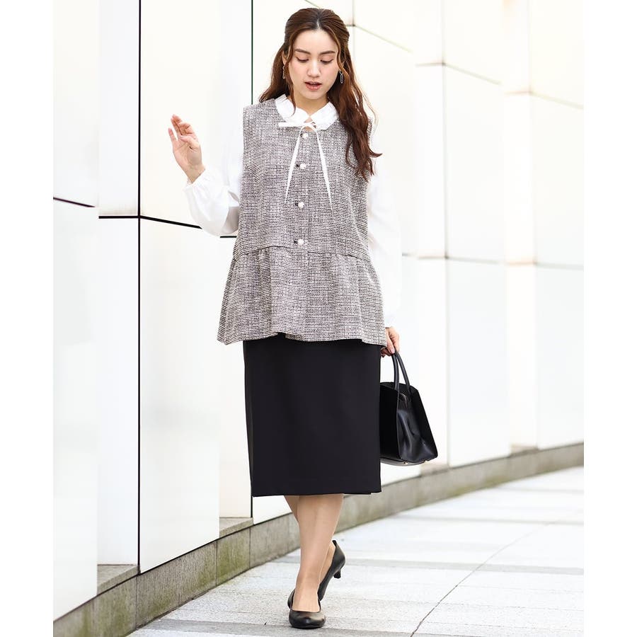 ツィードベストと合わせて大人フェミニンで華やかなスタイルがイチオシ。