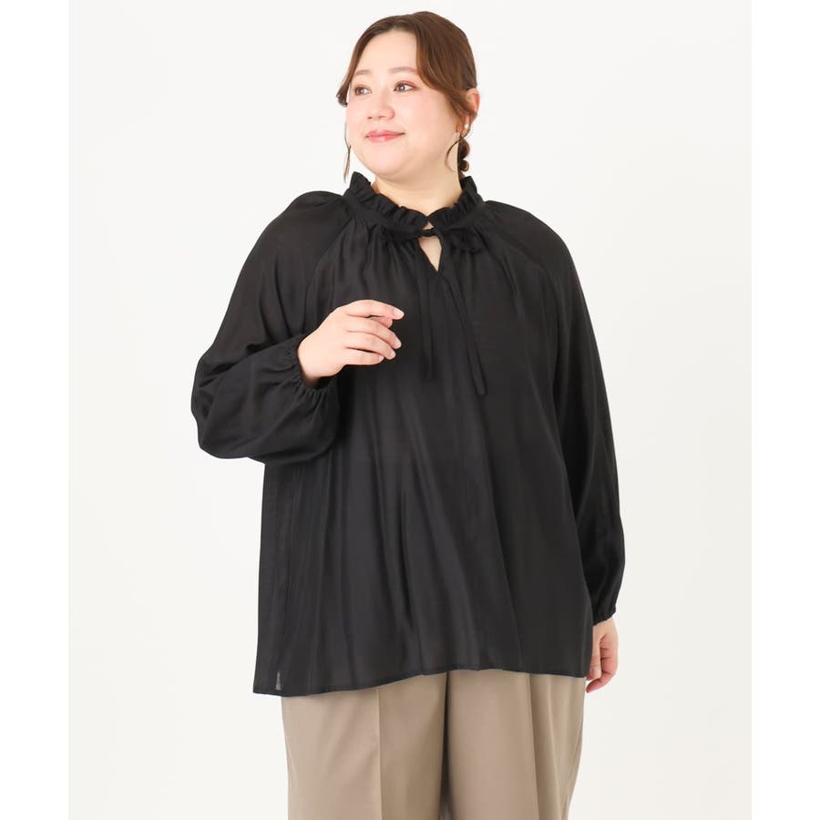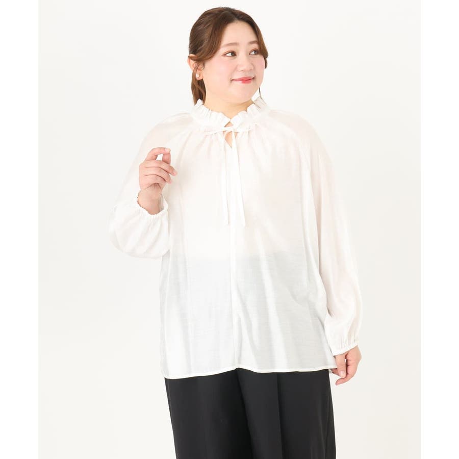 【大きいサイズ/11号サイズあり】フリルリボンブラウス