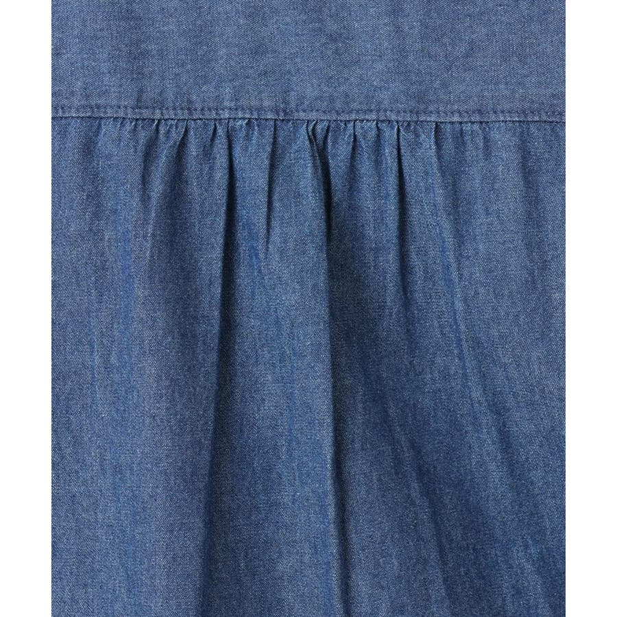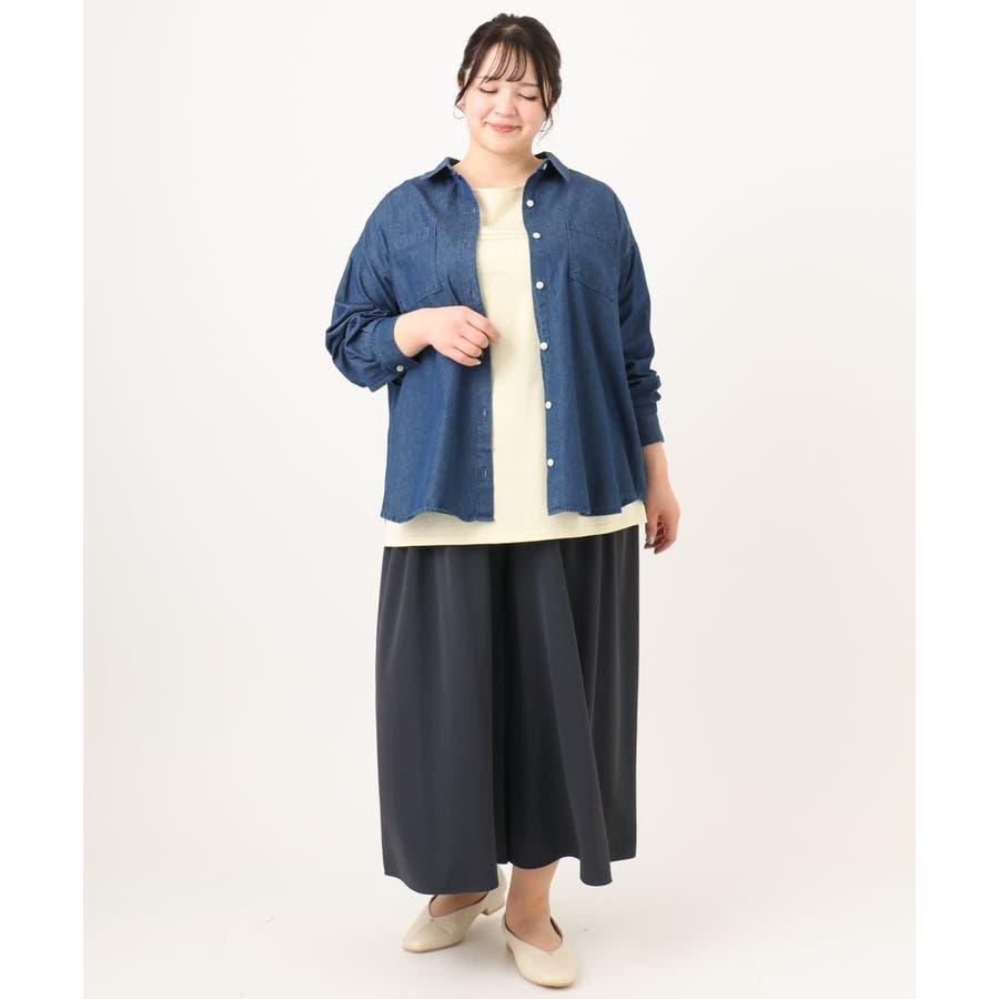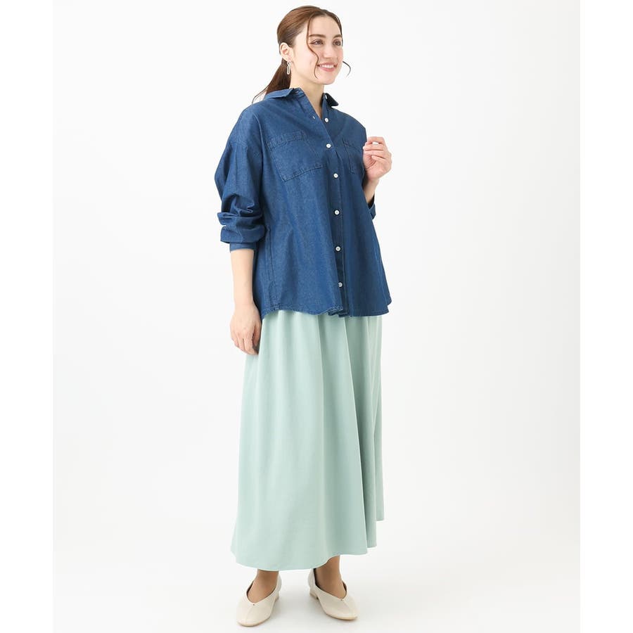 軽やかなデニム生地なのでニットやジャージトップスとのレイヤードもおすすめ。