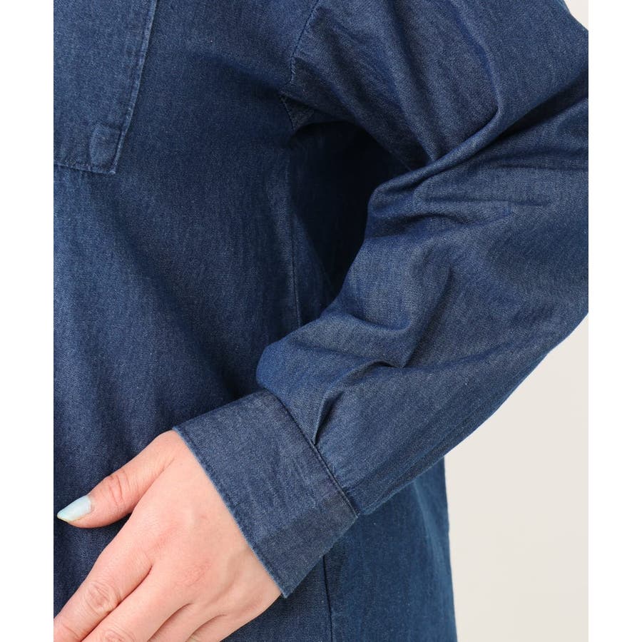 羽織としても使える、ヒップにかかる安心丈のベーシックな前開きシャツ。