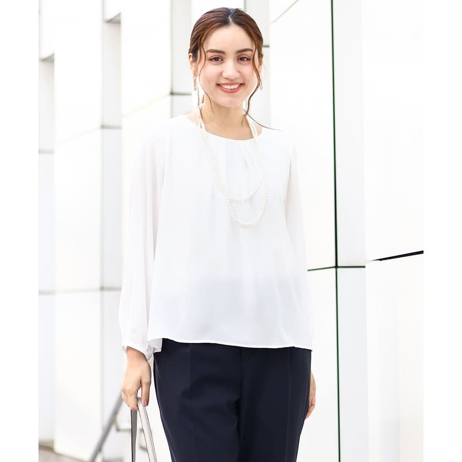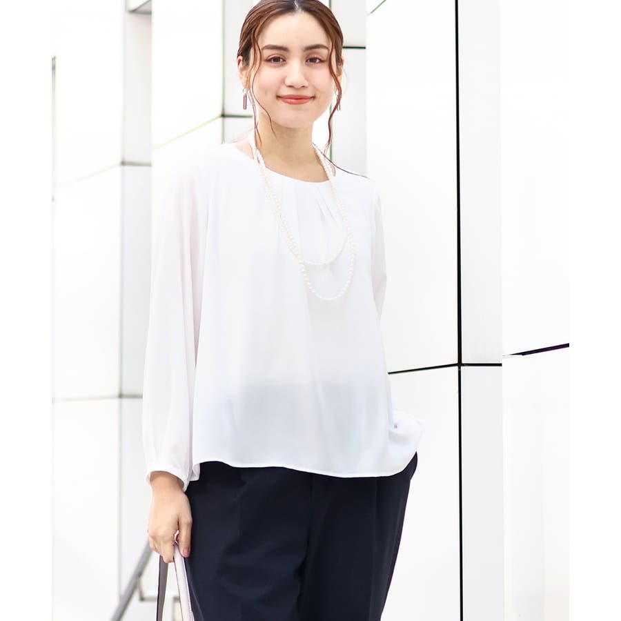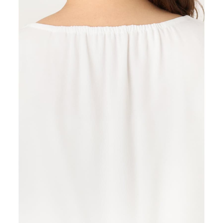 さりげなく胸元にはタックを入れているのでジャケットのインナーに入れてもきれいに着られます。