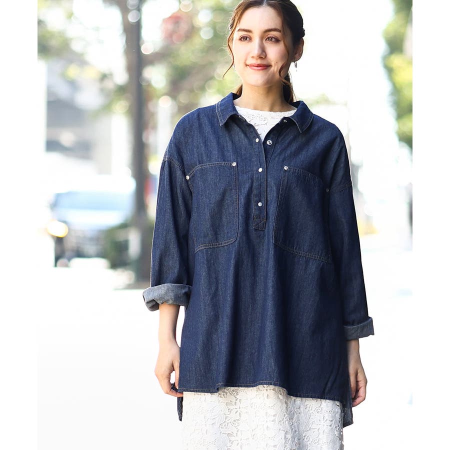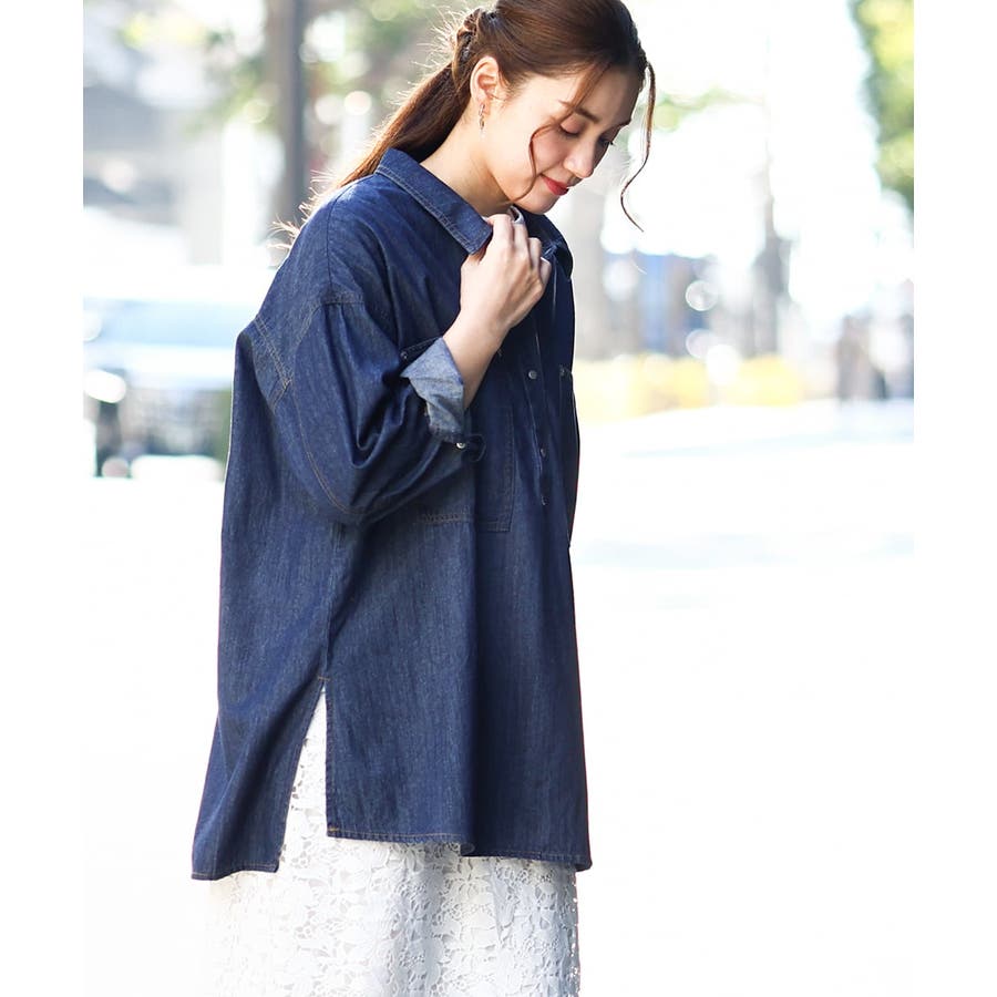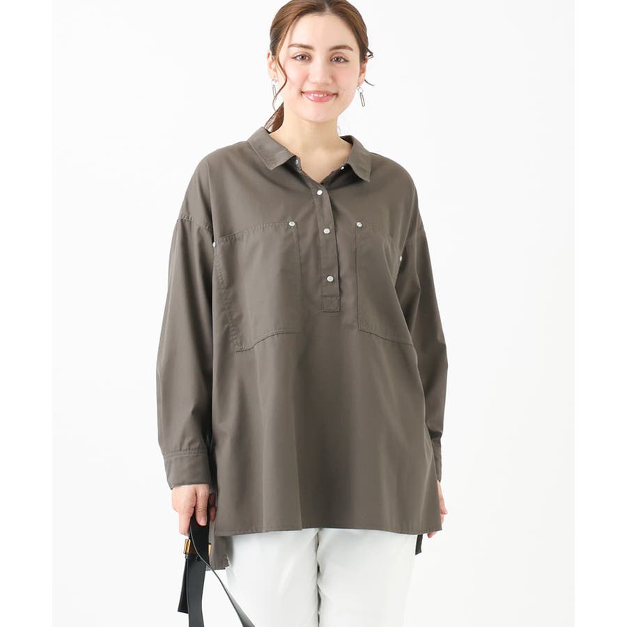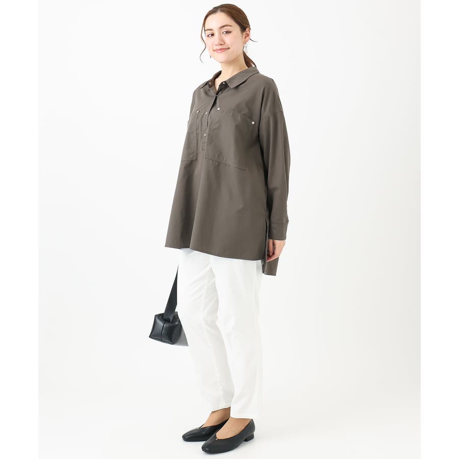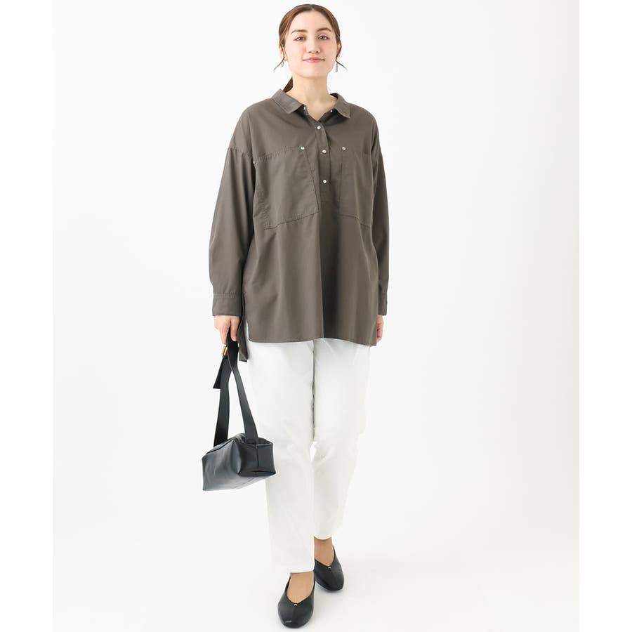 後ろ着丈が長めでお尻をカバーできるのでパンツ合わせのスタイリングでも安心です。