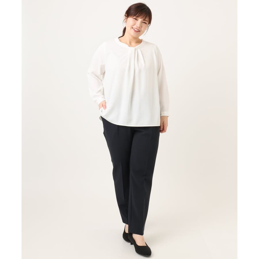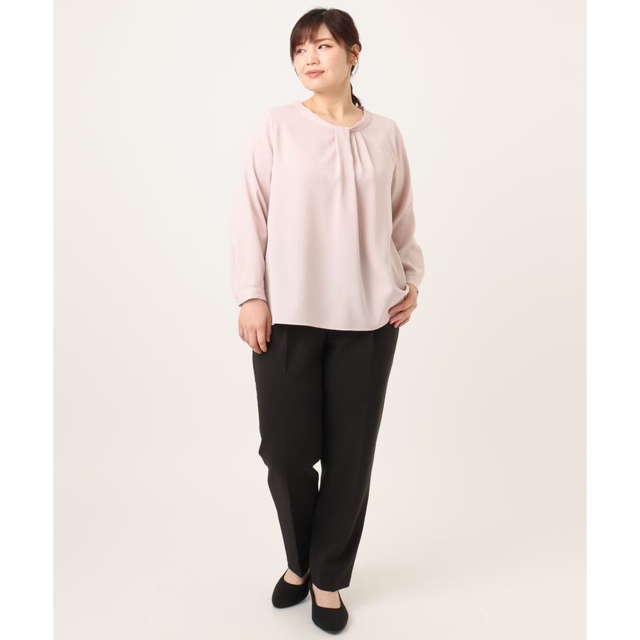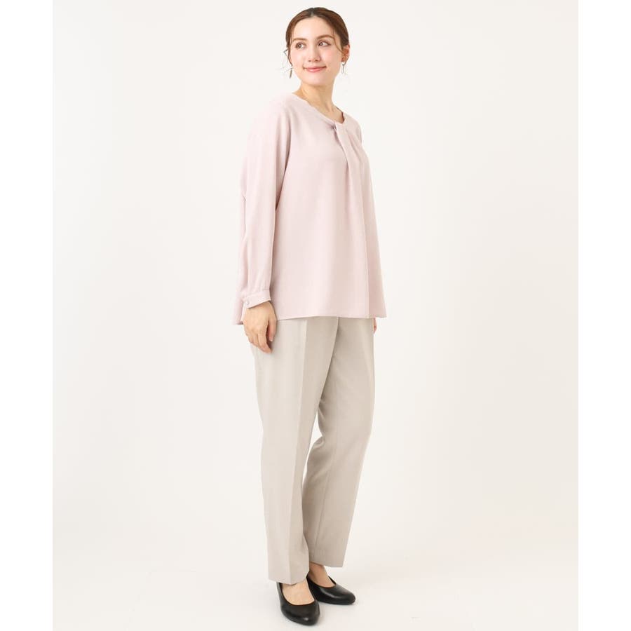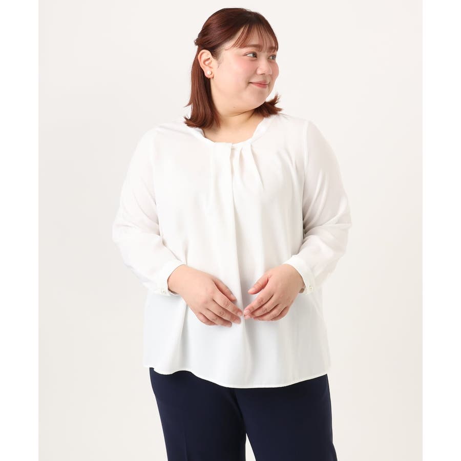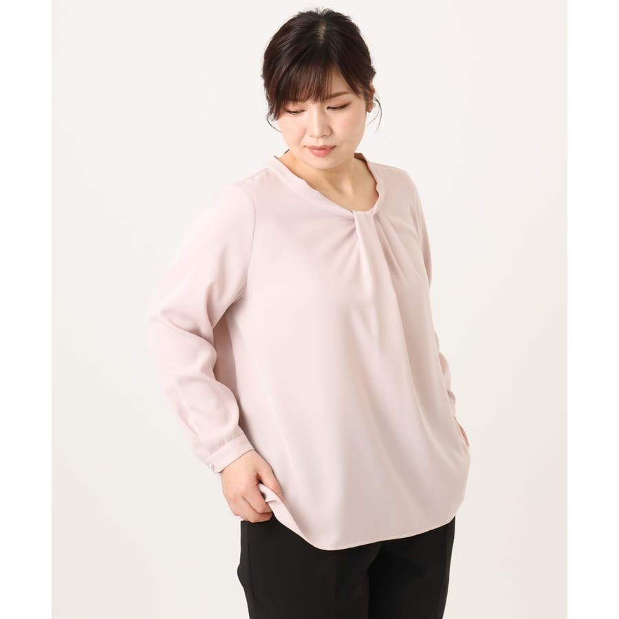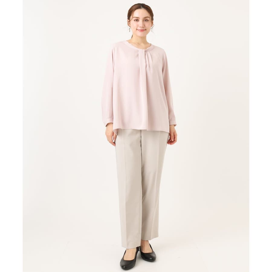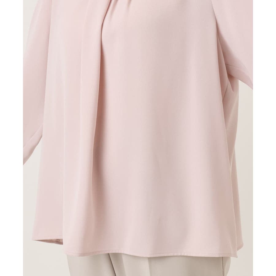 首元をすっきり見せる洗練された印象の上品なブラウスです。