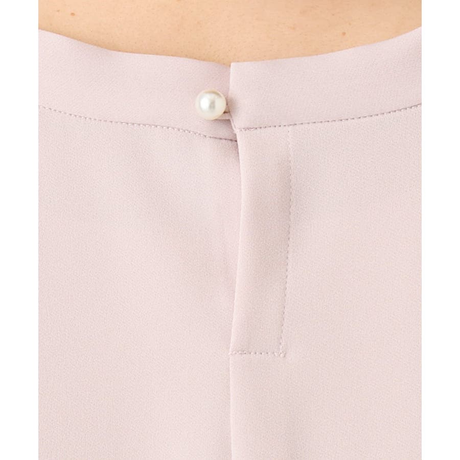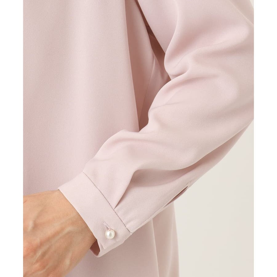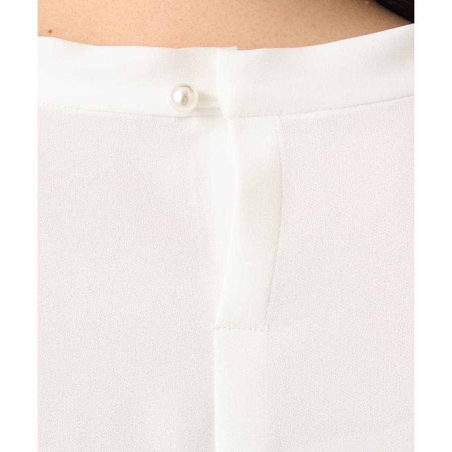 後ろ襟ぐりと袖口のパール風ボタンも華やかさをプラスするポイントに。
