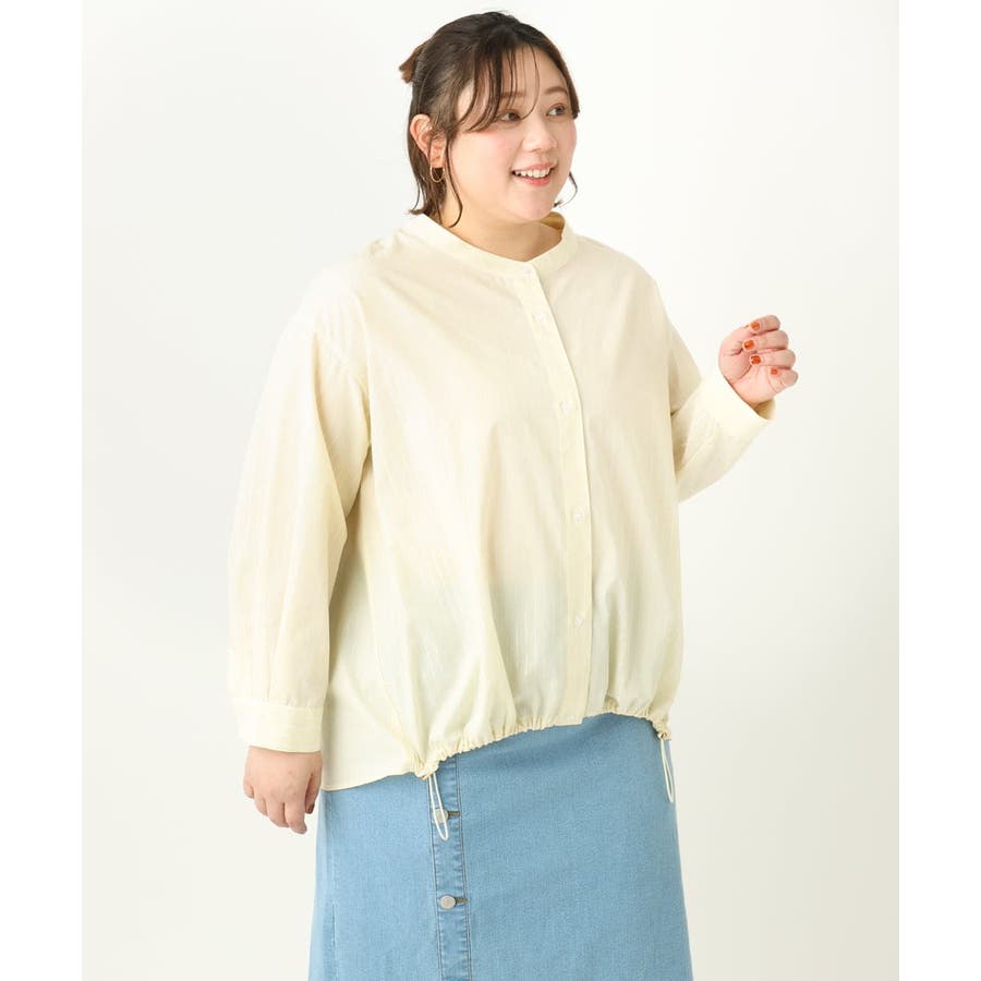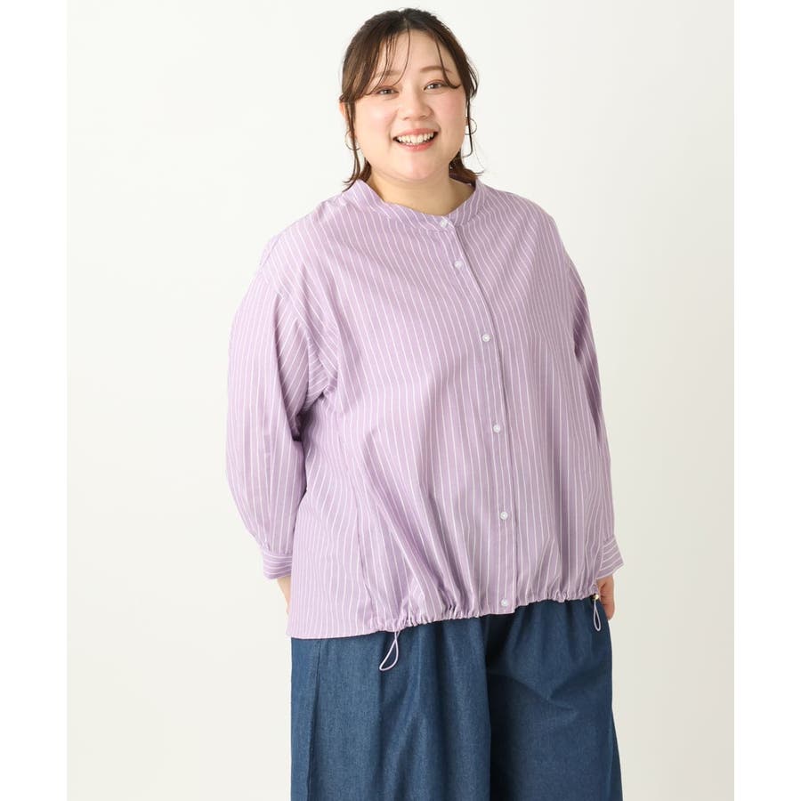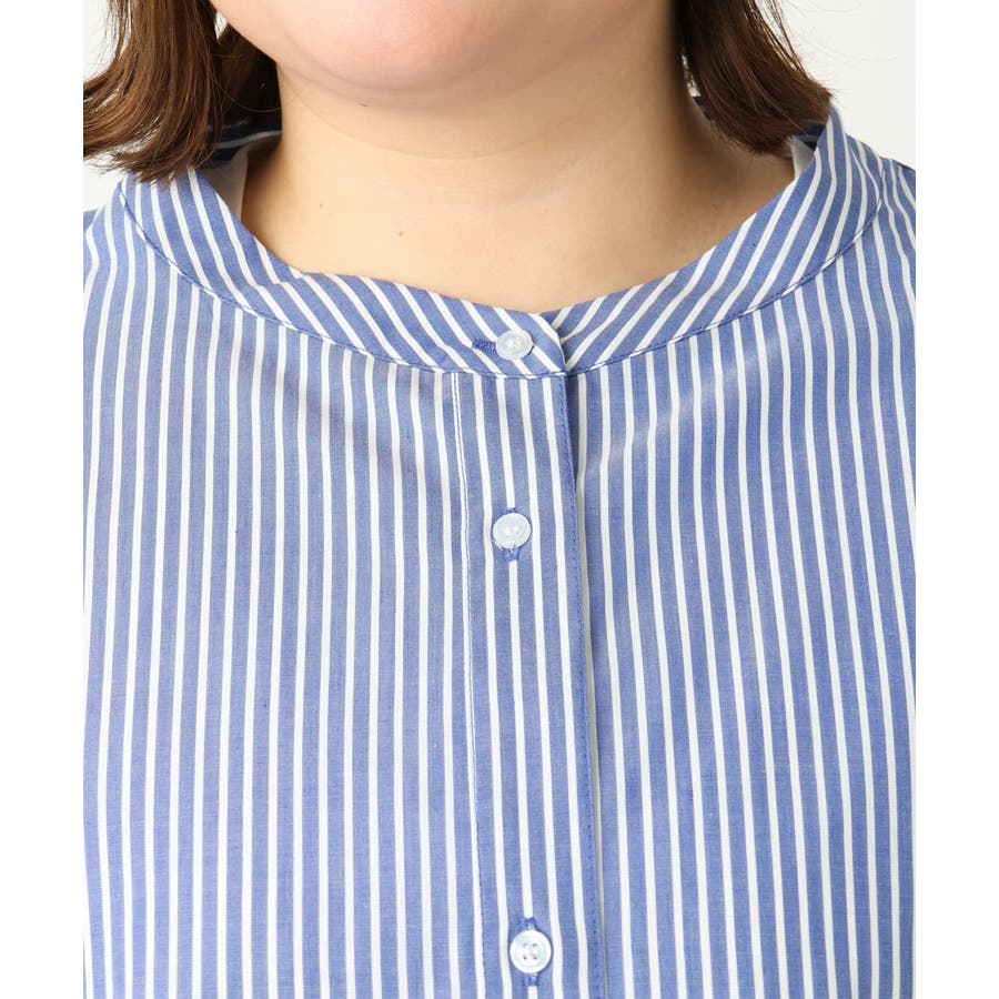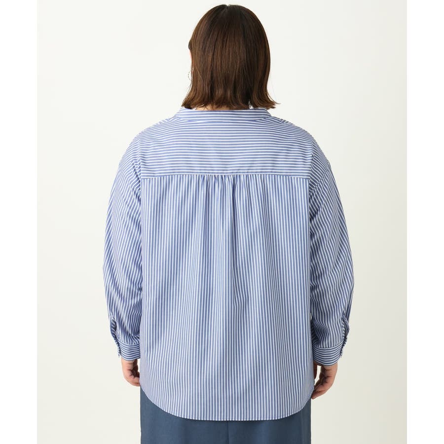 【大きいサイズ】バンドカラーラメストライプシャツ