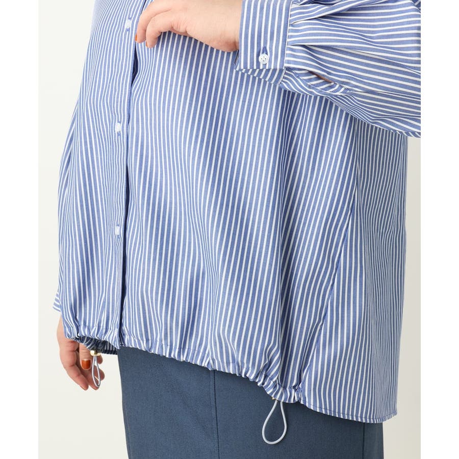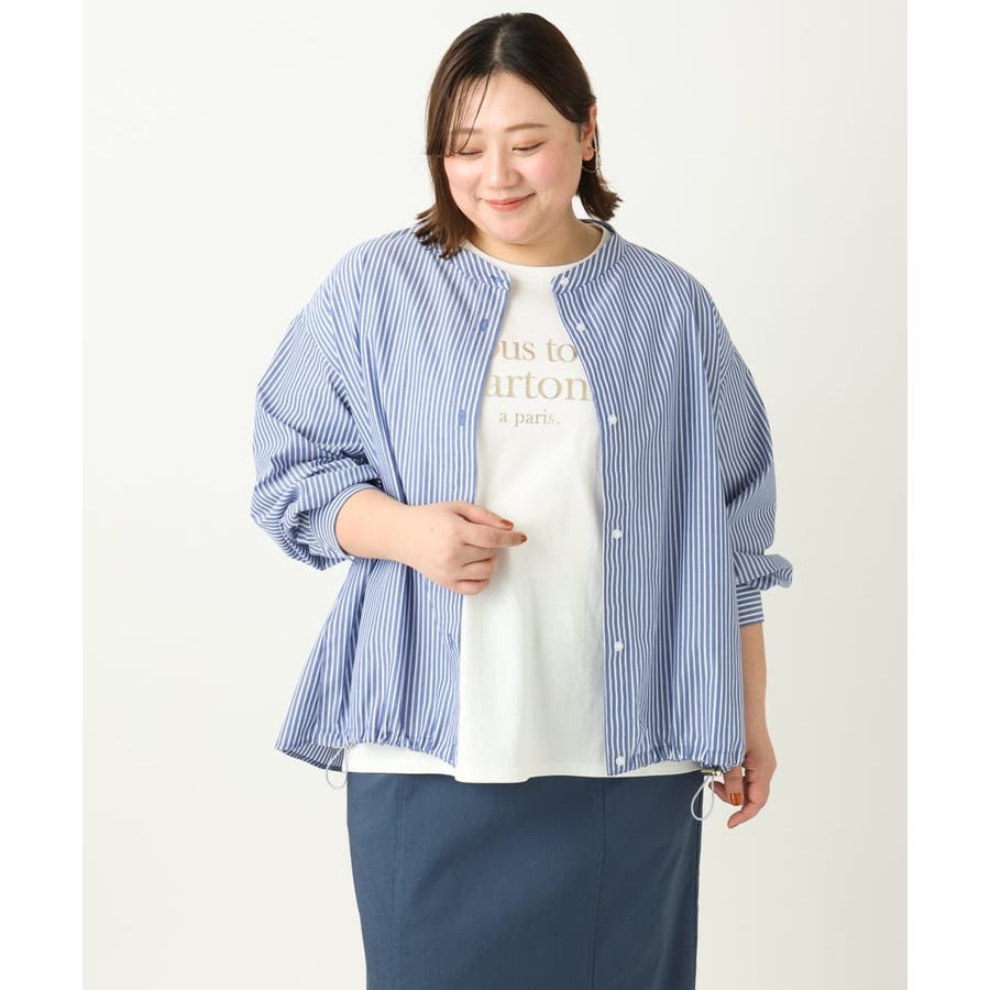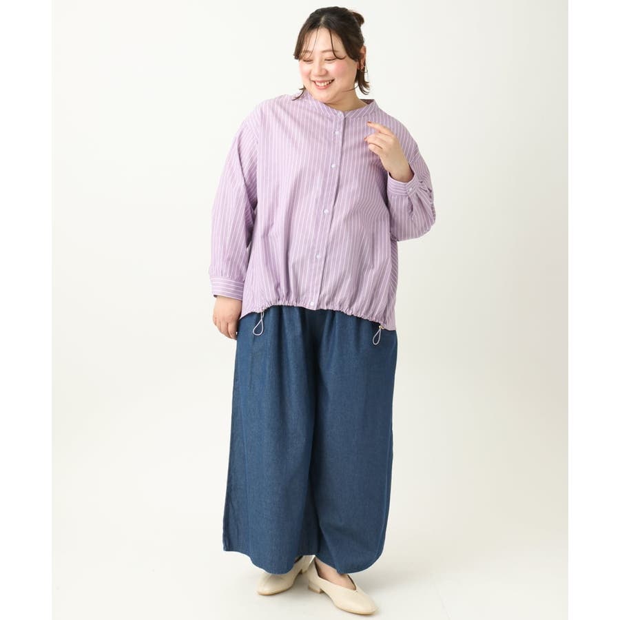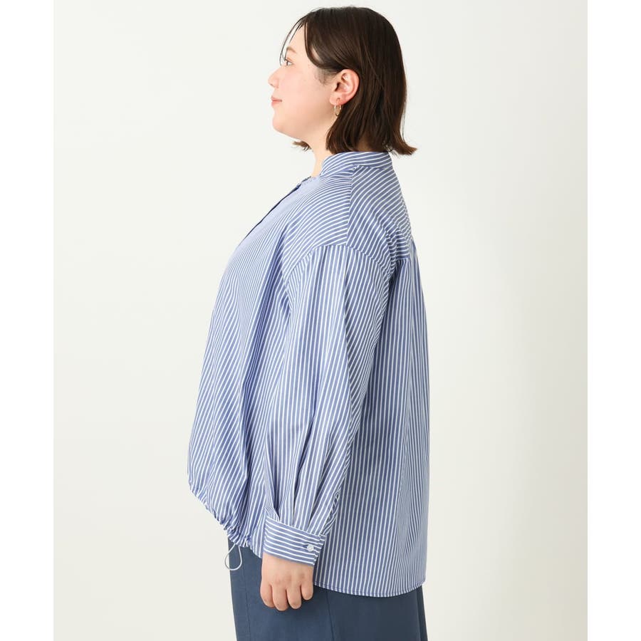 【大きいサイズ】バンドカラーラメストライプシャツ