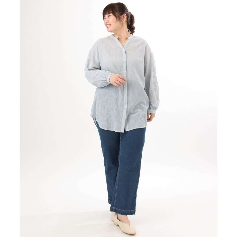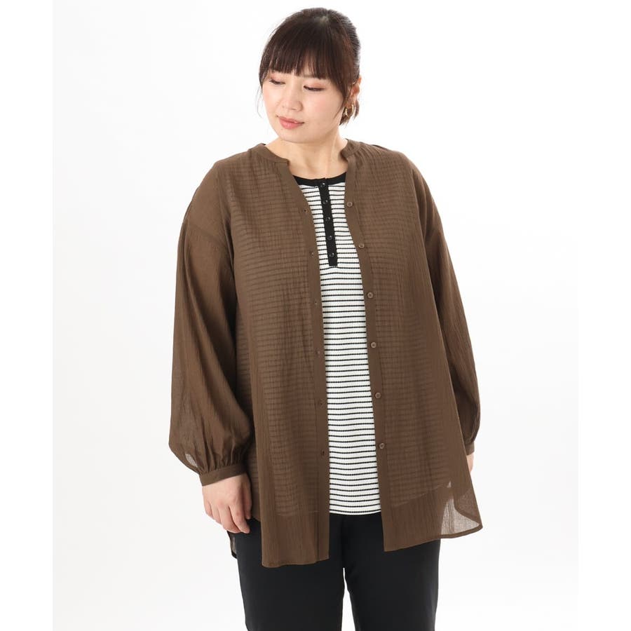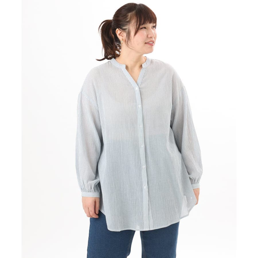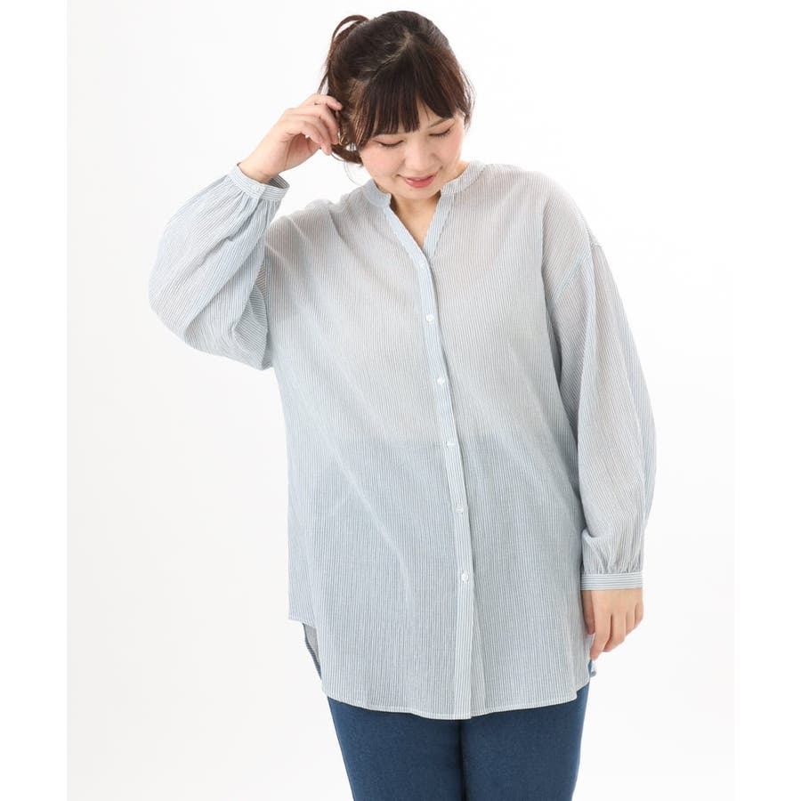 【大きいサイズ】バンドカラーコットンブラウス